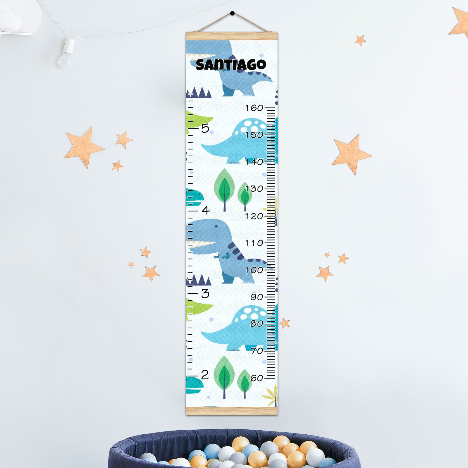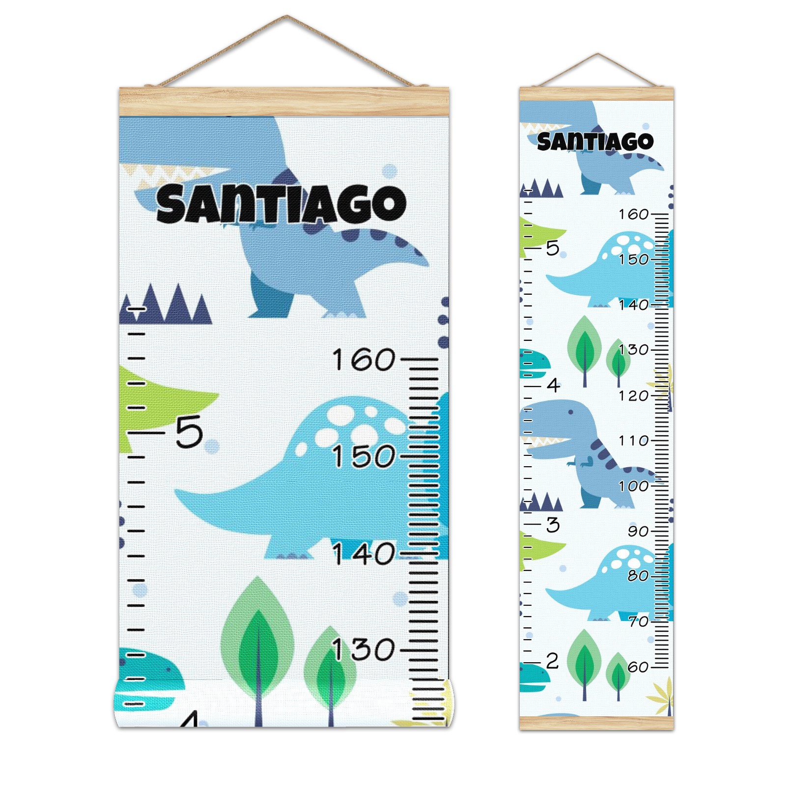 Personalized Kids Name Growth Chart Ruler for Wall Wood Frame Canvas Height Measure Chart 13.4x56 in Hanging Growth Chart Cute Dinosaur10.7 Boys Girls Room Decor