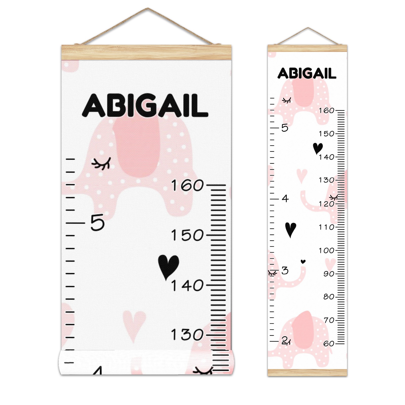 Personalized Kids Name Growth Chart Ruler for Wall Wood Frame Canvas Height Measure Chart 13.4x56 in Hanging Growth Chart Pink Elephant10.7 Boys Girls Room Decor