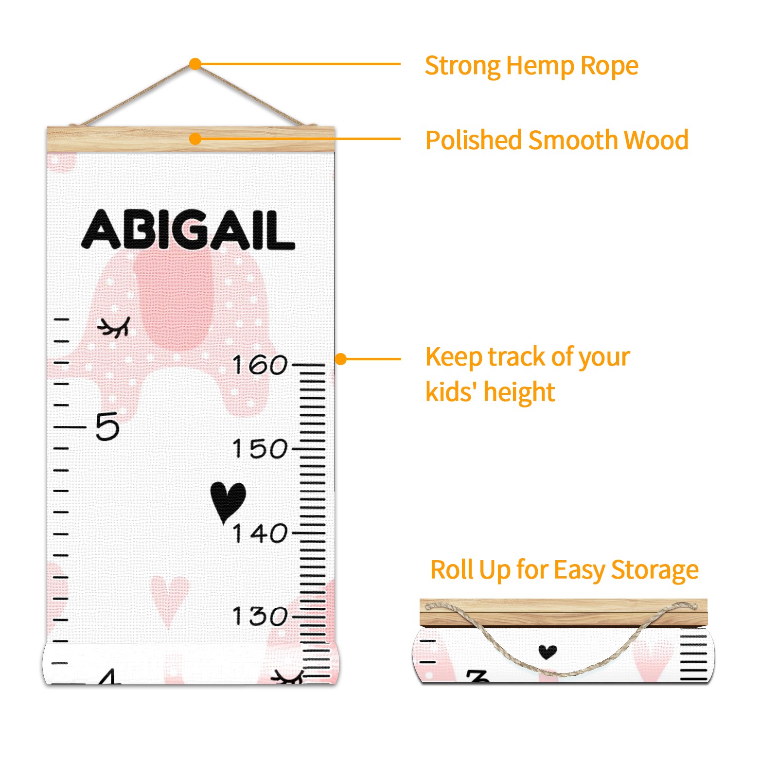 • <p><b>Features:</b></p> <p>Rope for Hanging</p> <p>Material: Linen + Wood</p> <p>Dimensions: 13.4x56 inches</p> <p>Package Included: 1 * Baby Growth Chart</p> <p><b>Baby height growth chart can be used anywhere</b></p> <p>Ideal for kids nursery decoration, kids bedroom, interior walls or windows, playroom, living room, homedecoration.Add name and make the growth chart special!</p> <p><b>Easy to fold and carry</b></p> <p>With rope at the top of the growth chart, it is easy to install and remove.You can fold it and unfold any time any where.</p> <p><b>Perfect Gift Idea for Kids</b></p> <p>Environmental and non-toxic for kids use, it must be a perfect gift for baby, kids, girls, and boys.This is a best choice for your friend who have kids or baby as a popular gift.</p> <p><b>Easy to read</b></p> <p>Measurement accrate with 2 scales, Centimeters and feet. The letters are big enough, very easy to read.</p> <p><b>60cm(23.6inch) Over Ground Design</b></p> <p>Not only can protect from dust and other damage, but also will not interfere in floor cleaning.</p>
