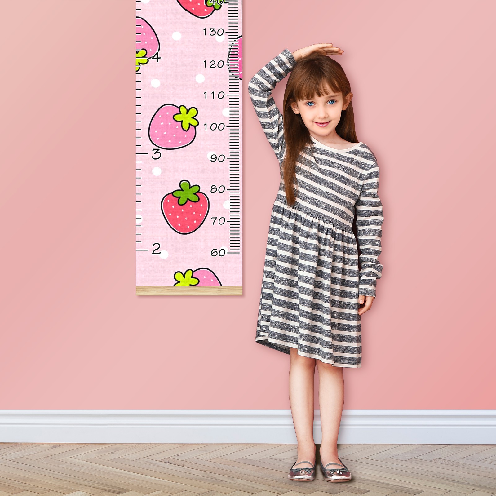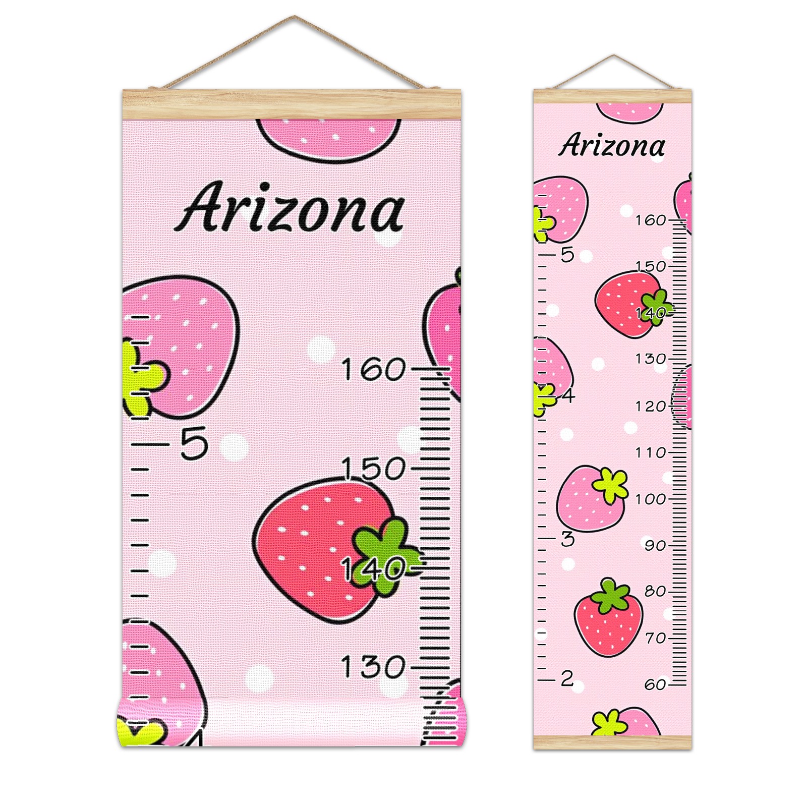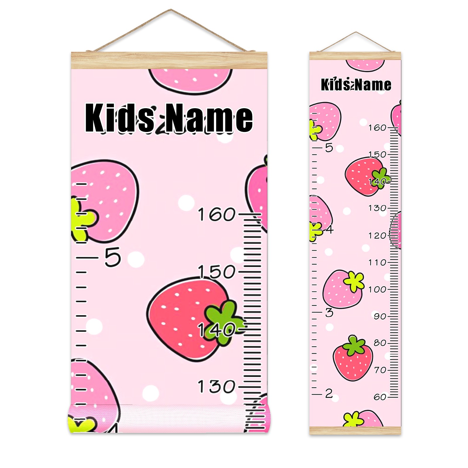 Personalized Kids Name Growth Chart Ruler for Wall Wood Frame Canvas Height Measure Chart 13.4x56 in Hanging Growth Chart Cute Strawberry Pink10.7 Boys Girls Room Decor