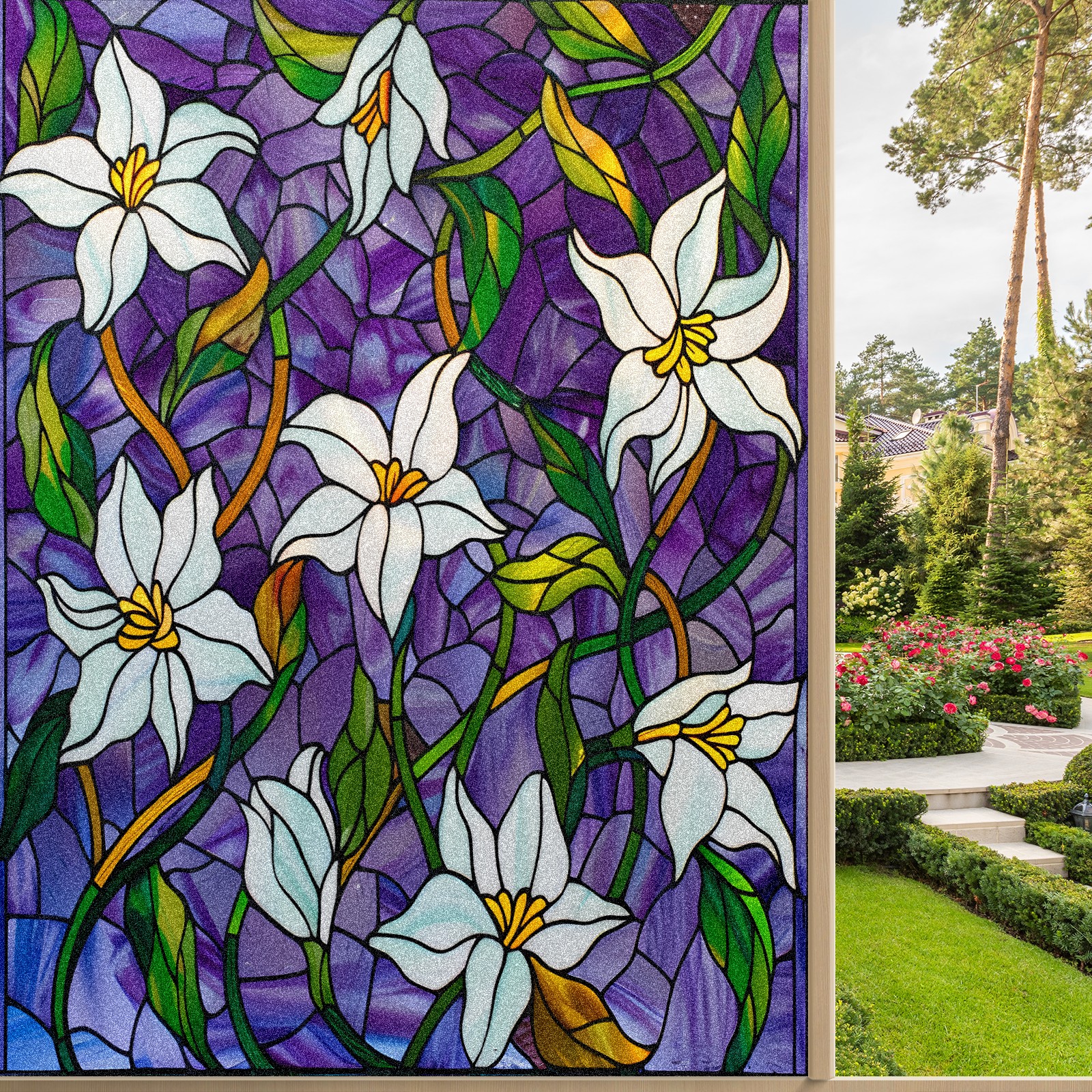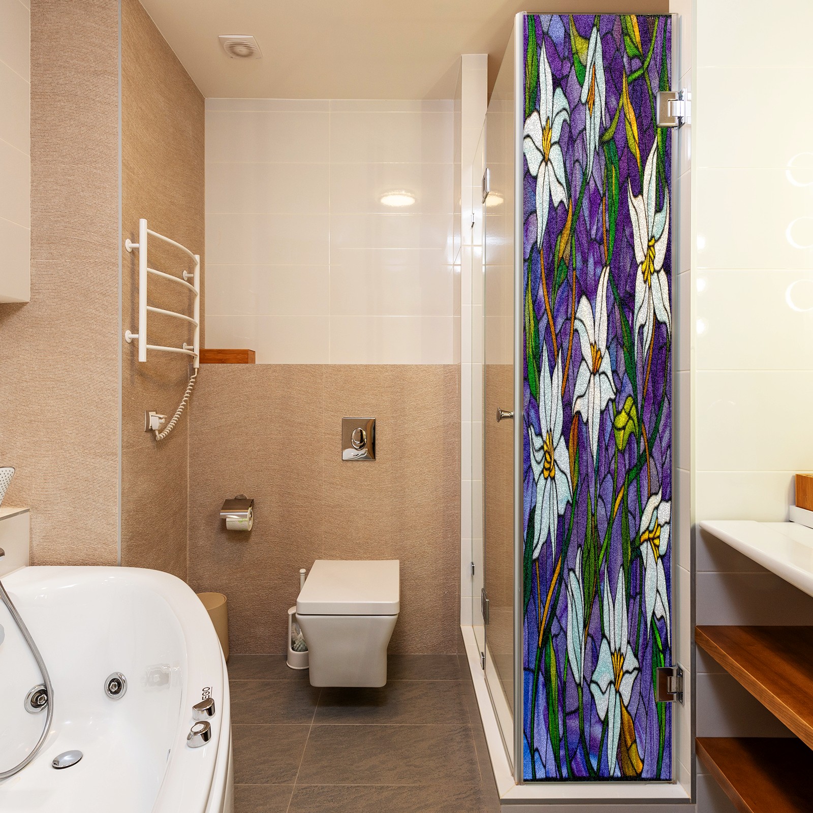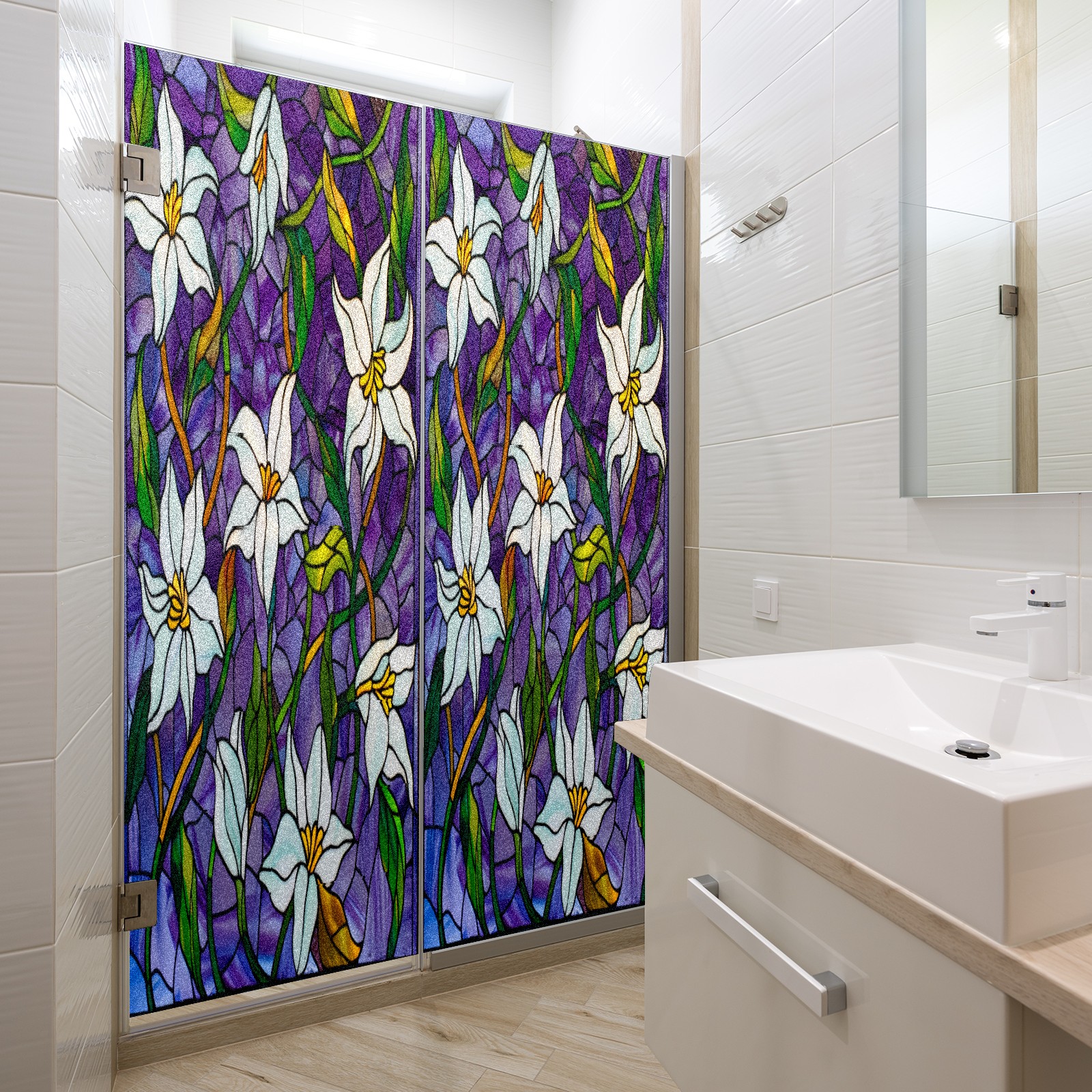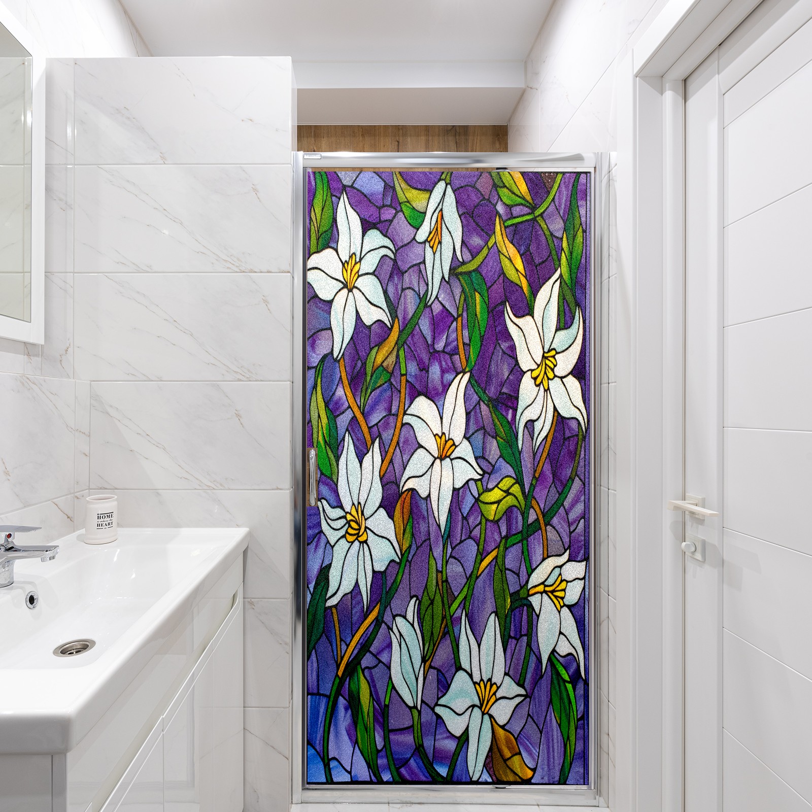 Frosted Glass Window Film Privacy Film Stained Glass Decals for Bathroom Shower Door Lily (1) Design Non Adhesive