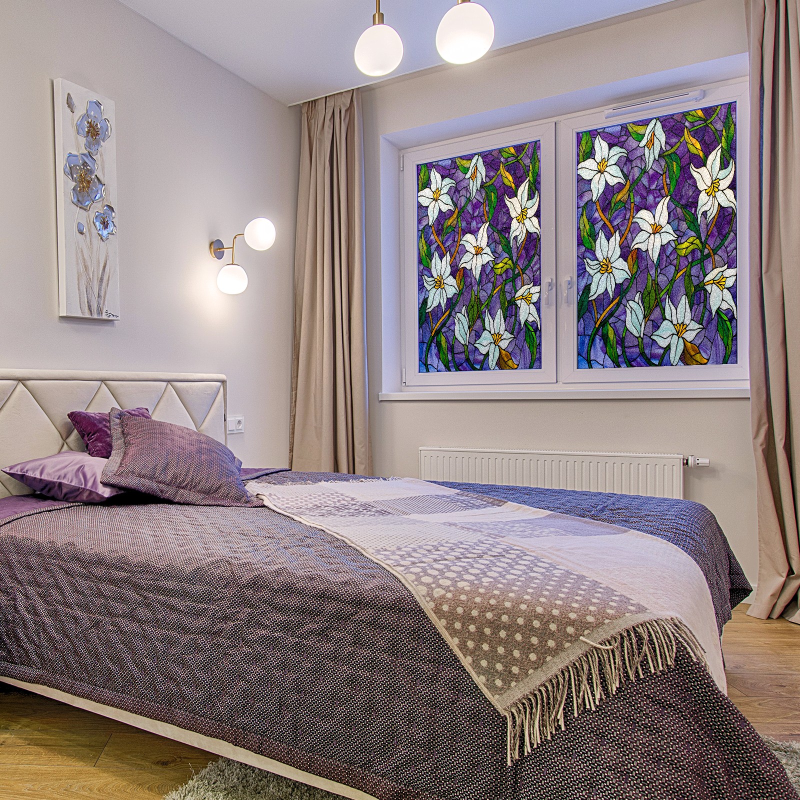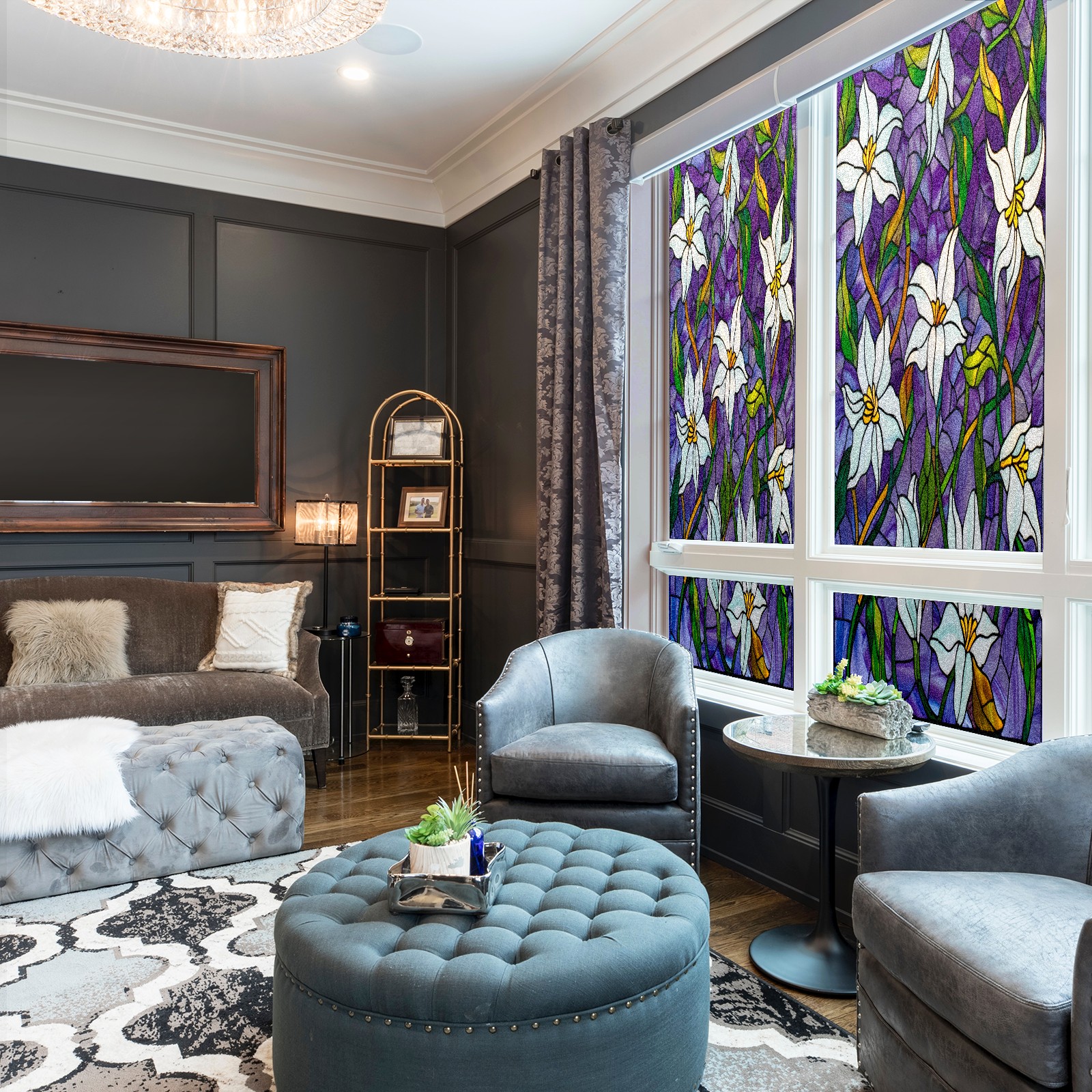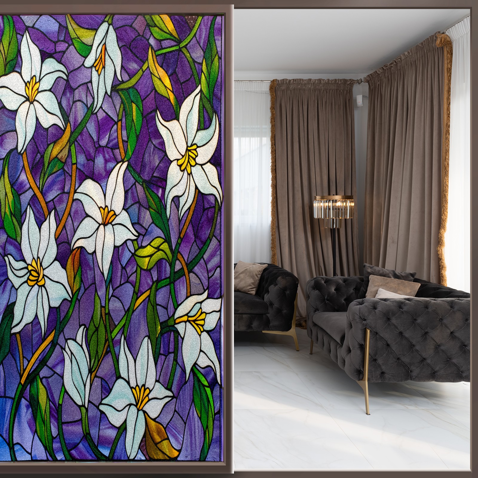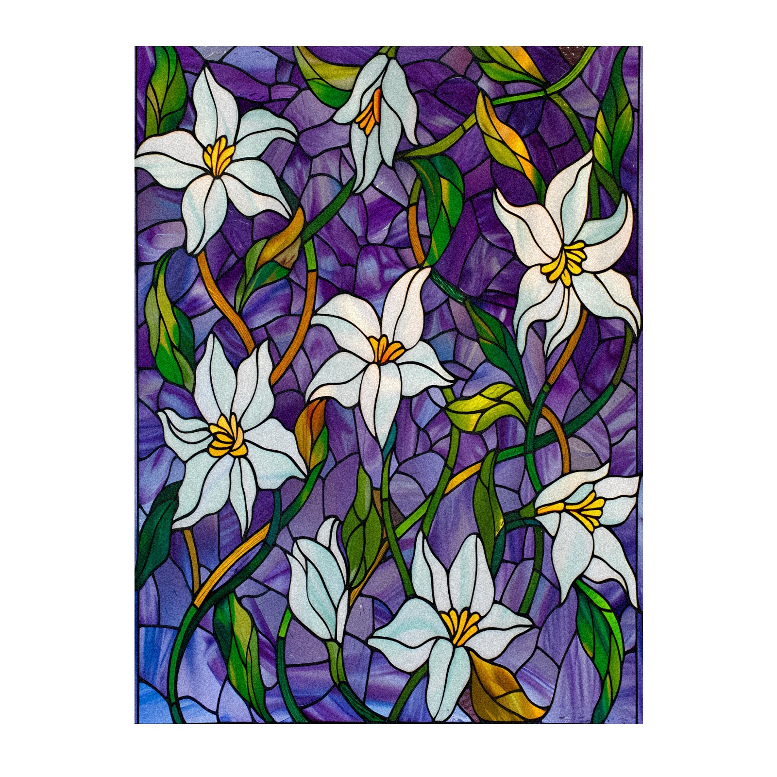 Frosted Glass Window Film Privacy Film Stained Glass Decals for Bathroom Shower Door Lily (1) Design Non Adhesive