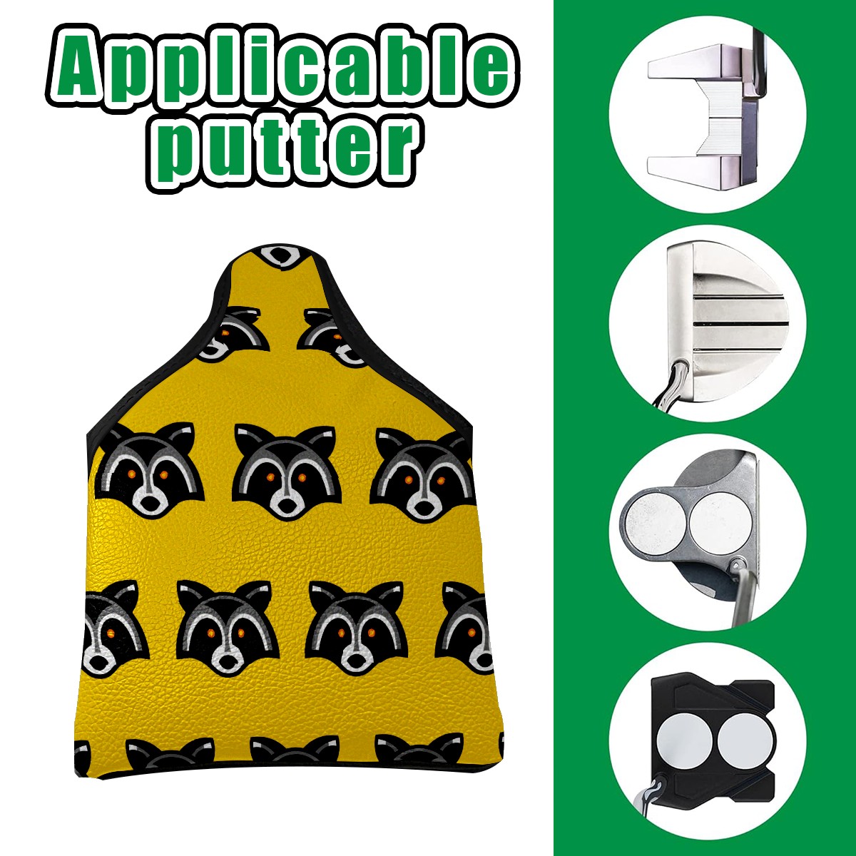 Mallet Putter Cover, Waterproof PU Leather, Portable Design, Perfect Golf Gift for Men & Women Cartoon Raccoon Pattern