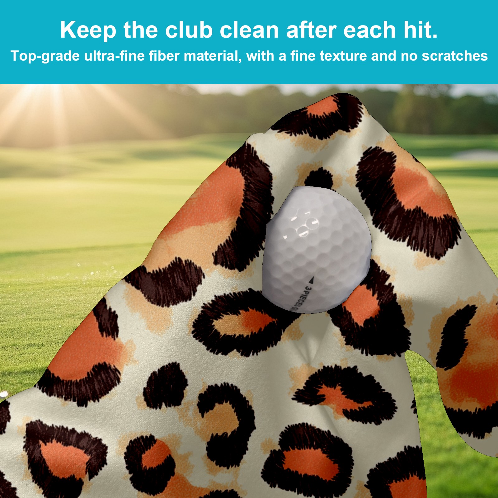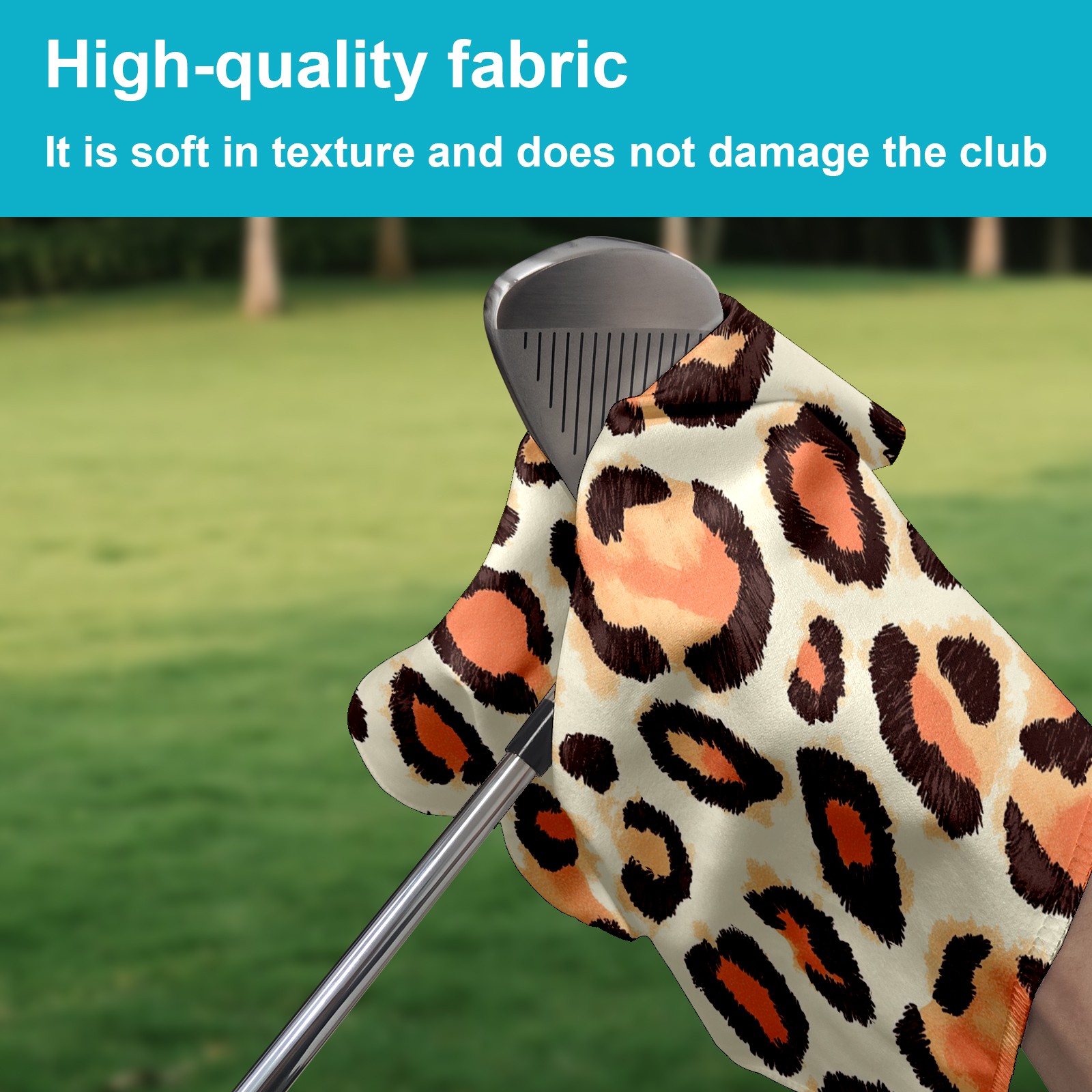 Golf Towel with Buckle Clip, Club Cleaning Cloth is Highly Absorbent and Dries Quickly for Use on Court Sports Towels Peach Leopard Print