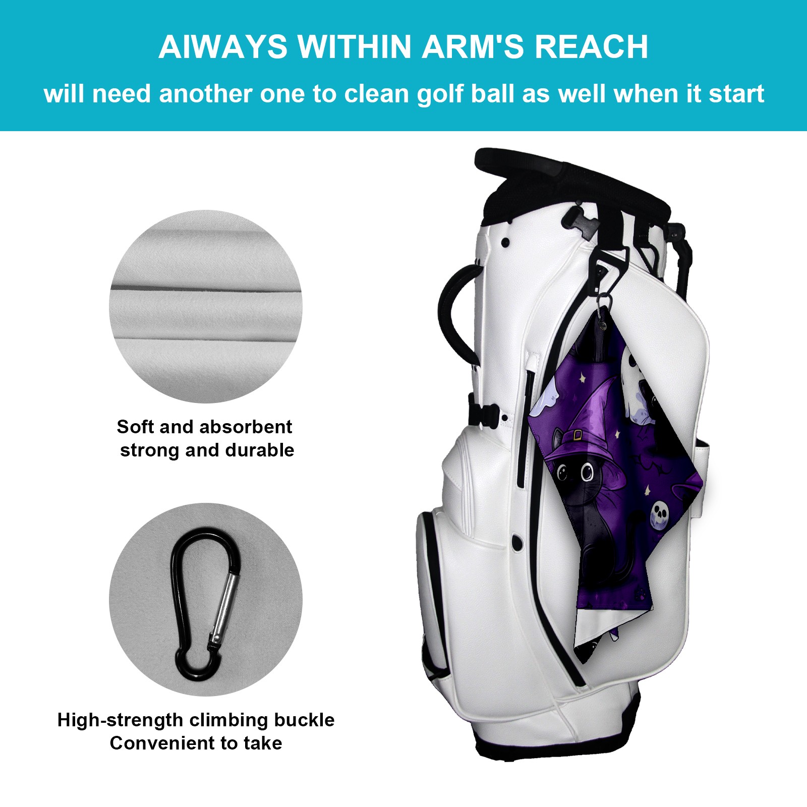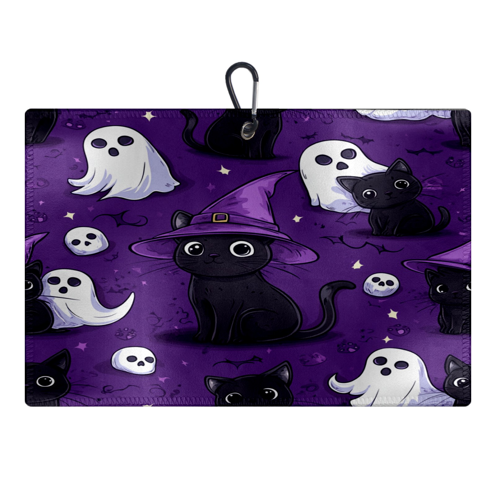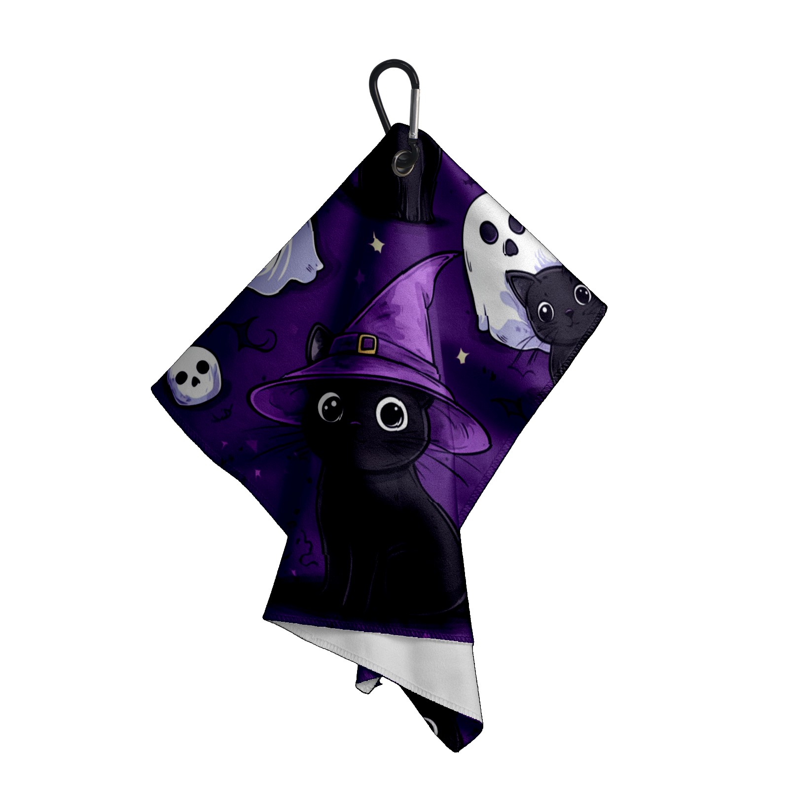 Golf Towel with Buckle Clip, Club Cleaning Cloth is Highly Absorbent and Dries Quickly for Use on Court Sports Towels Cute Black Cat