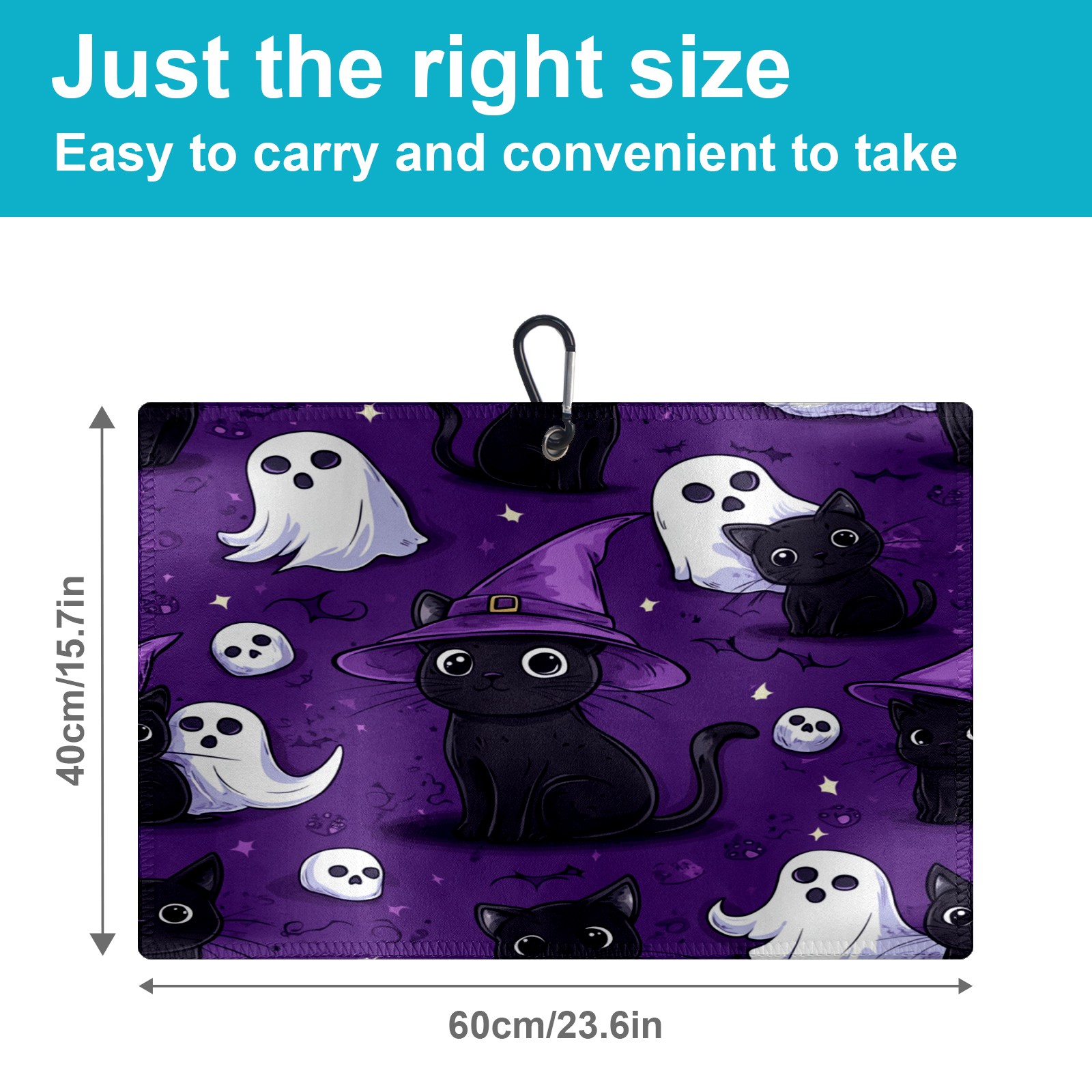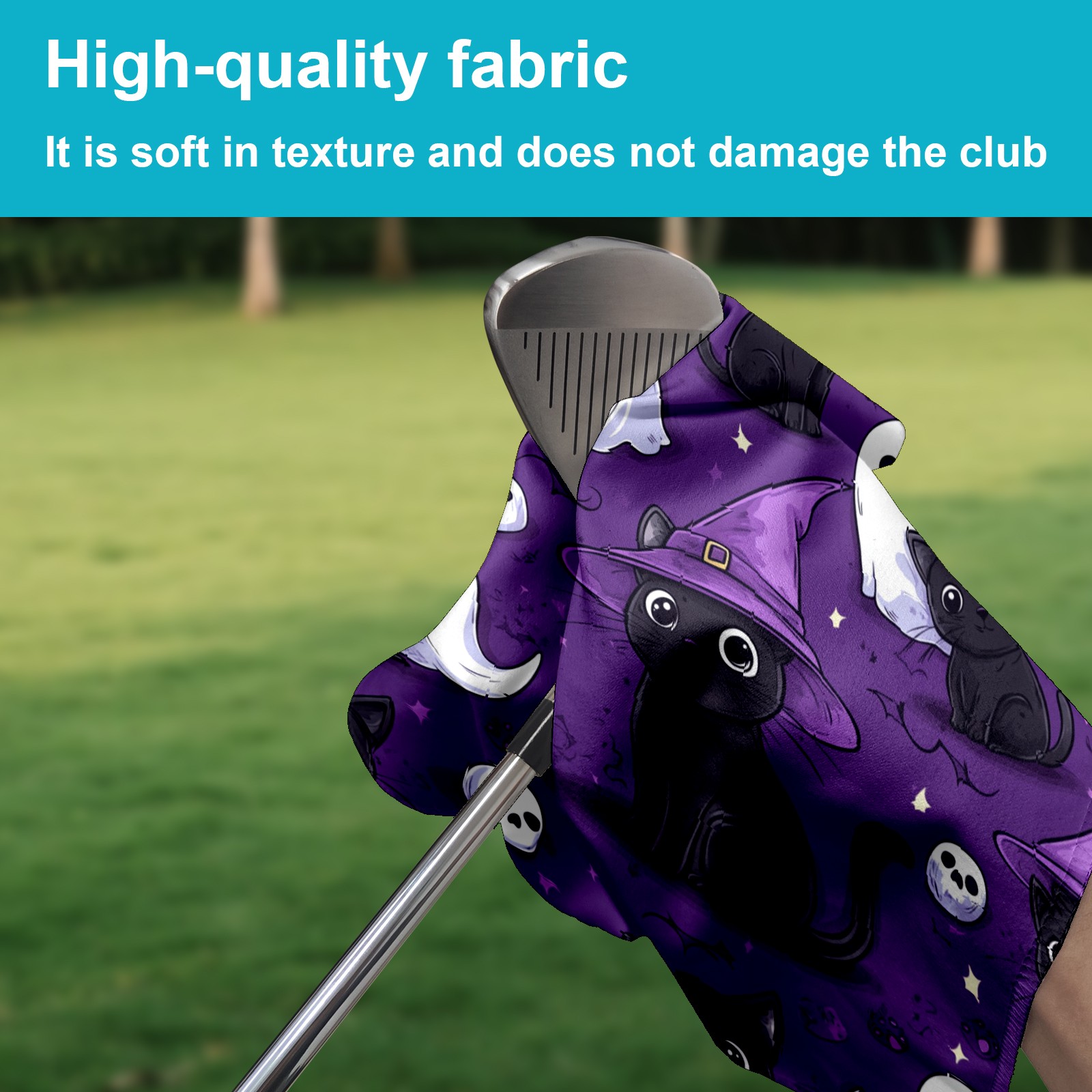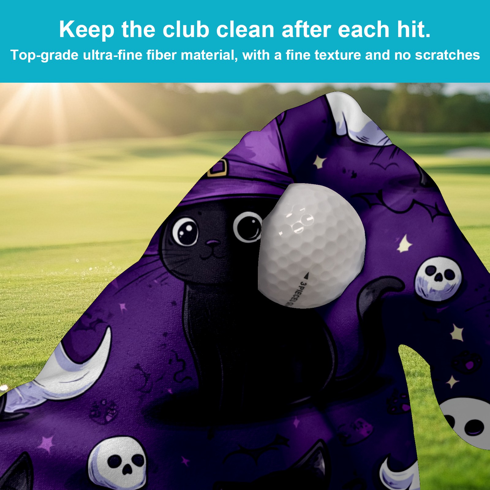 Golf Towel with Buckle Clip, Club Cleaning Cloth is Highly Absorbent and Dries Quickly for Use on Court Sports Towels Cute Black Cat
