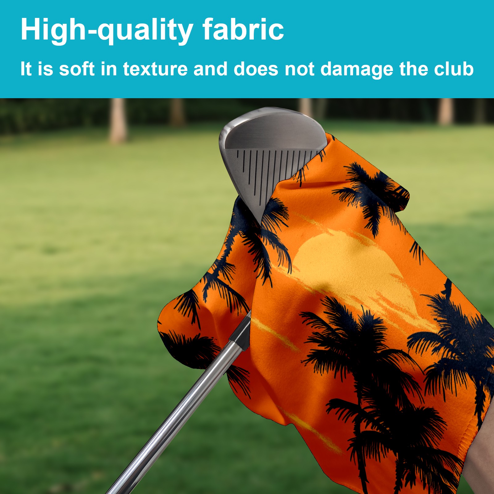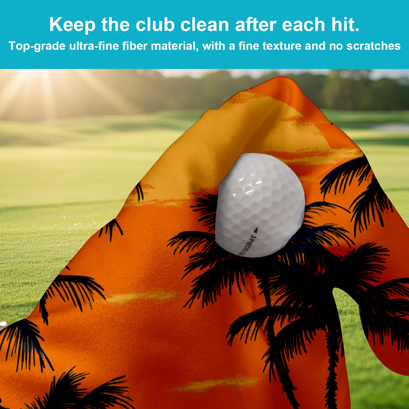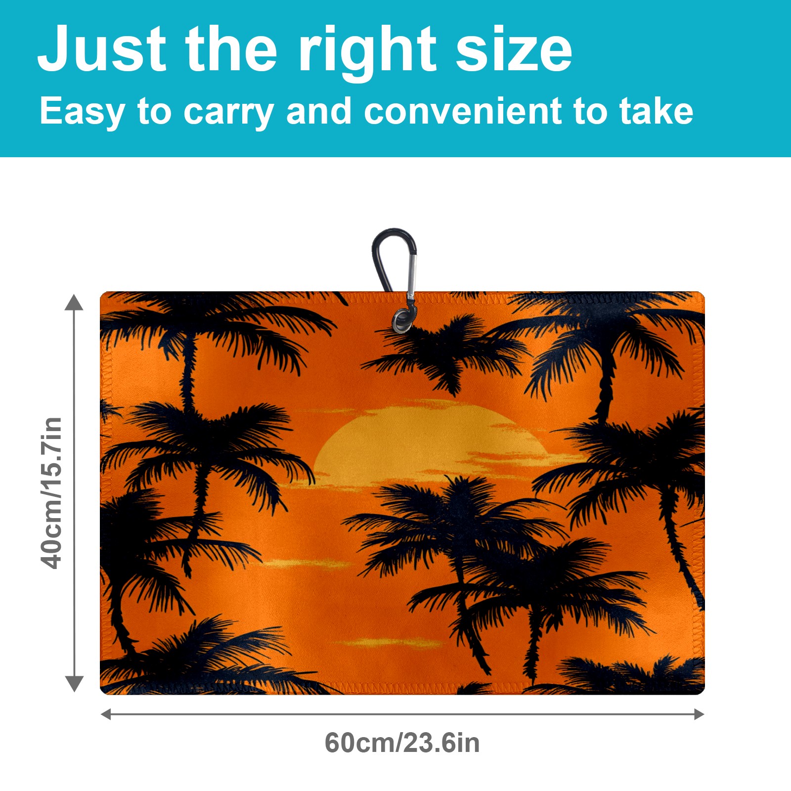 Golf Towel with Buckle Clip, Club Cleaning Cloth is Highly Absorbent and Dries Quickly for Use on Court Sports Towels Orange Sunset Pattern
