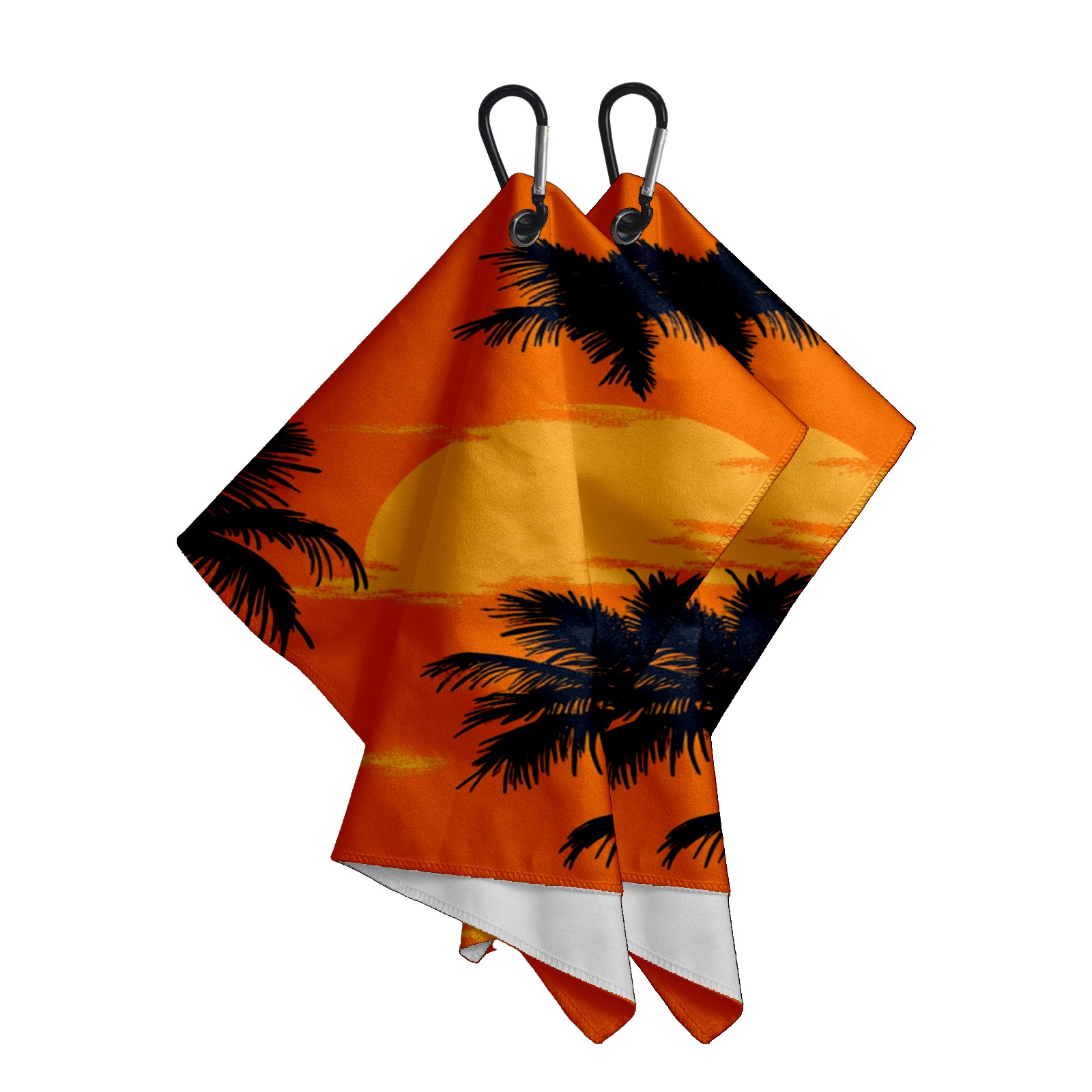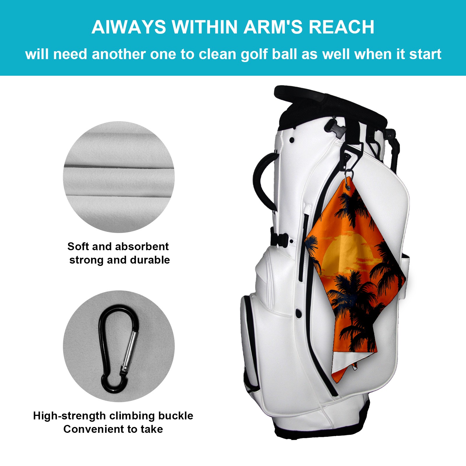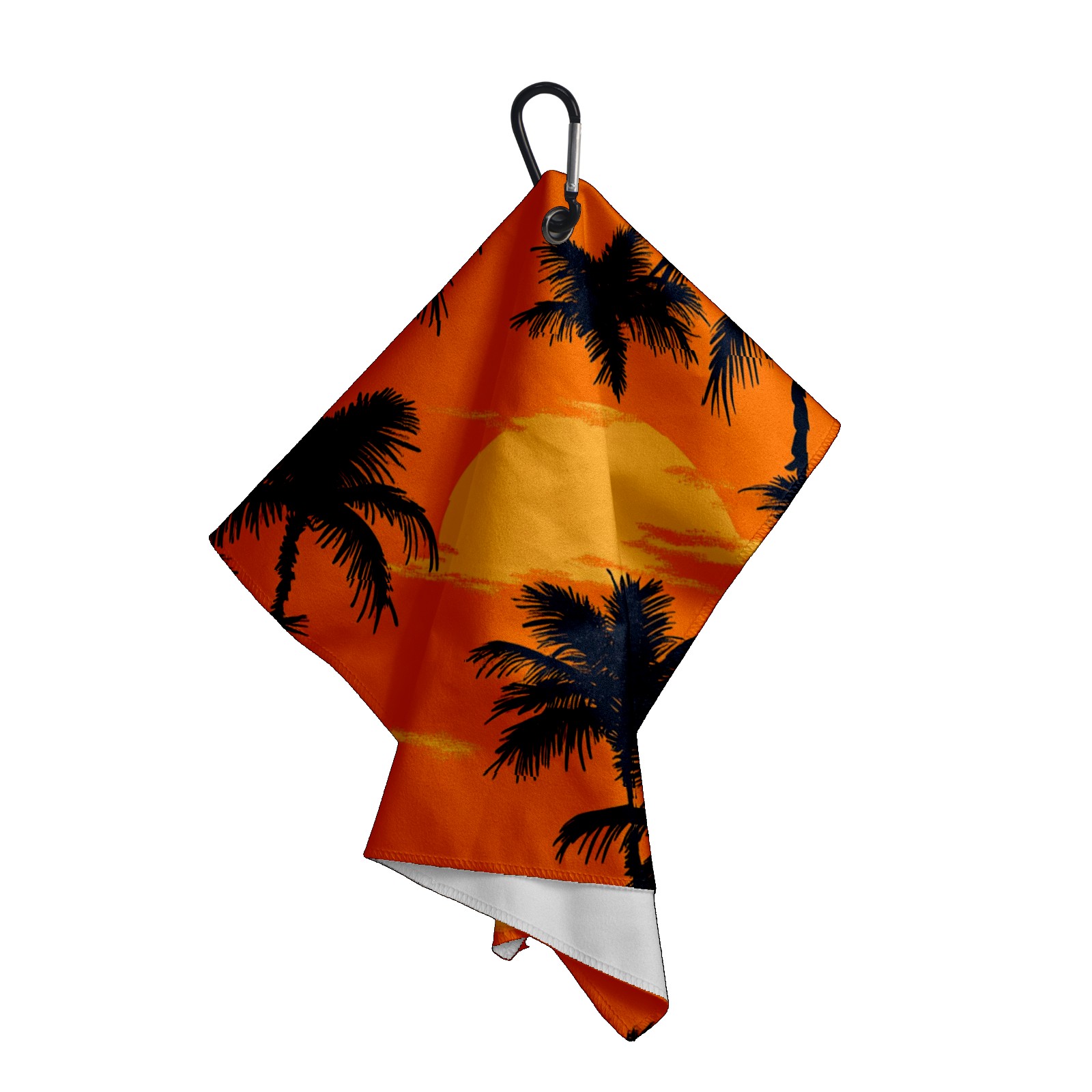 Golf Towel with Buckle Clip, Club Cleaning Cloth is Highly Absorbent and Dries Quickly for Use on Court Sports Towels Orange Sunset Pattern