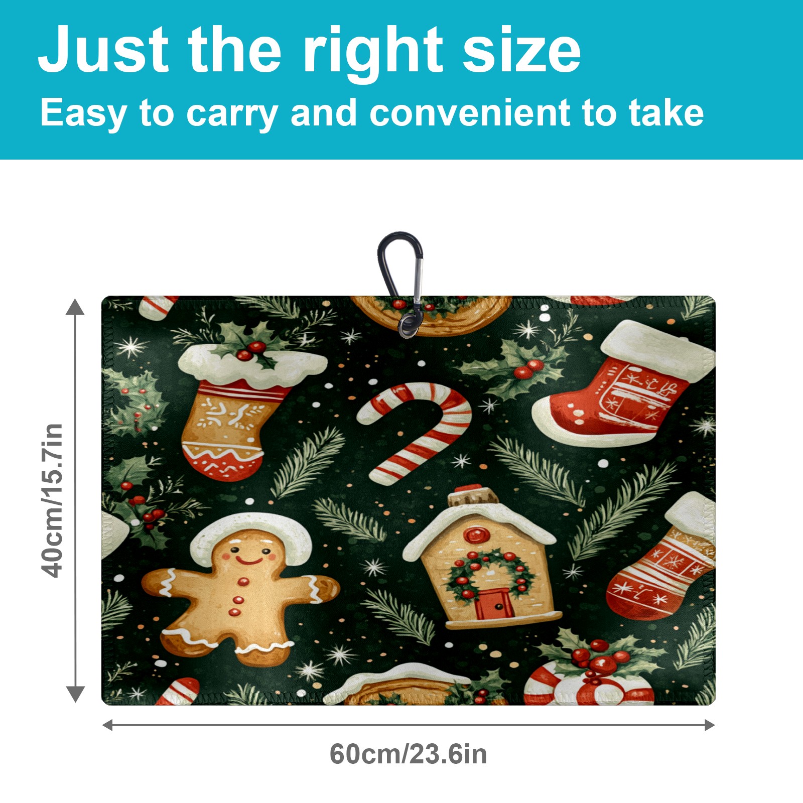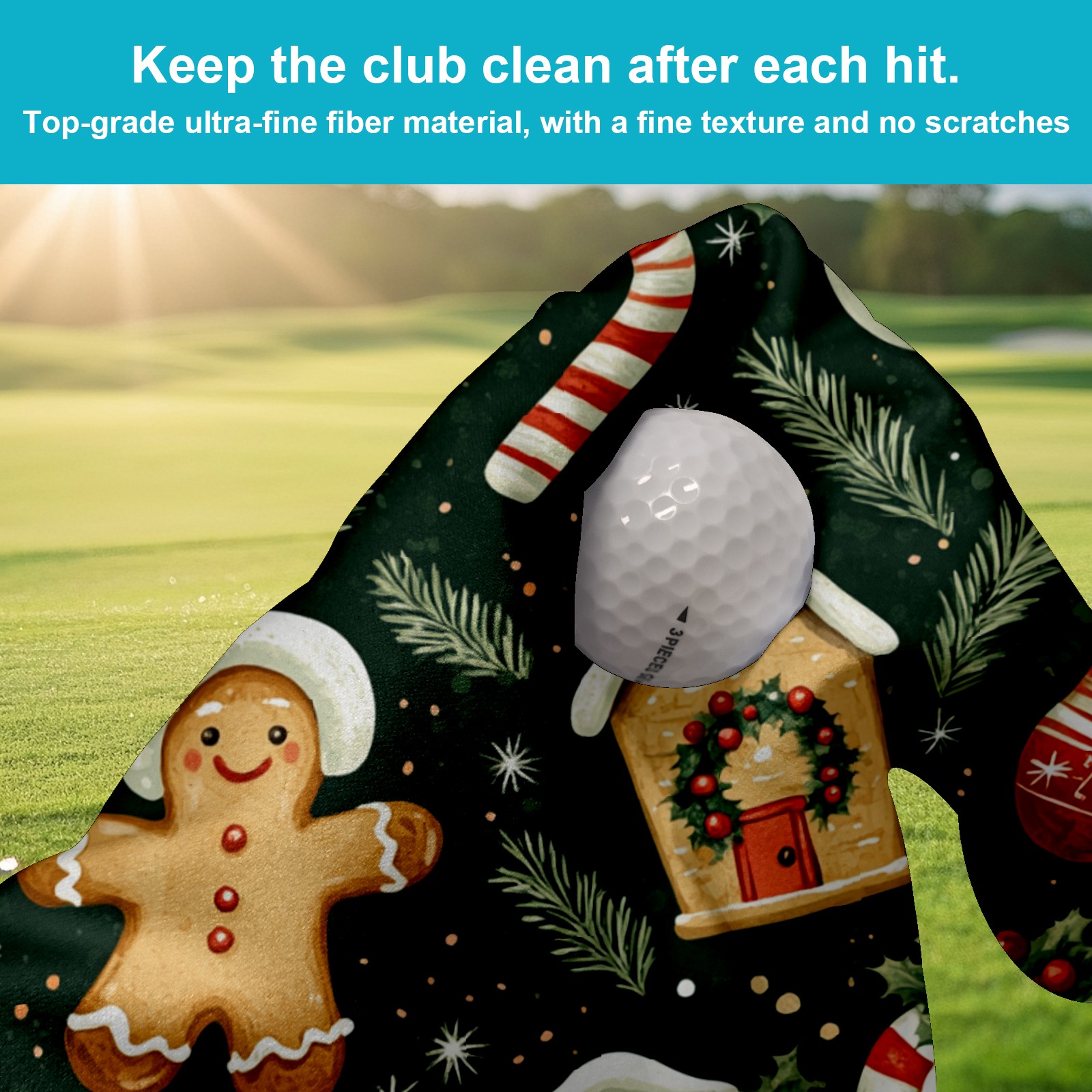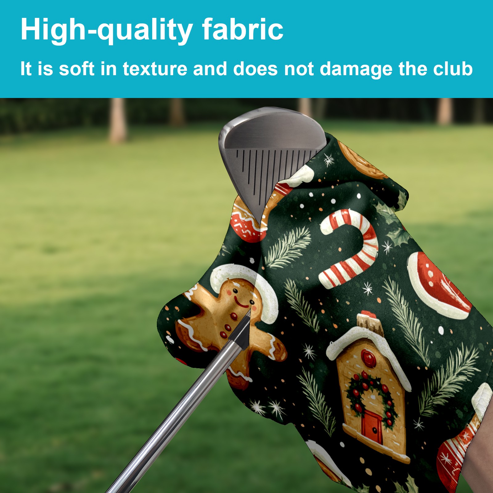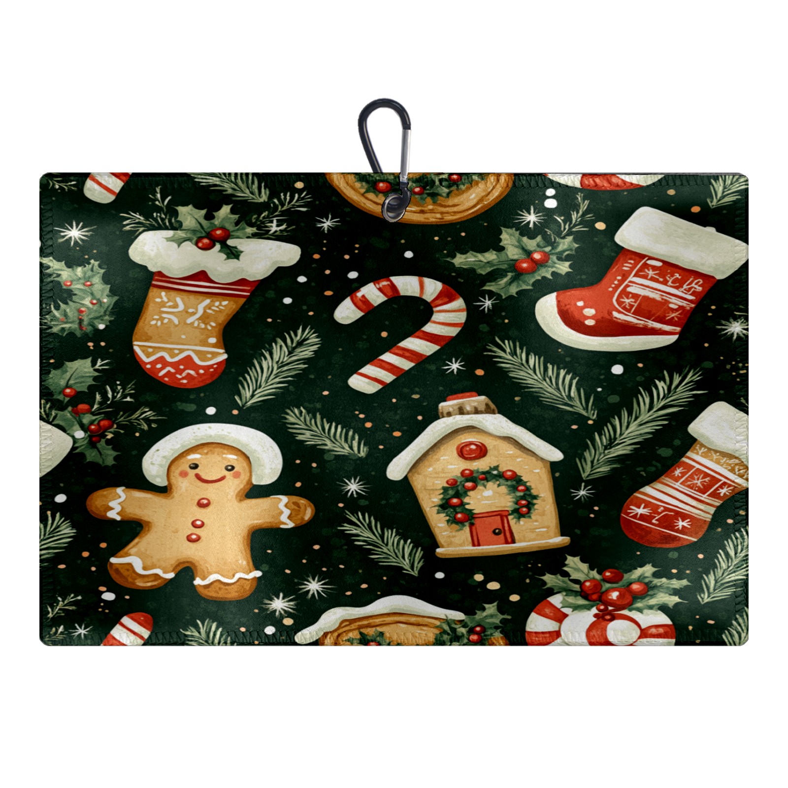 Golf Towel with Buckle Clip, Club Cleaning Cloth is Highly Absorbent and Dries Quickly for Use on Court Sports Towels Gingerbread Christmas Stocking Cookies