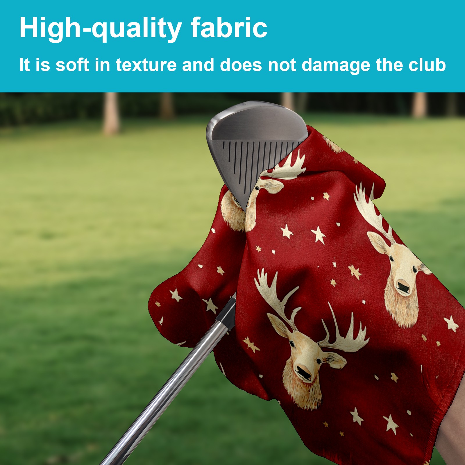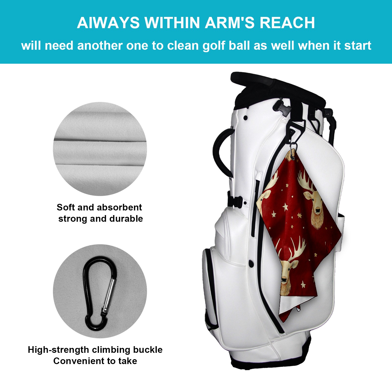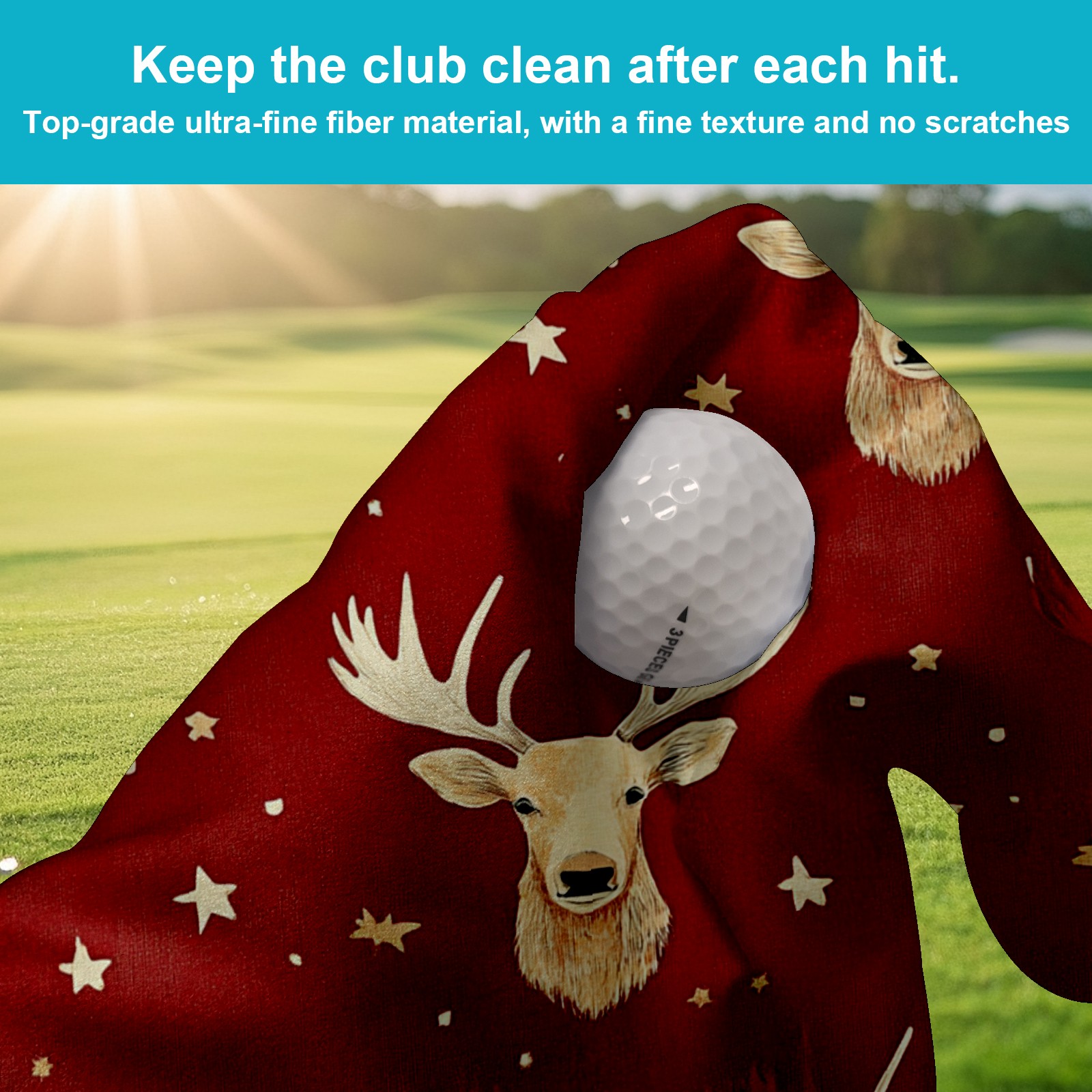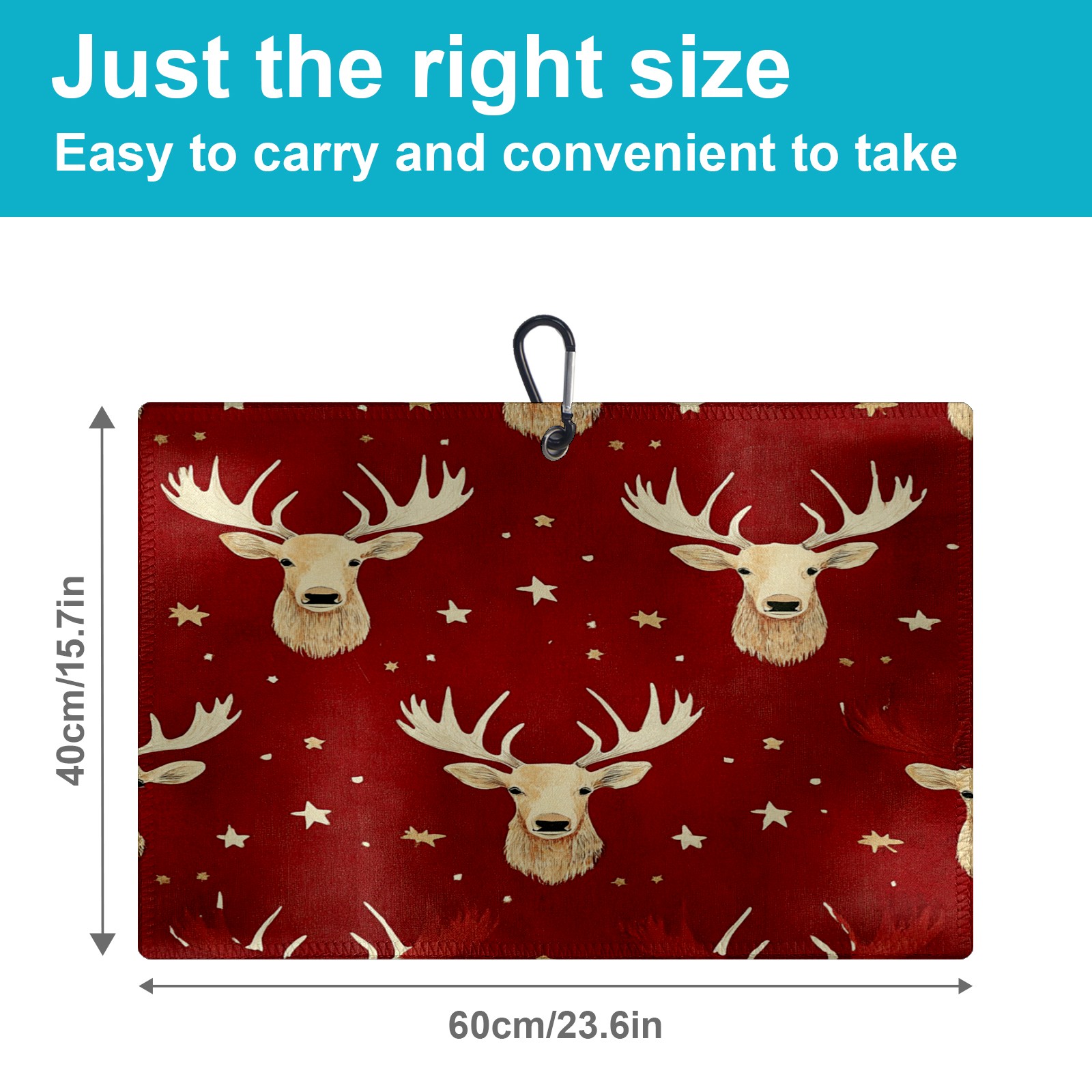 Golf Towel with Buckle Clip, Club Cleaning Cloth is Highly Absorbent and Dries Quickly for Use on Court Sports Towels Christmas Elk