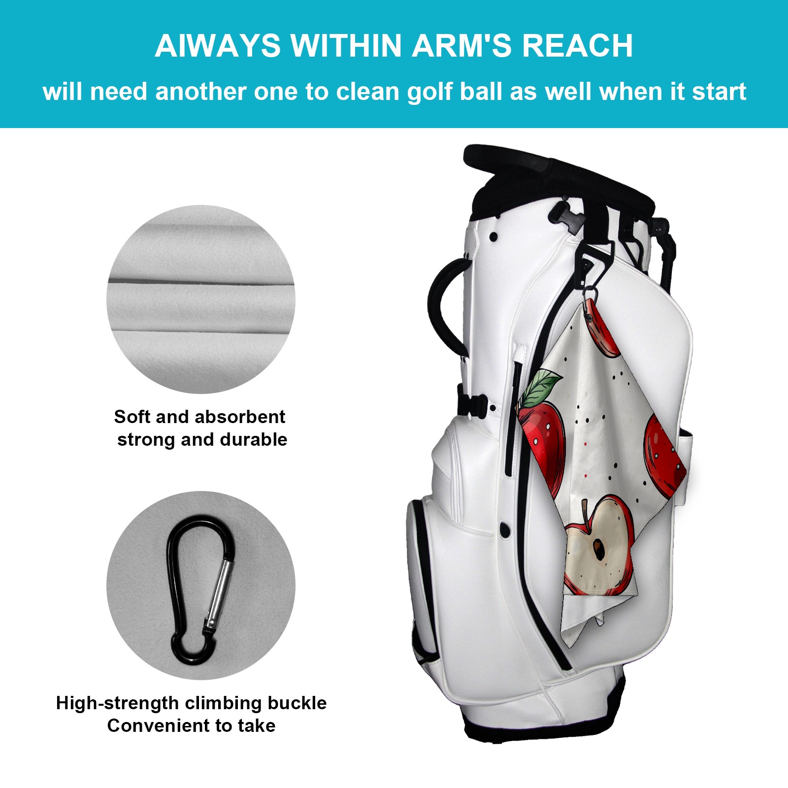 Golf Towel with Buckle Clip, Club Cleaning Cloth is Highly Absorbent and Dries Quickly for Use on Court Sports Towels Red Apple