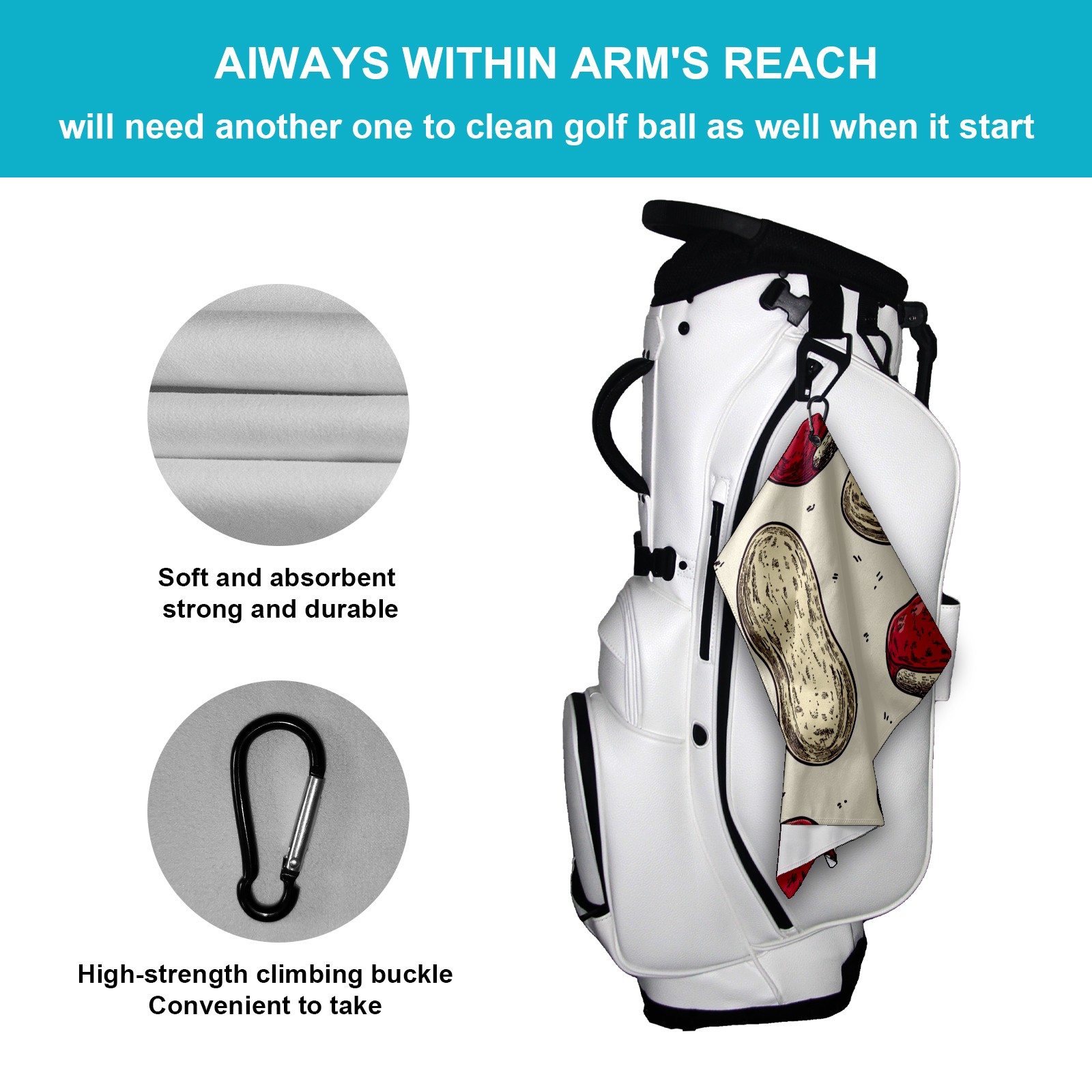 Golf Towel with Buckle Clip, Club Cleaning Cloth is Highly Absorbent and Dries Quickly for Use on Court Sports Towels Peanut Kernel Pattern