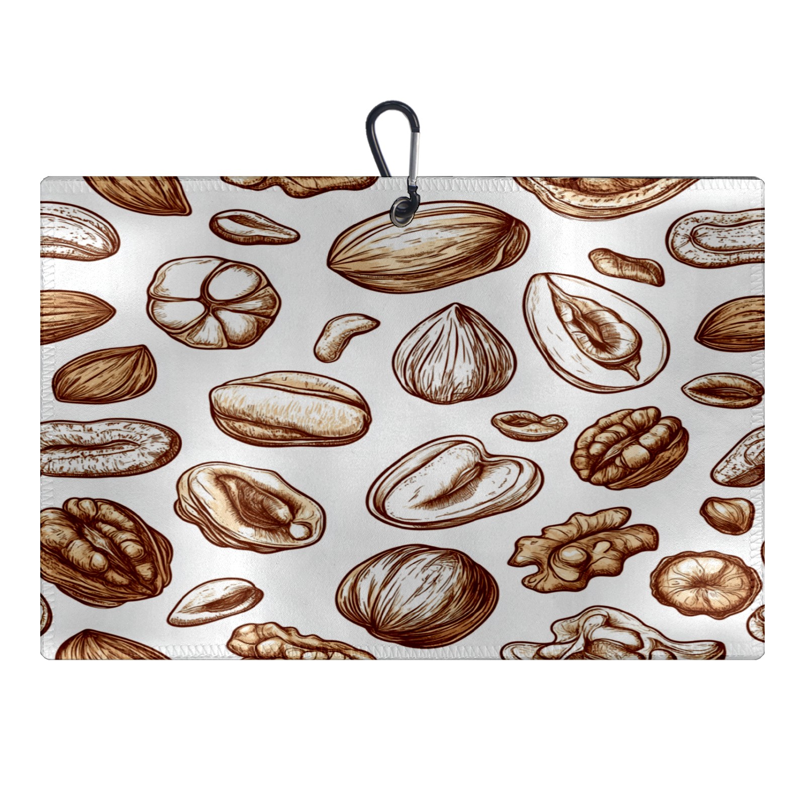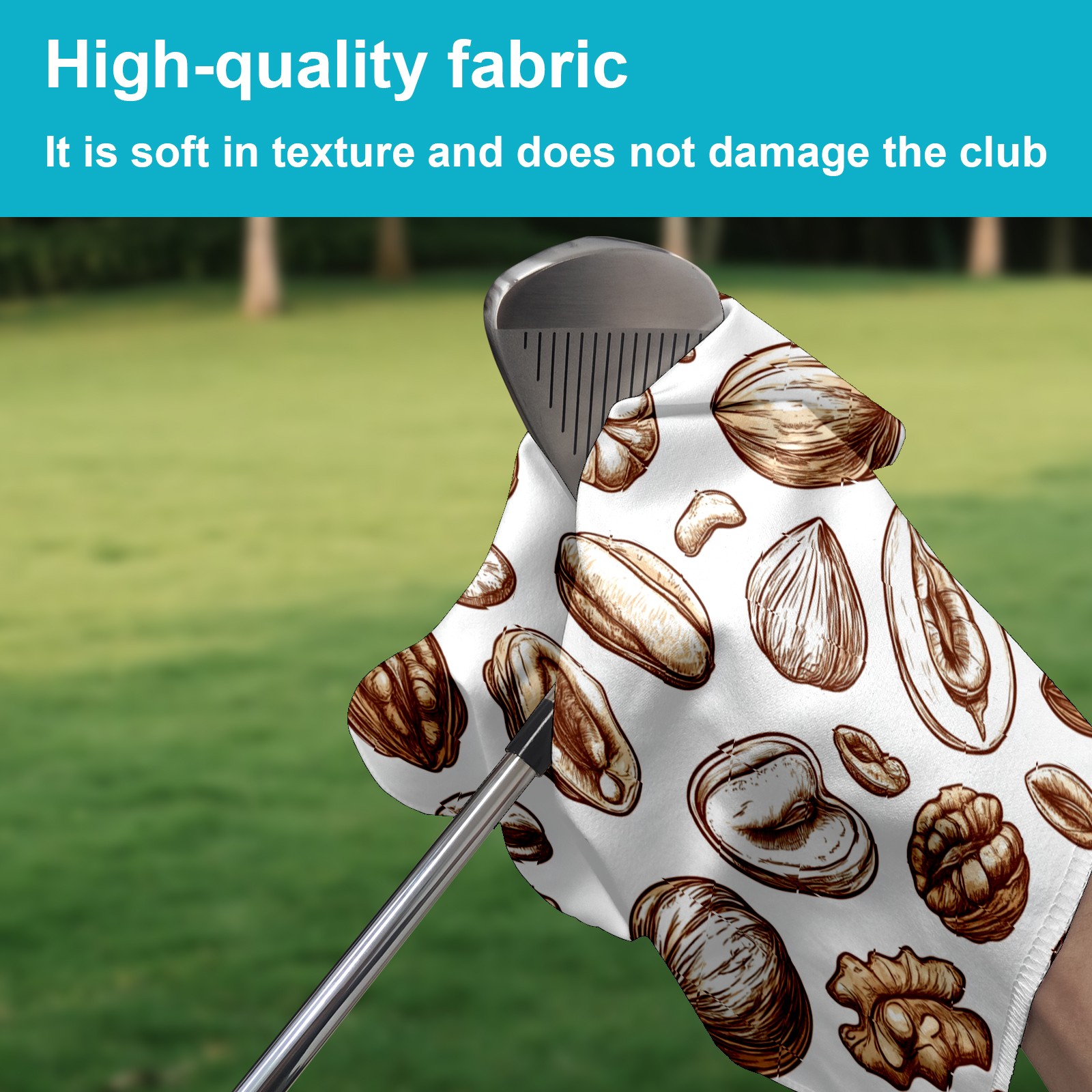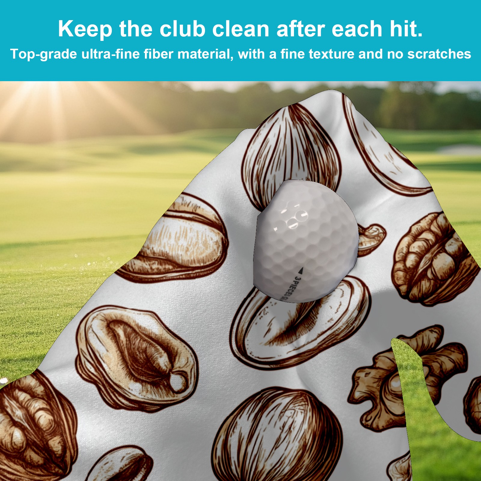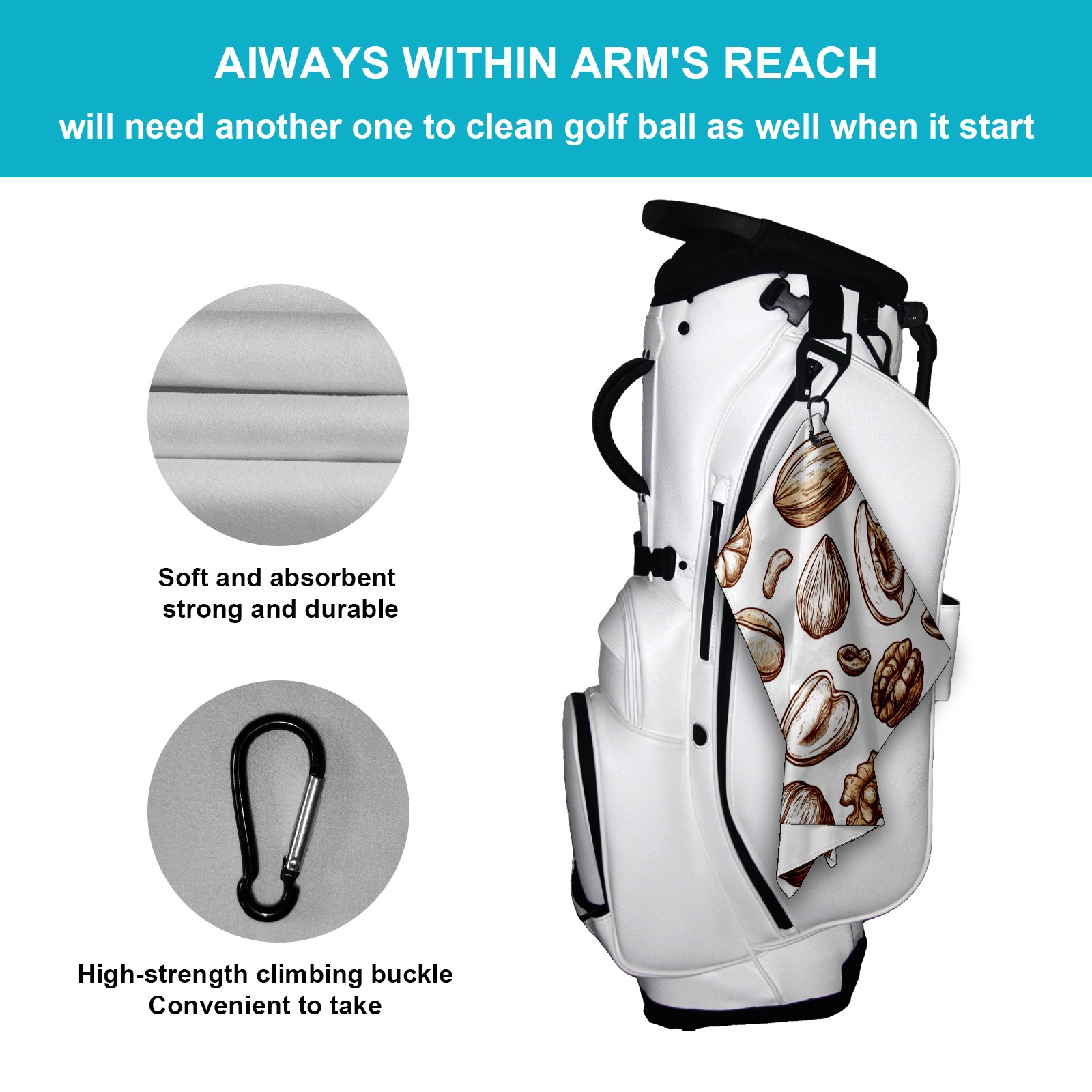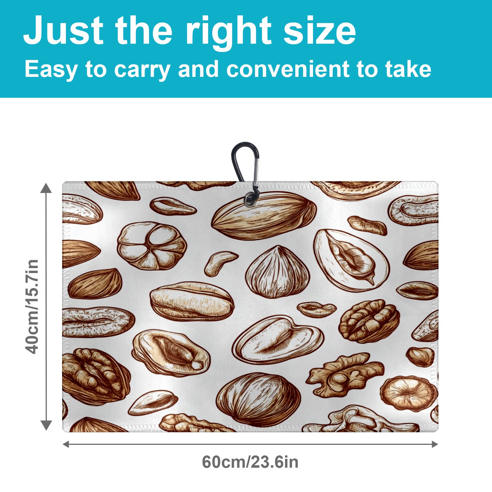 Golf Towel with Buckle Clip, Club Cleaning Cloth is Highly Absorbent and Dries Quickly for Use on Court Sports Towels Nut Pattern