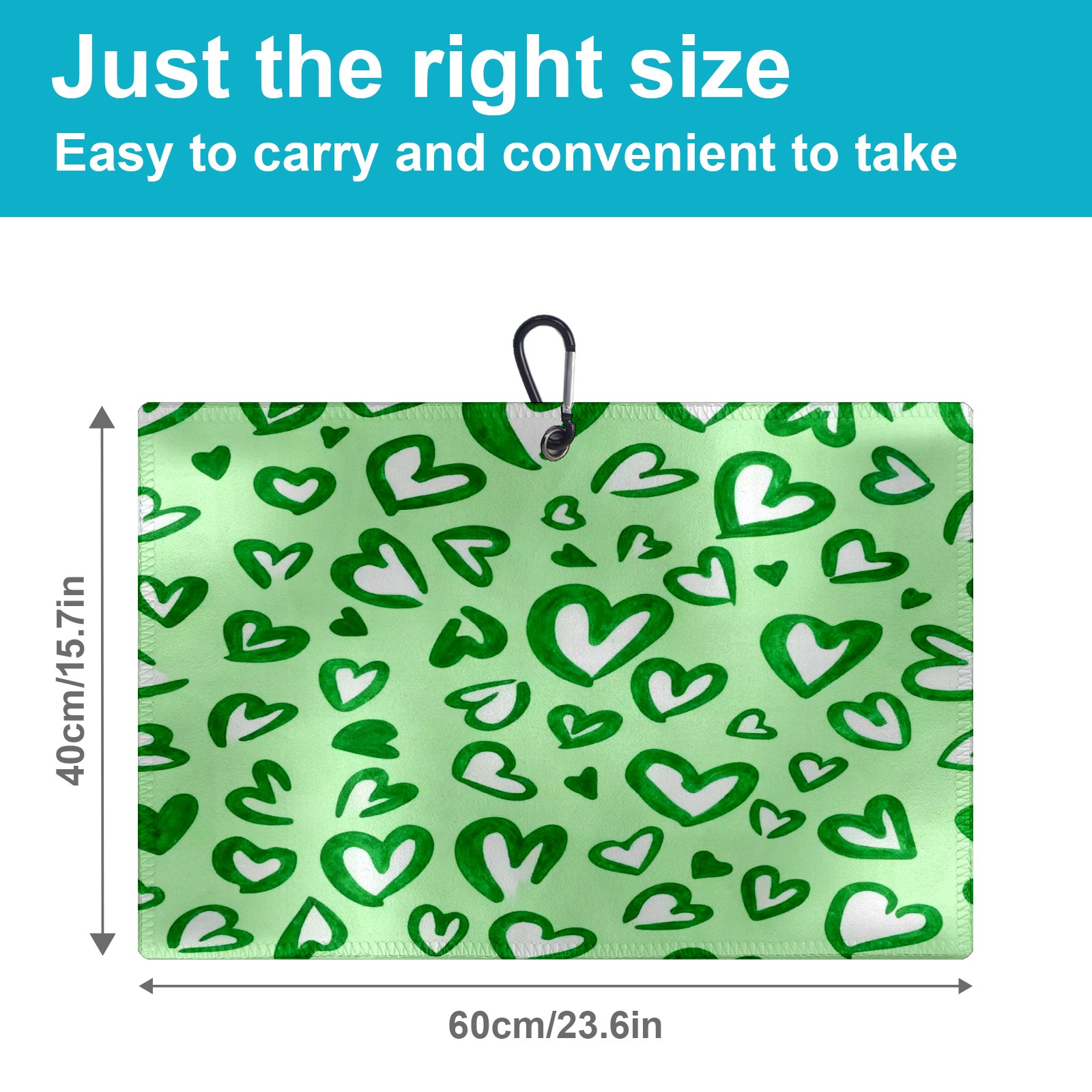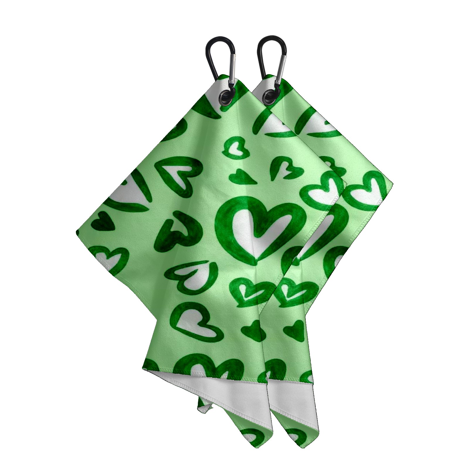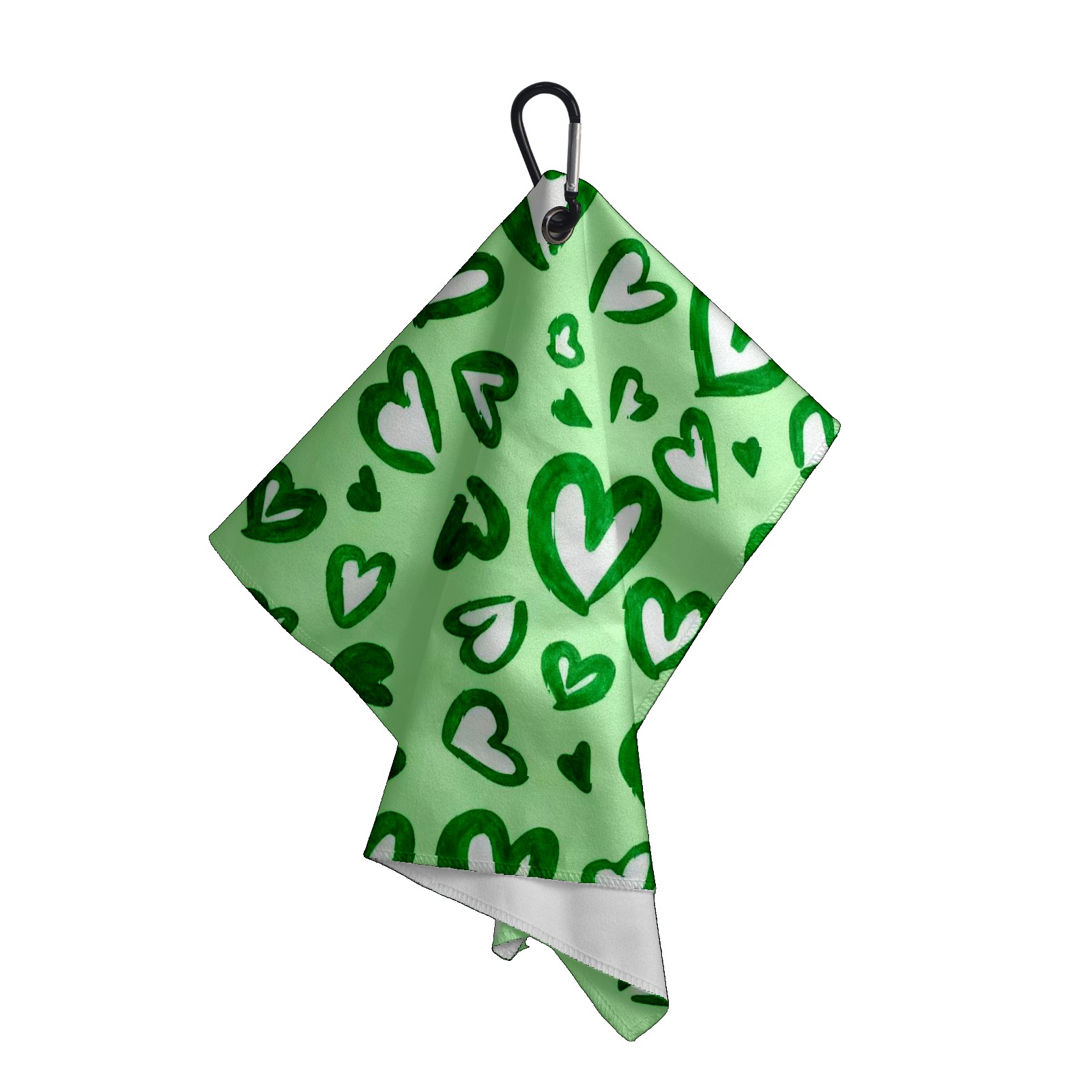 Golf Towel with Buckle Clip, Club Cleaning Cloth is Highly Absorbent and Dries Quickly for Use on Court Sports Towels Green Love Heart