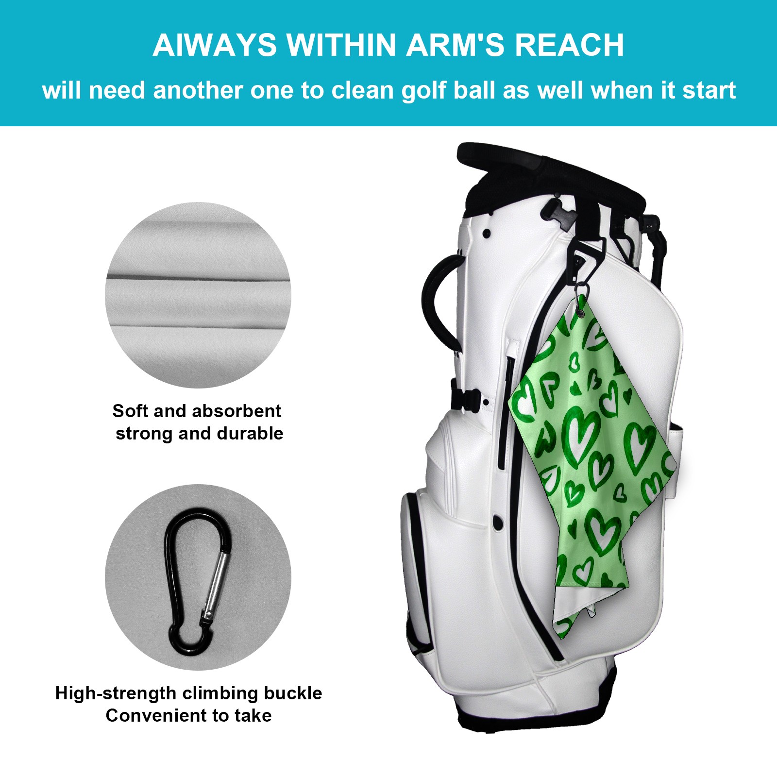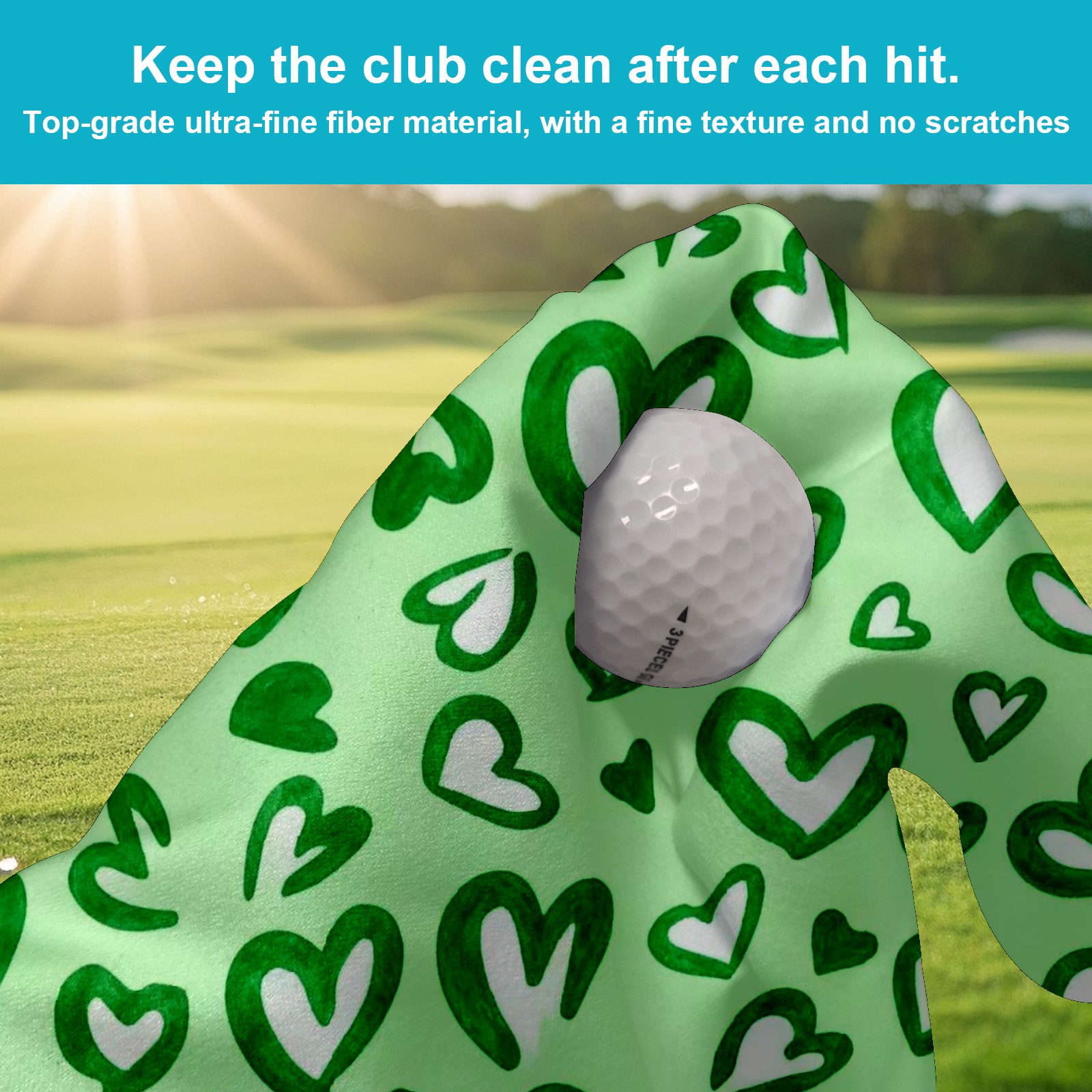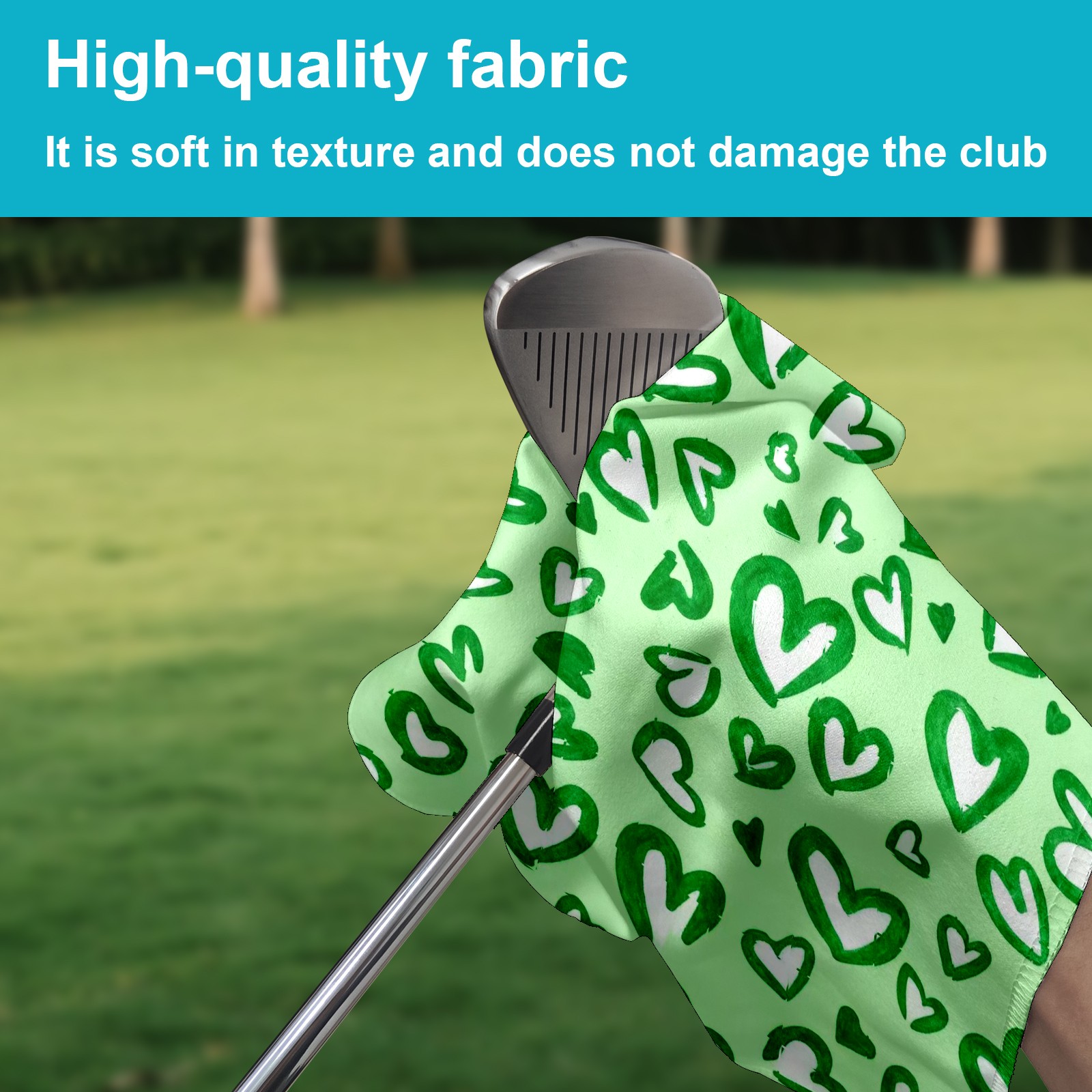 Golf Towel with Buckle Clip, Club Cleaning Cloth is Highly Absorbent and Dries Quickly for Use on Court Sports Towels Green Love Heart