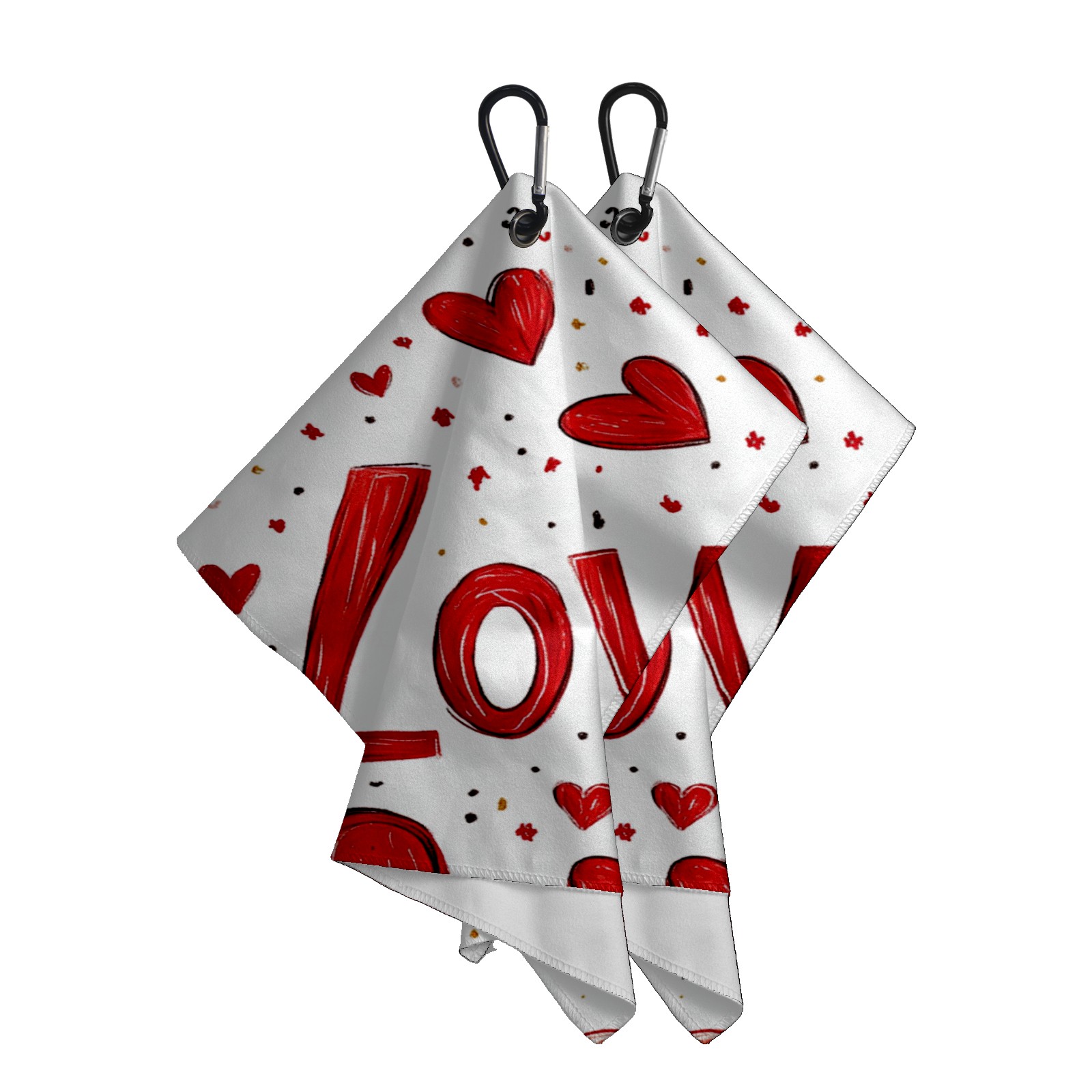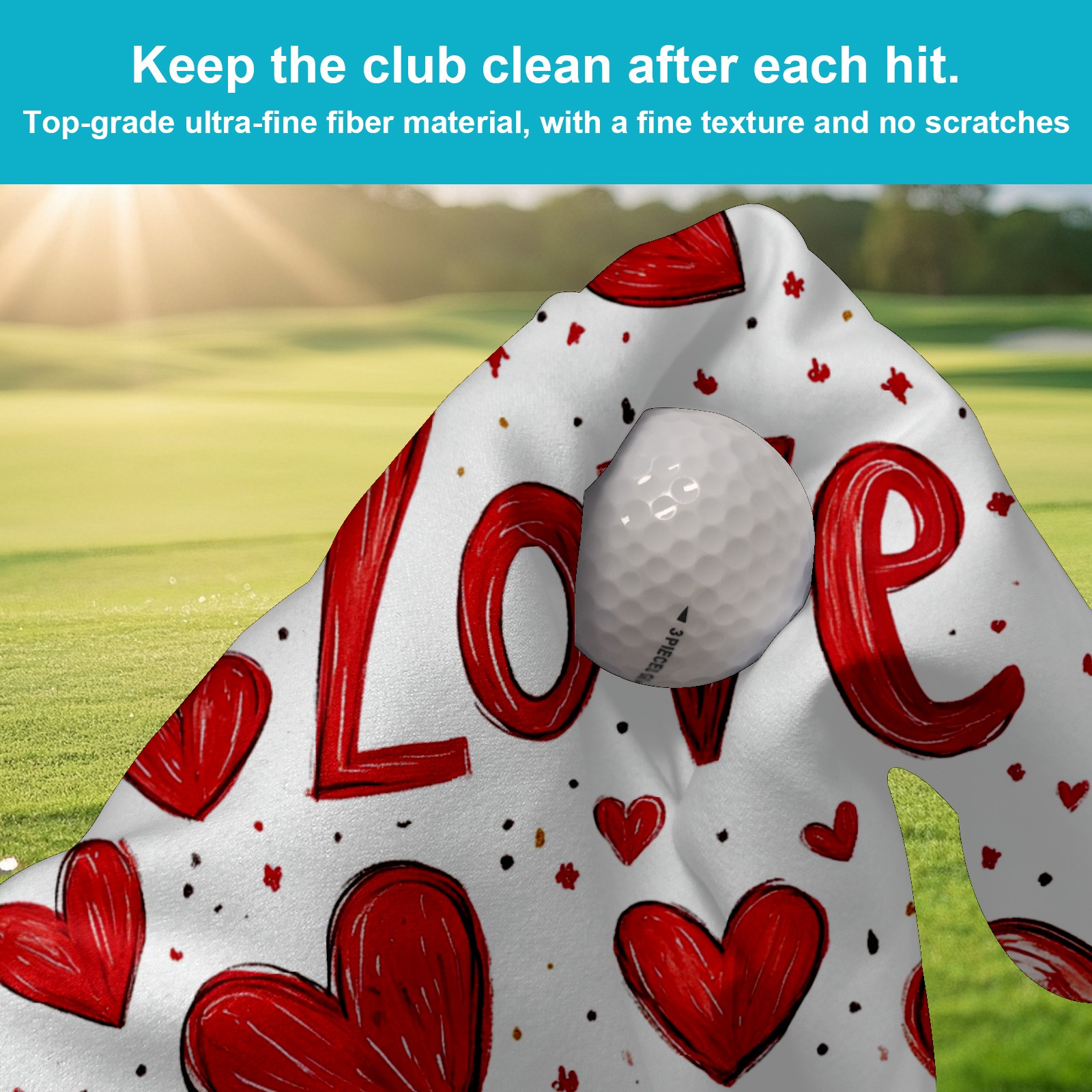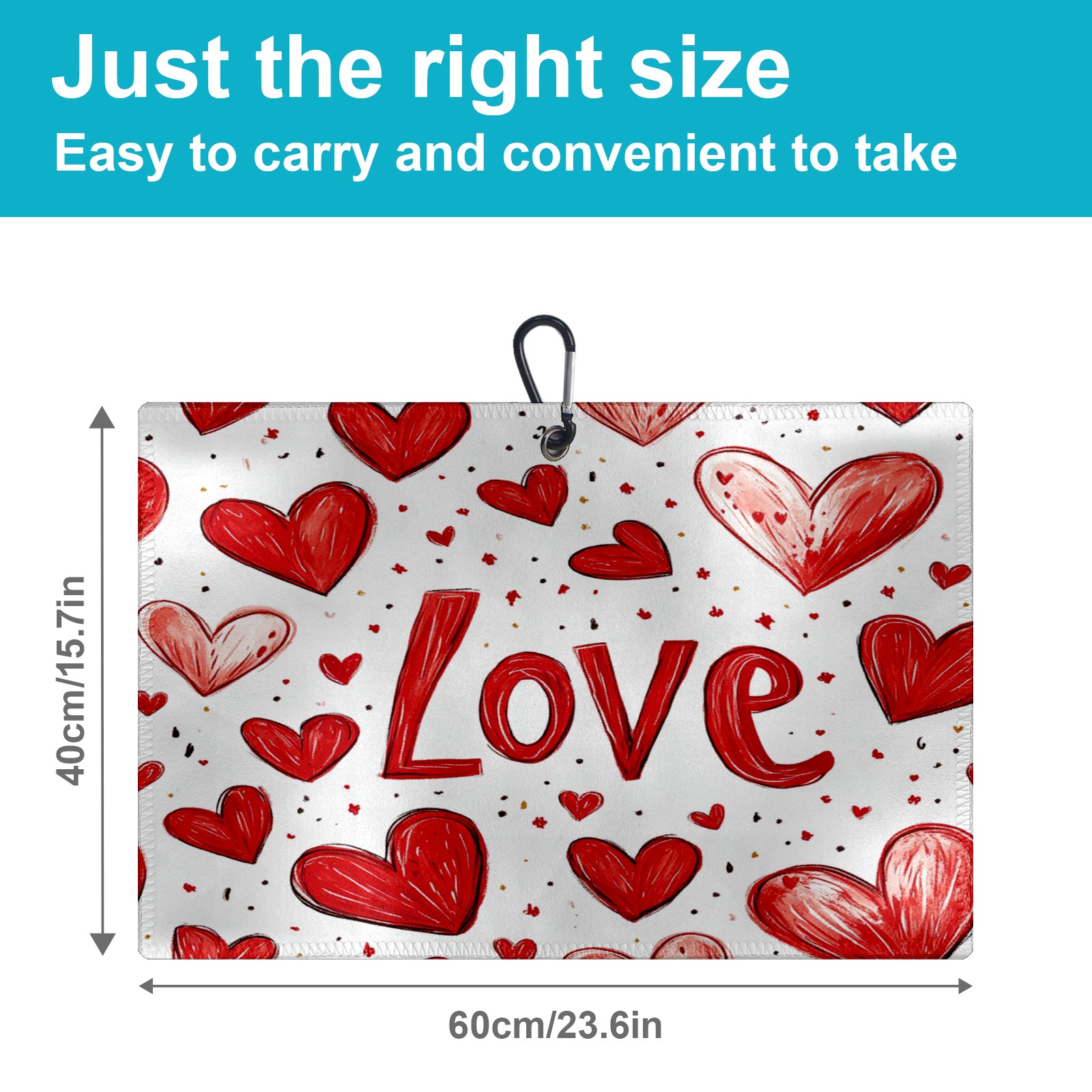 Golf Towel with Buckle Clip, Club Cleaning Cloth is Highly Absorbent and Dries Quickly for Use on Court Sports Towels Red Love Heart