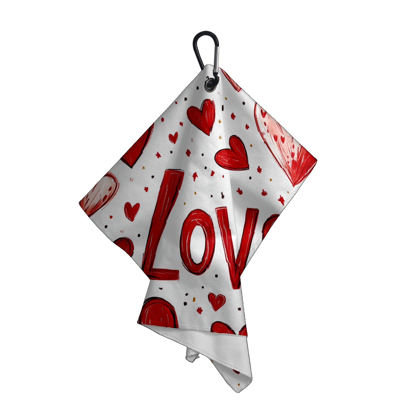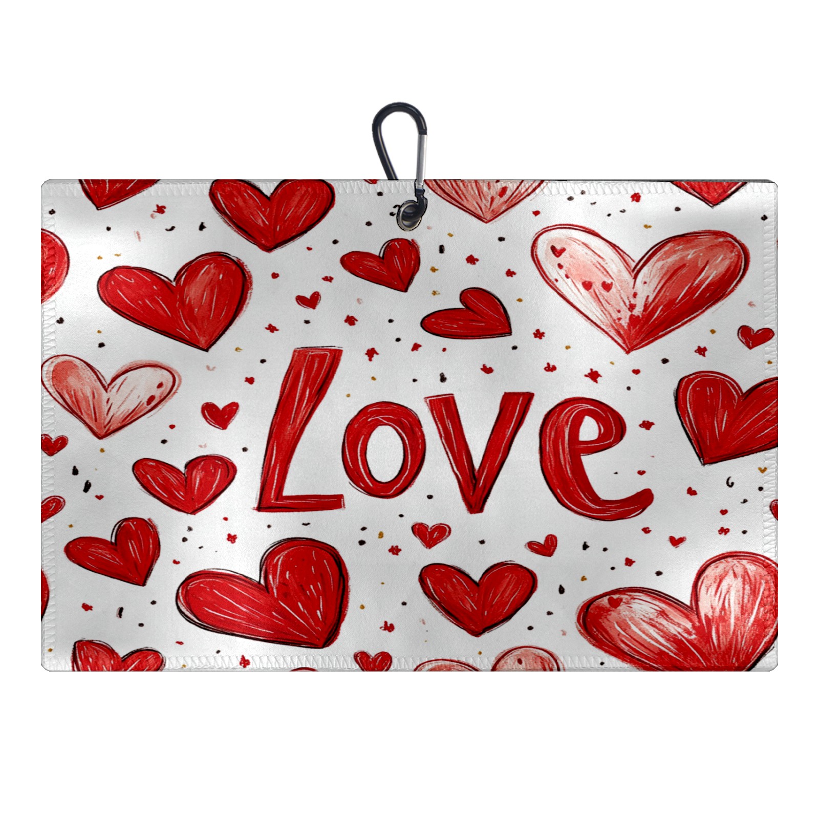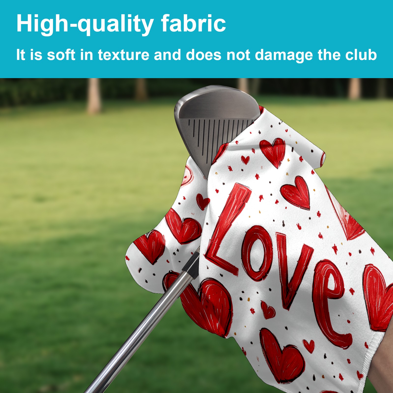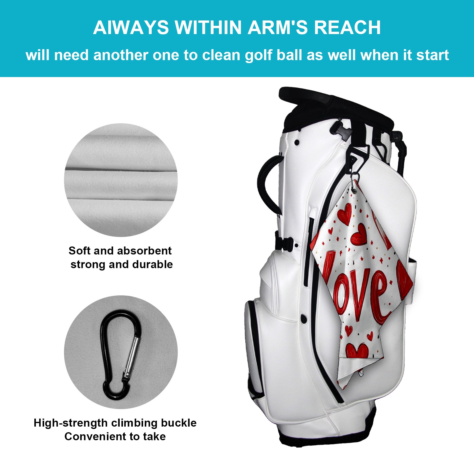 Golf Towel with Buckle Clip, Club Cleaning Cloth is Highly Absorbent and Dries Quickly for Use on Court Sports Towels Red Love Heart