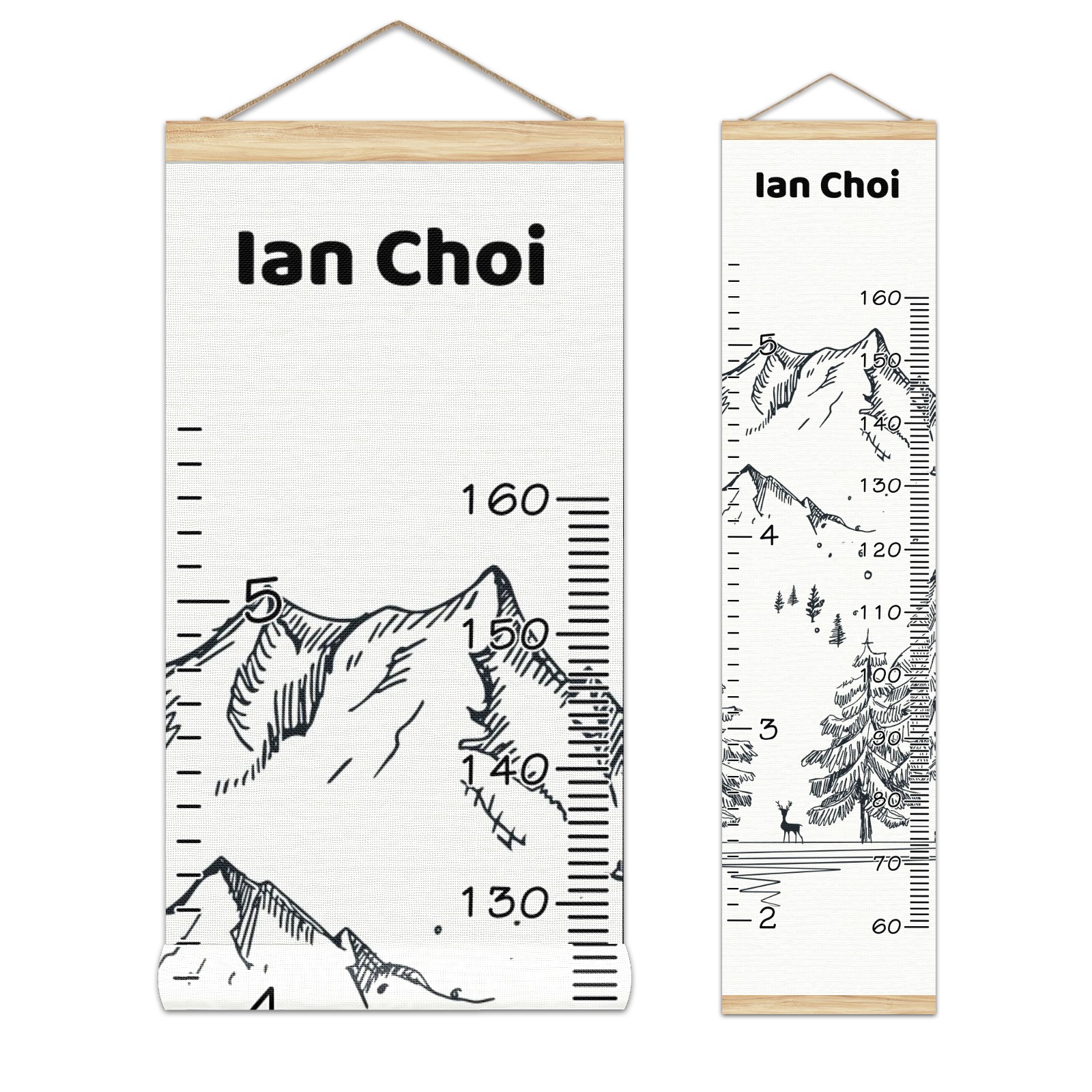 Personalized Kids Name Growth Chart Ruler for Wall Wood Frame Canvas Height Measure Chart 13.4x56 in Hanging Growth Chart Winter Mountain10.8-1 Boys Girls Room Decor