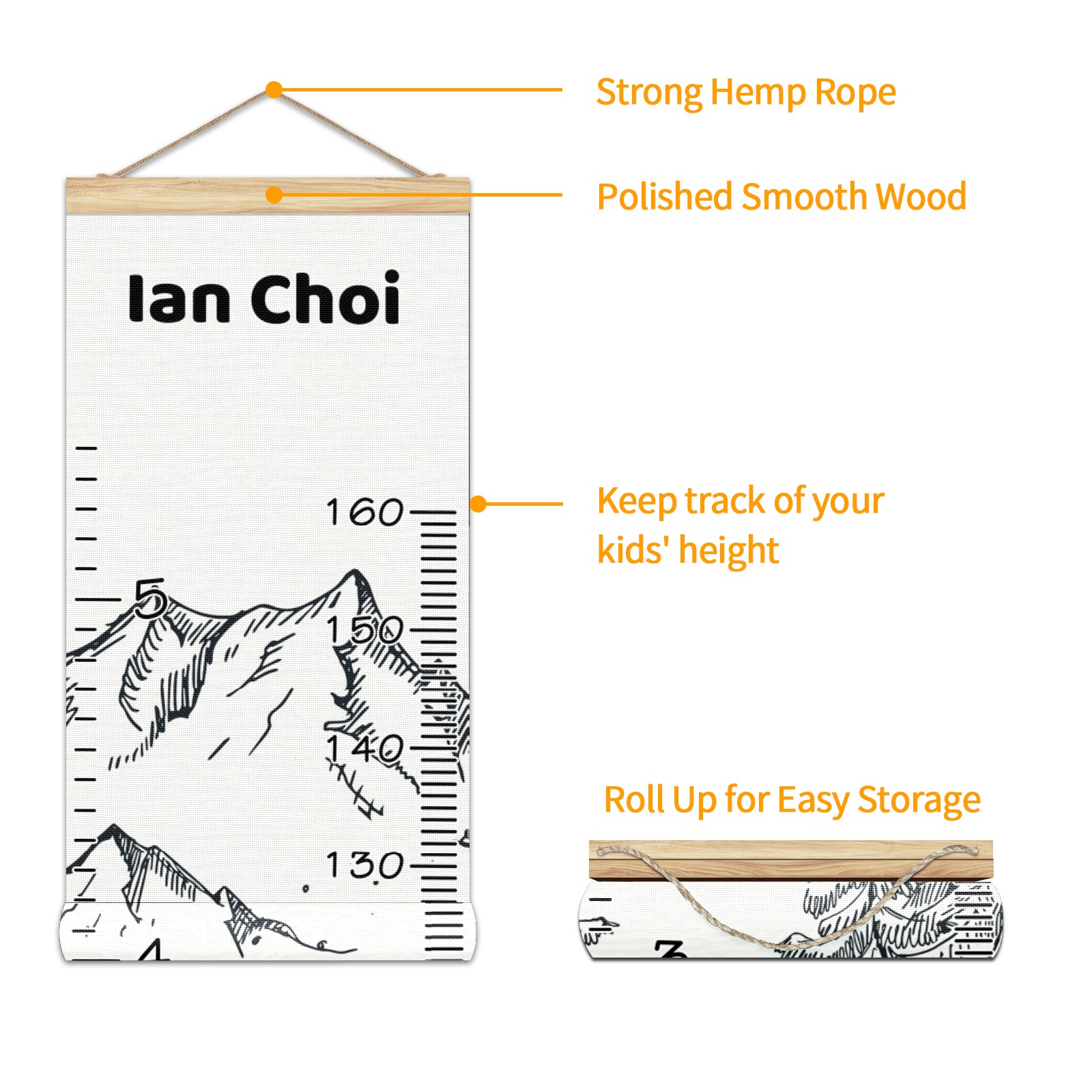 • <p><b>Features:</b></p> <p>Rope for Hanging</p> <p>Material: Linen + Wood</p> <p>Dimensions: 13.4x56 inches</p> <p>Package Included: 1 * Baby Growth Chart</p> <p><b>Baby height growth chart can be used anywhere</b></p> <p>Ideal for kids nursery decoration, kids bedroom, interior walls or windows, playroom, living room, homedecoration.Add name and make the growth chart special!</p> <p><b>Easy to fold and carry</b></p> <p>With rope at the top of the growth chart, it is easy to install and remove.You can fold it and unfold any time any where.</p> <p><b>Perfect Gift Idea for Kids</b></p> <p>Environmental and non-toxic for kids use, it must be a perfect gift for baby, kids, girls, and boys.This is a best choice for your friend who have kids or baby as a popular gift.</p> <p><b>Easy to read</b></p> <p>Measurement accrate with 2 scales, Centimeters and feet. The letters are big enough, very easy to read.</p> <p><b>60cm(23.6inch) Over Ground Design</b></p> <p>Not only can protect from dust and other damage, but also will not interfere in floor cleaning.</p>