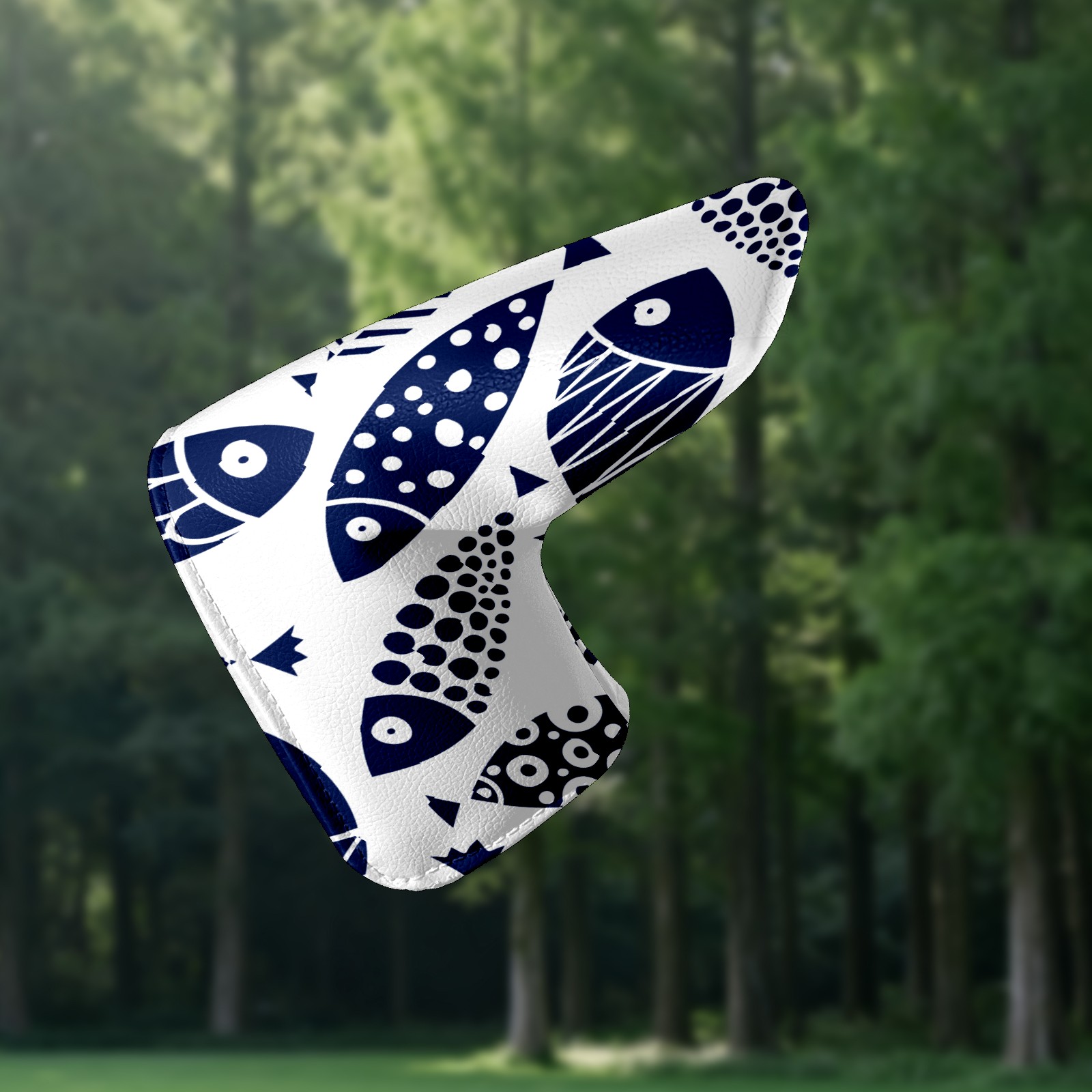 Golf Putter Cover, Water Resistant and Fleece Lined Golf Club Head Covers, PU Leather Head Covers for Men and Women Golfers Japanese Koi Fish Pattern