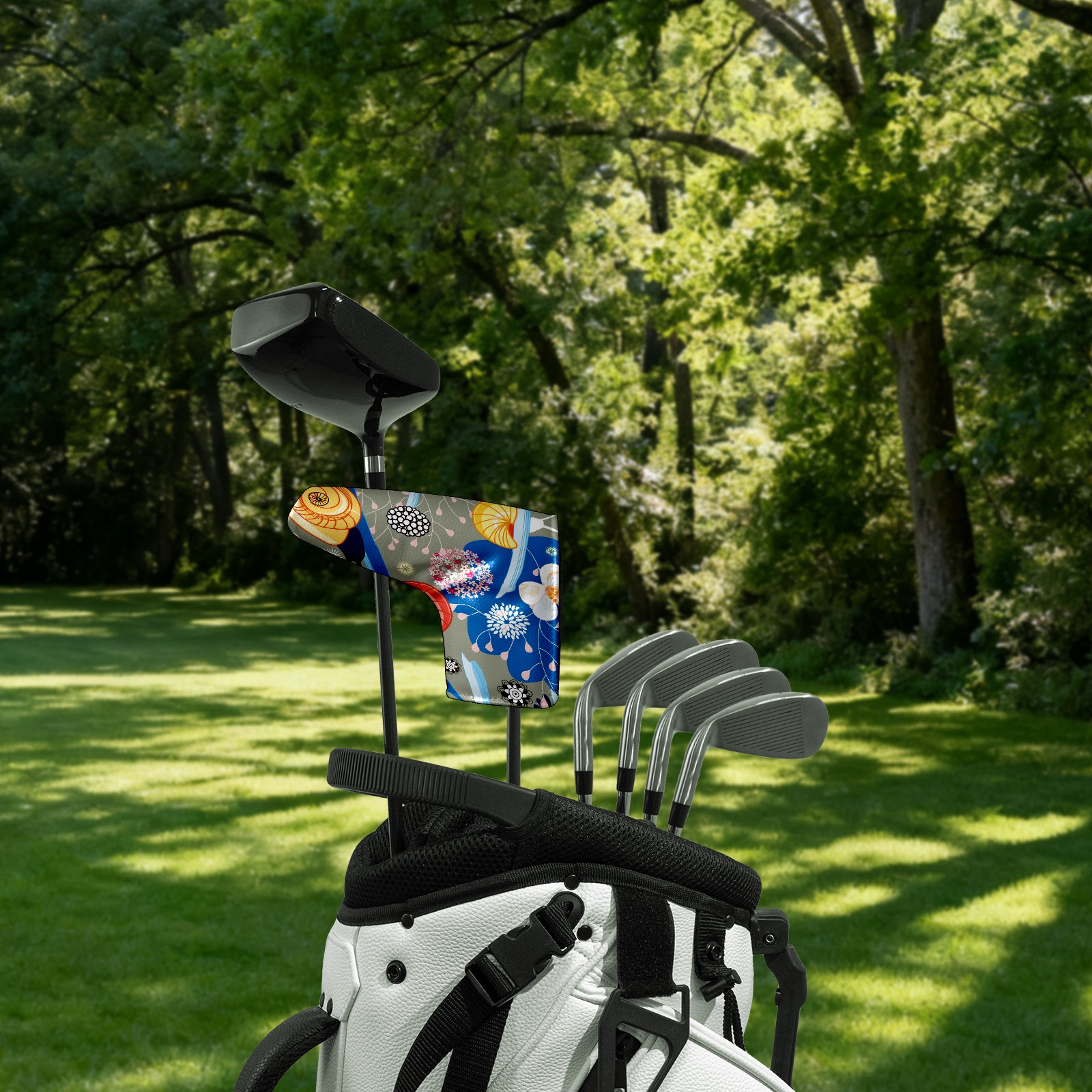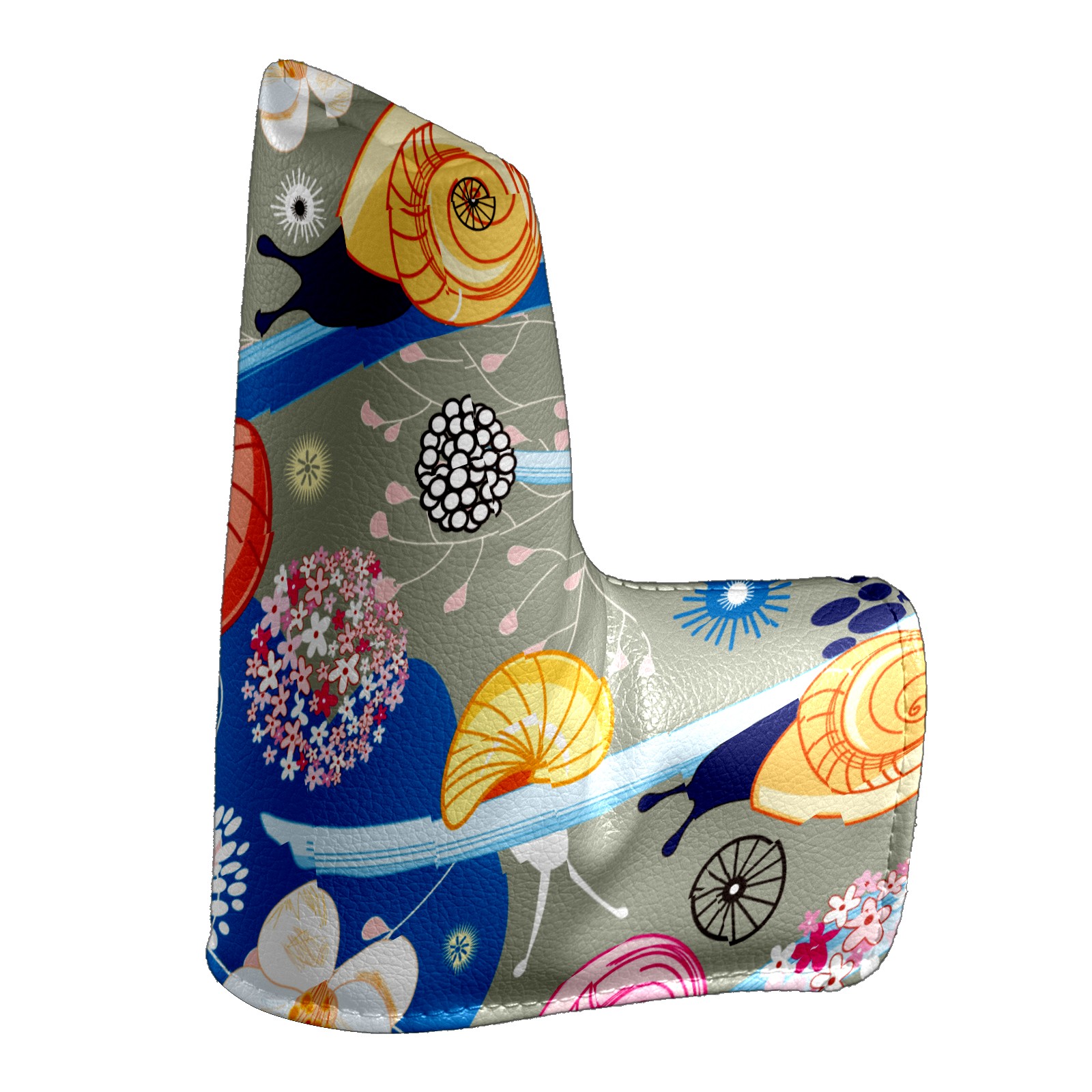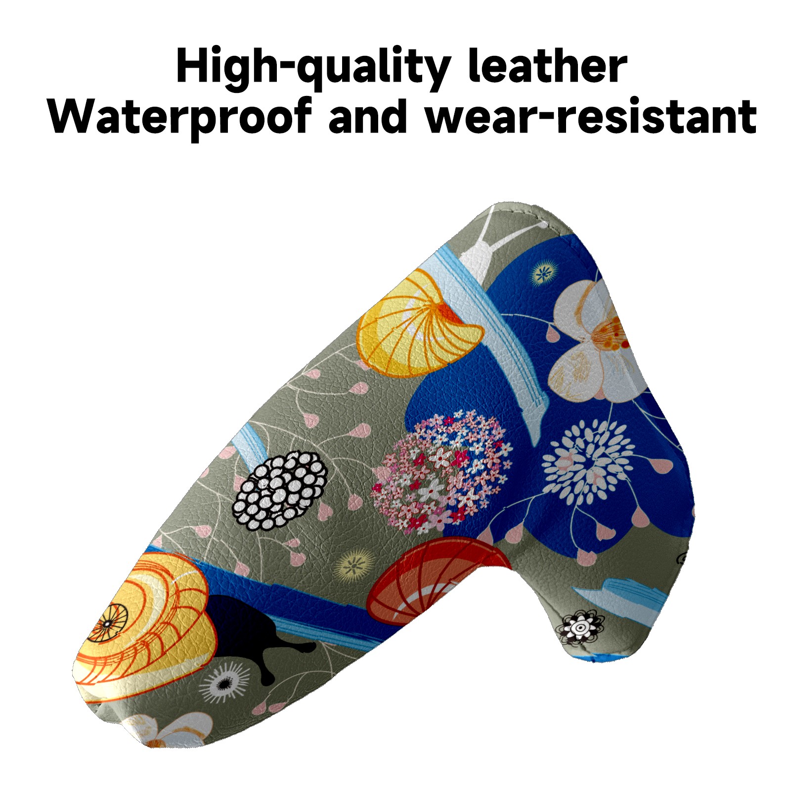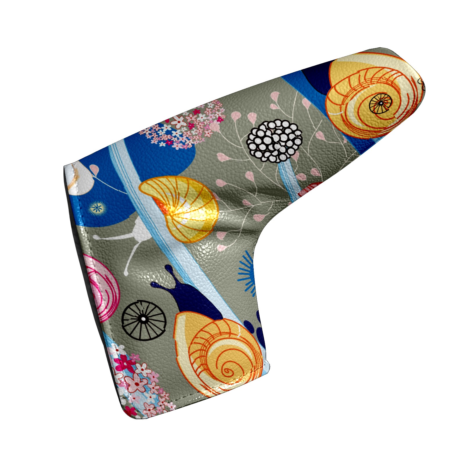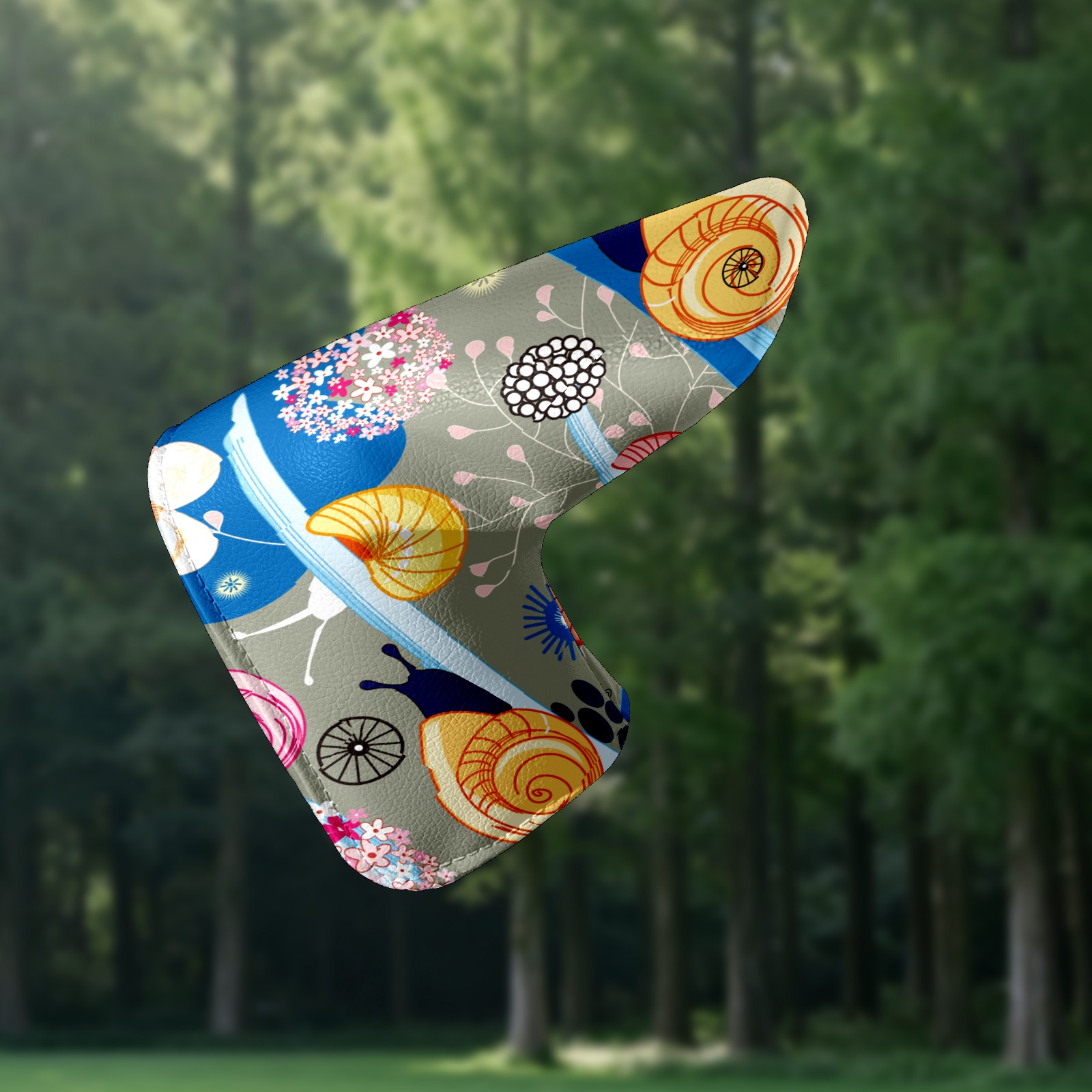 Golf Putter Cover, Water Resistant and Fleece Lined Golf Club Head Covers, PU Leather Head Covers for Men and Women Golfers Fantasy Spring Snail With Floral