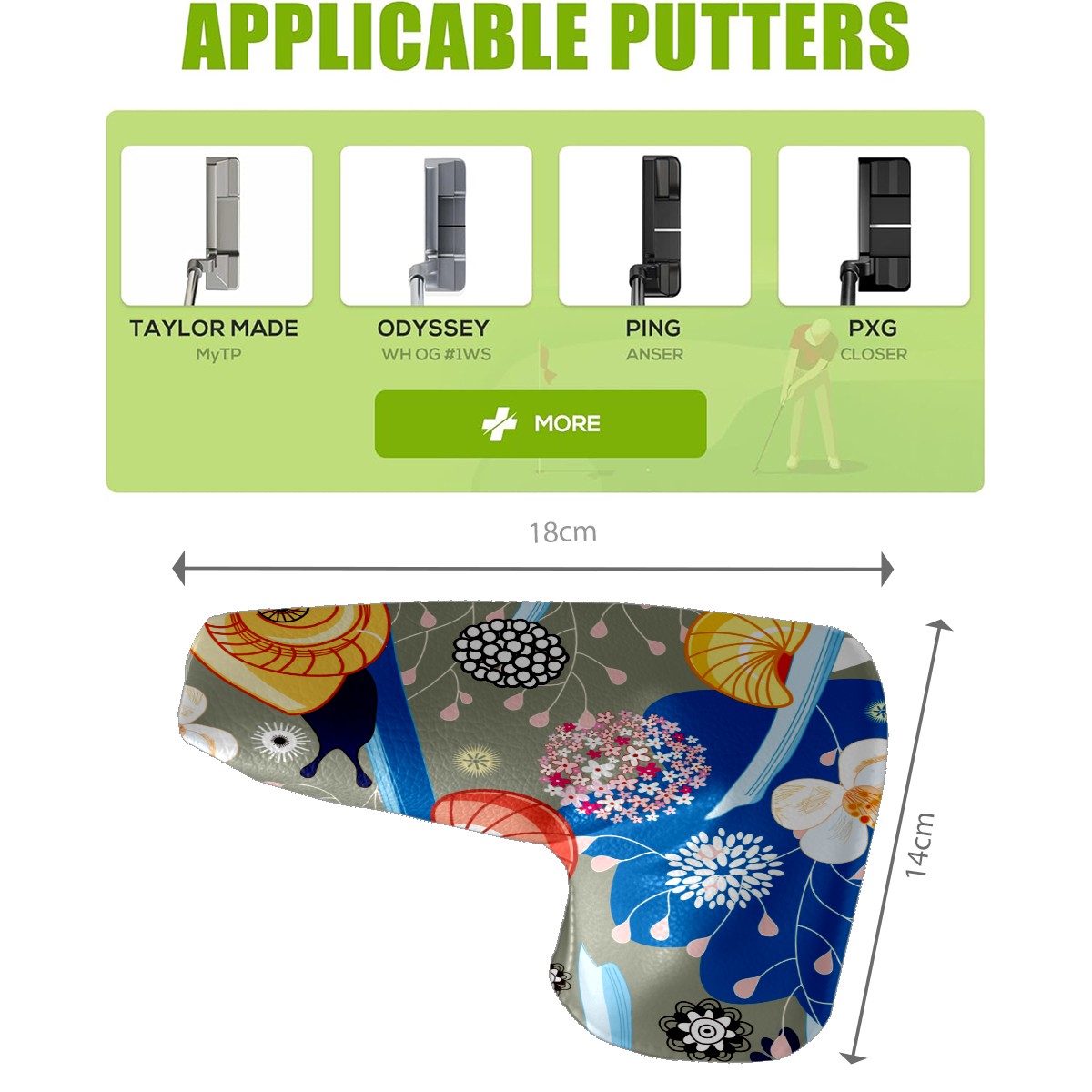 • <p>In the world of golfing equipment, the details often show professionalism and care. We carefully present this putter head protector as a classic golf accessory that will bring a new upgrade to your golf experience. It is a fusion of precision and fashion. The exterior is made of high-quality leather with a tough and textured texture that can effectively resist wear and tear and scratches from daily use. The soft inner lining wraps a gentle protective film around the putter head, avoiding minor scratches and damages caused by collisions and prolonging the life of the putter. The unique closure design is the finishing touch, super strong adhesive force, no matter how you walk on the course, bumps, it is as stable as a mountain, will not easily fall off. It is very convenient to take off the putter cover and put it into the stroke with just one pull, so that every operation is smooth and natural. It is the crystallization of retro and practical. With a strong retro flavor, it pays tribute to the classic tradition of golf. Its shape perfectly fits the unique shape of a mallet putter, providing all-around wrap-around protection for the putter head. The design of the mallet putter head protector is inspired by the golden age of golf, and the retro pattern and color combination make people feel as if they have traveled through time and space to experience the deep historical heritage of the game of golf. Whether on a traditional style golf course or a modern and fashionable course, it fits perfectly and adds a unique charm to your clubs.<br></p>