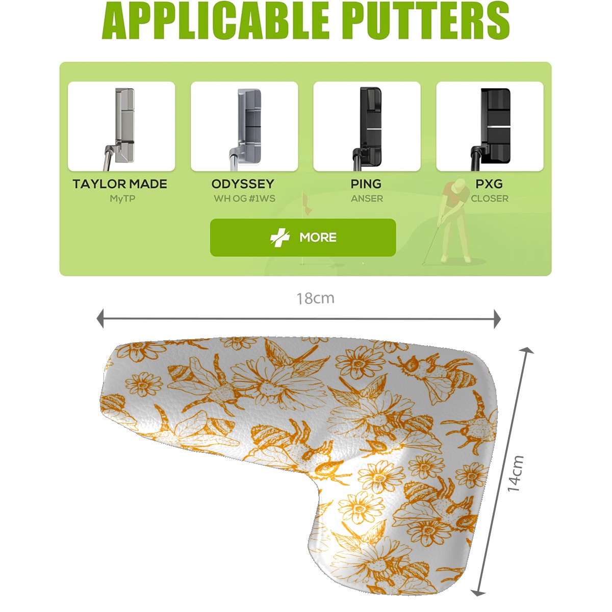 • <p>In the world of golfing equipment, the details often show professionalism and care. We carefully present this putter head protector as a classic golf accessory that will bring a new upgrade to your golf experience. It is a fusion of precision and fashion. The exterior is made of high-quality leather with a tough and textured texture that can effectively resist wear and tear and scratches from daily use. The soft inner lining wraps a gentle protective film around the putter head, avoiding minor scratches and damages caused by collisions and prolonging the life of the putter. The unique closure design is the finishing touch, super strong adhesive force, no matter how you walk on the course, bumps, it is as stable as a mountain, will not easily fall off. It is very convenient to take off the putter cover and put it into the stroke with just one pull, so that every operation is smooth and natural. It is the crystallization of retro and practical. With a strong retro flavor, it pays tribute to the classic tradition of golf. Its shape perfectly fits the unique shape of a mallet putter, providing all-around wrap-around protection for the putter head. The design of the mallet putter head protector is inspired by the golden age of golf, and the retro pattern and color combination make people feel as if they have traveled through time and space to experience the deep historical heritage of the game of golf. Whether on a traditional style golf course or a modern and fashionable course, it fits perfectly and adds a unique charm to your clubs.<br></p>
