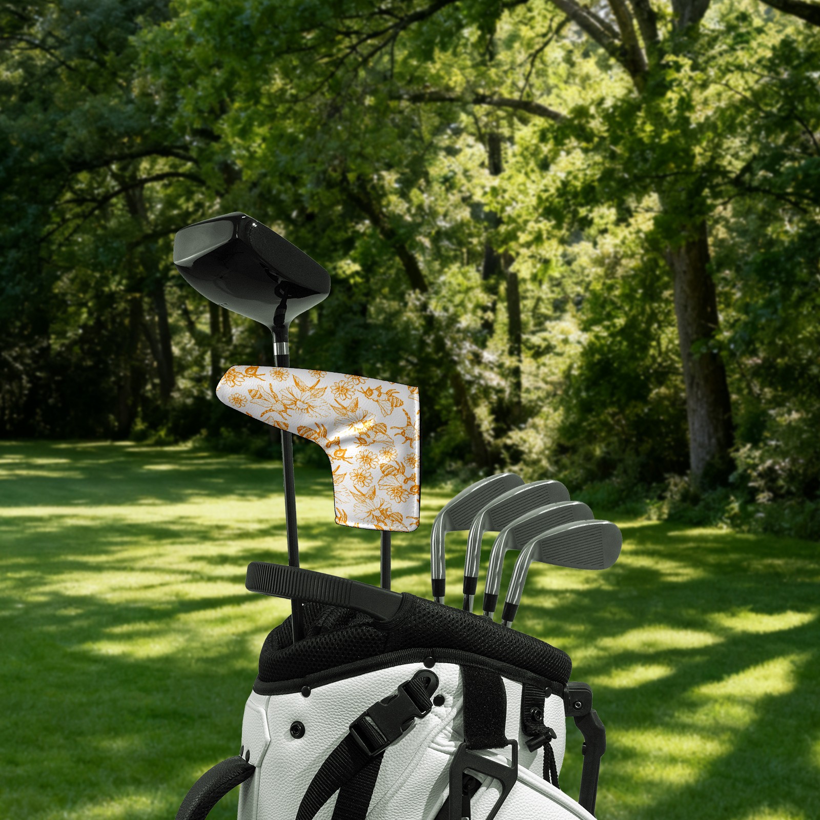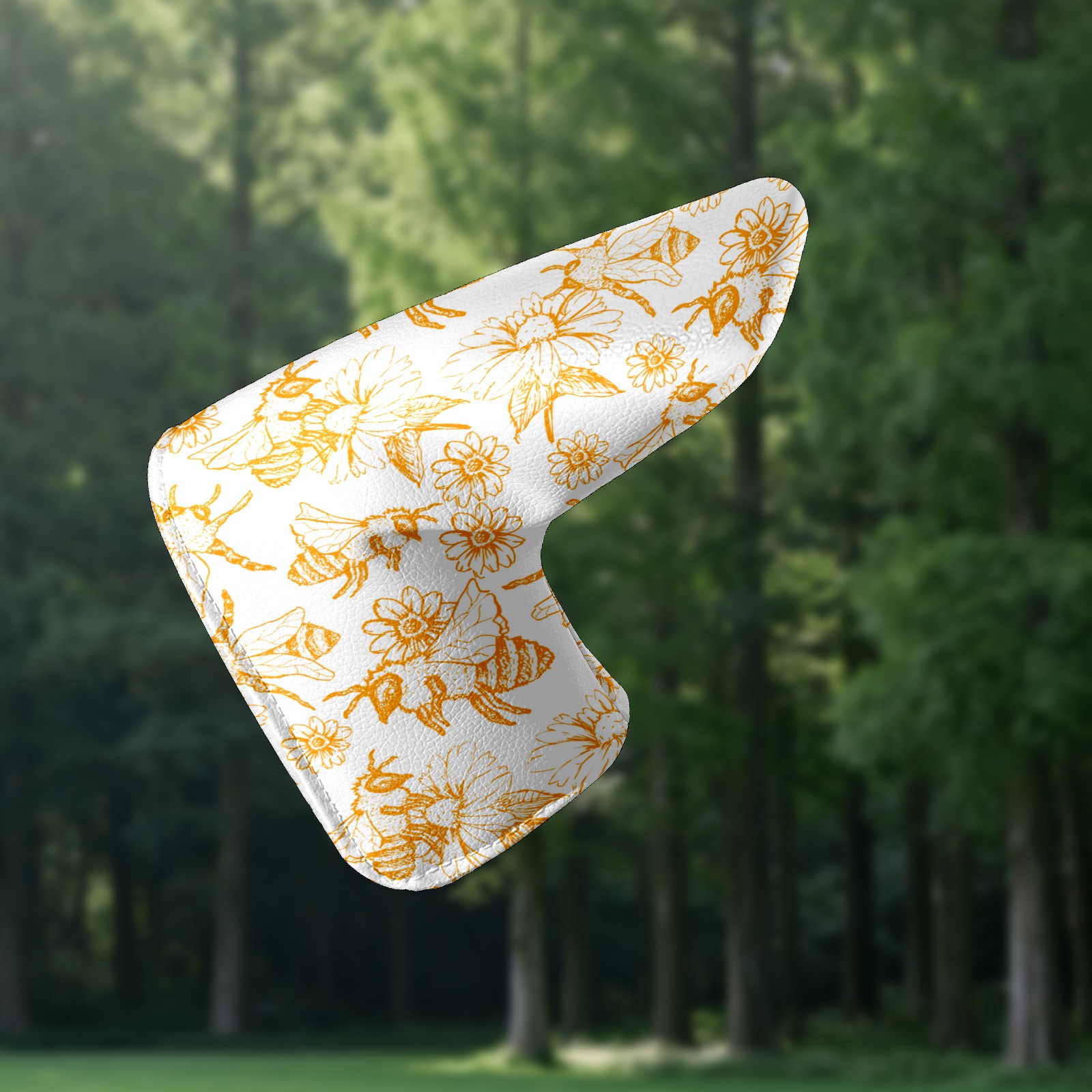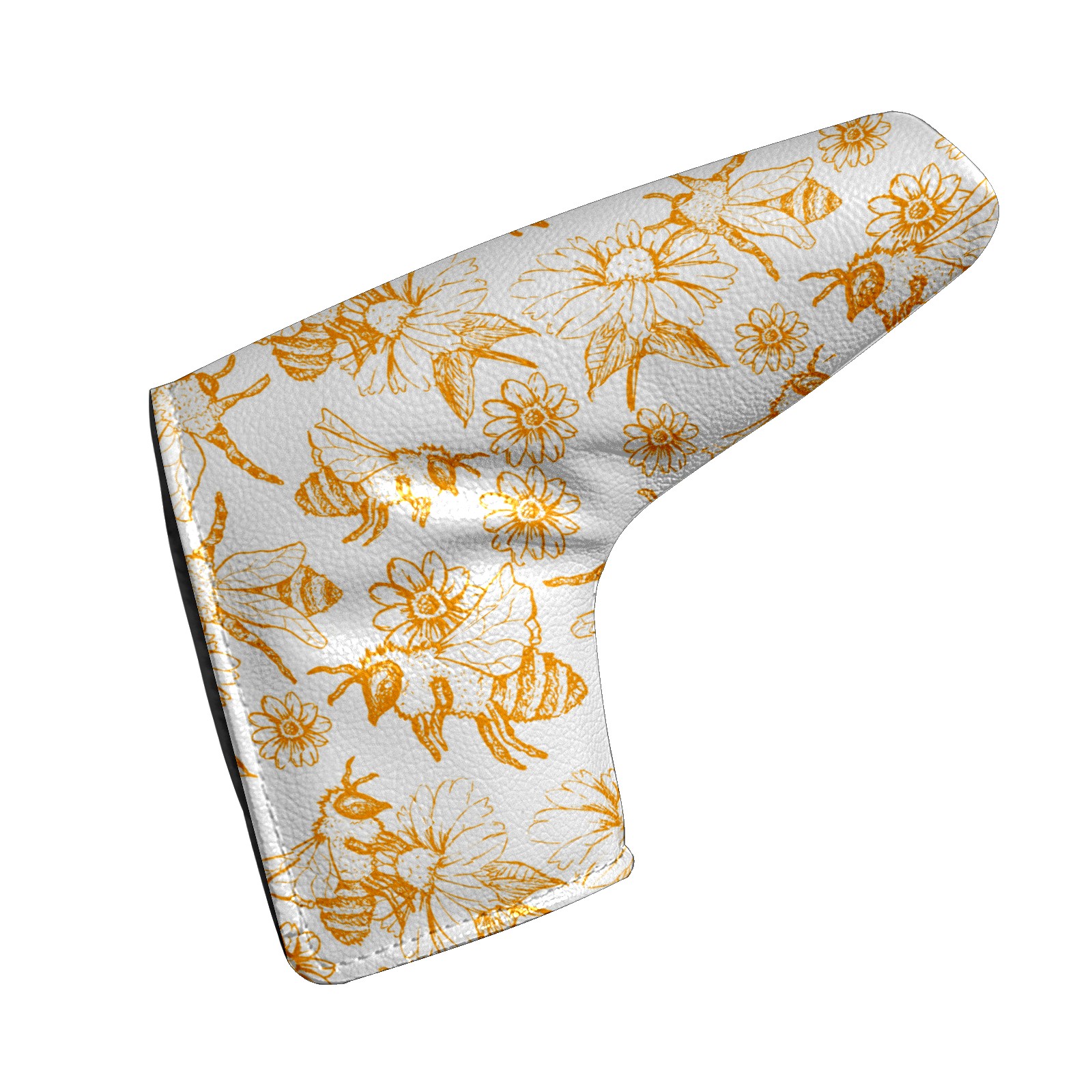 Golf Putter Cover, Water Resistant and Fleece Lined Golf Club Head Covers, PU Leather Head Covers for Men and Women Golfers Vintage Sketch Honey Bee Flowers