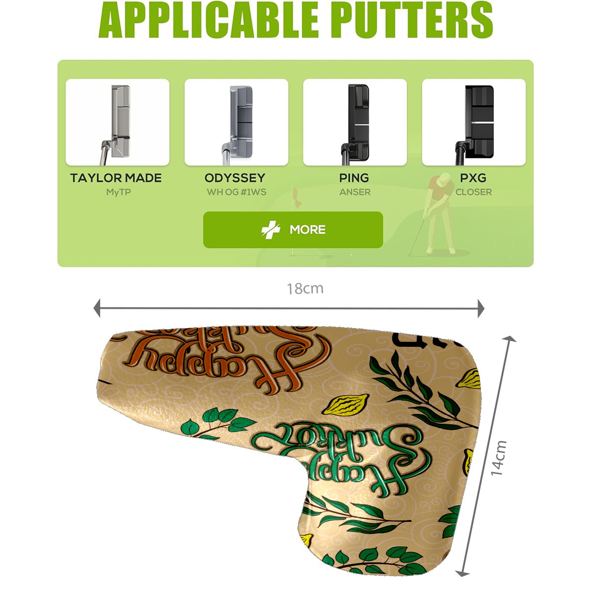 Golf Putter Cover, Water Resistant and Fleece Lined Golf Club Head Covers, PU Leather Head Covers for Men and Women Golfers Happy Sukkot Shavuot