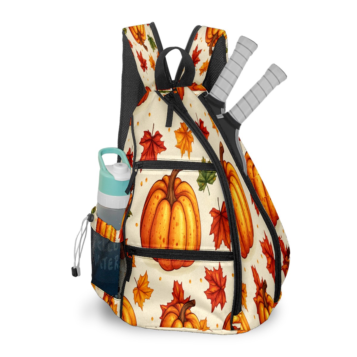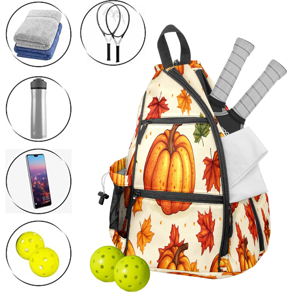 Pickleball Bag,Adjustable Shoulder Bag,Waterproof and Large Capacity,Pickleball Backpack for Men and Women Maple Leaf Pumpkin
