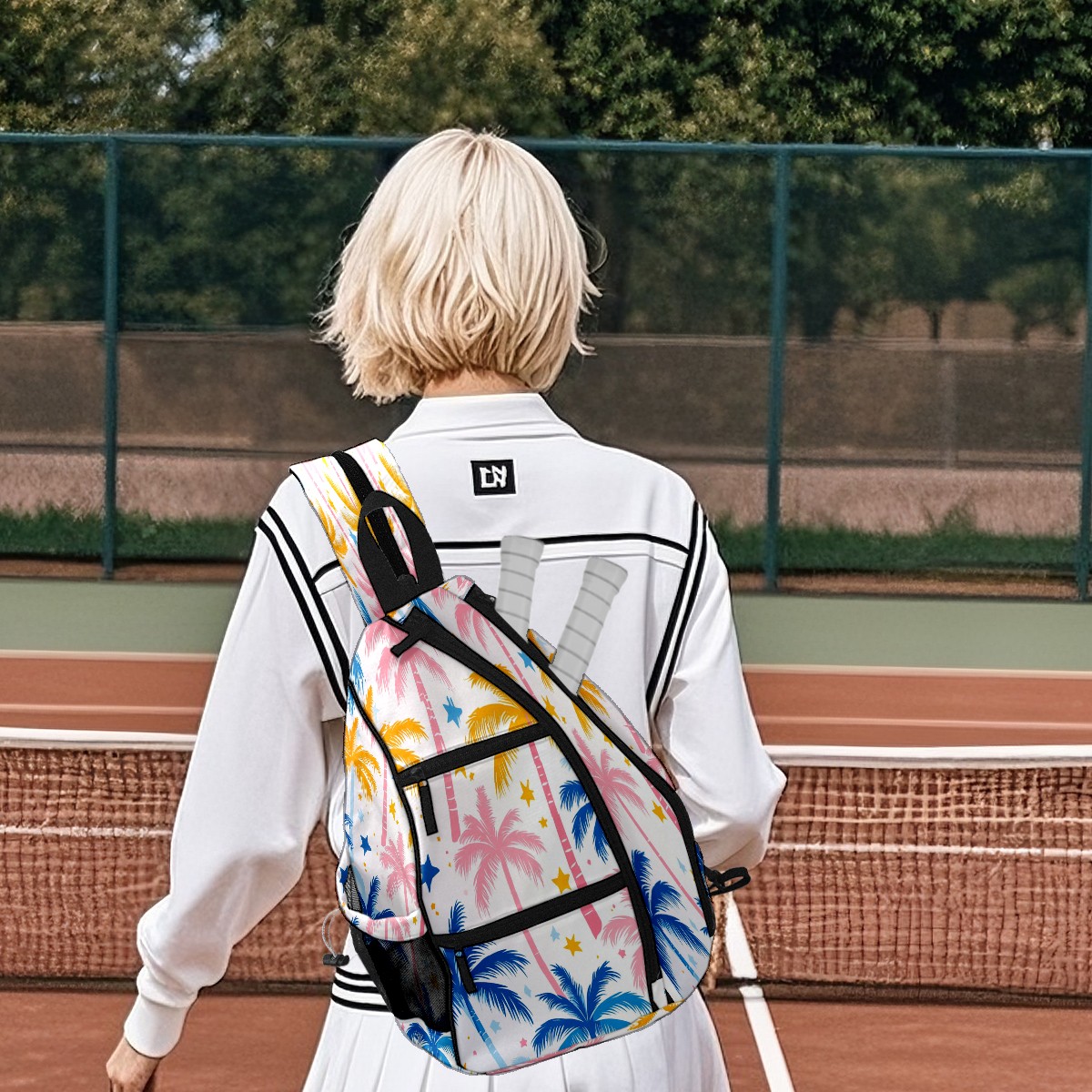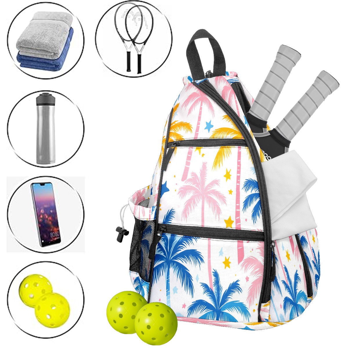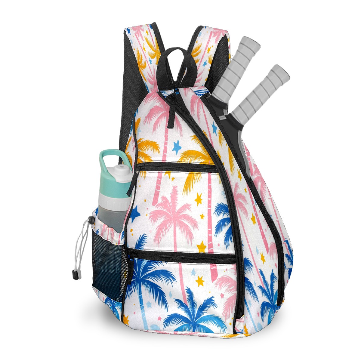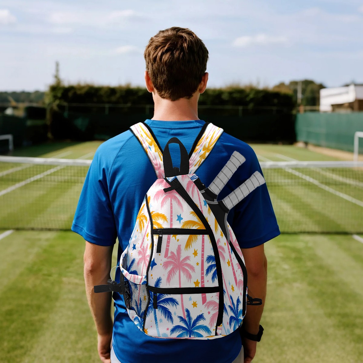 Pickleball Bag,Adjustable Shoulder Bag,Waterproof and Large Capacity,Pickleball Backpack for Men and Women Colorful Palm Tree Stars