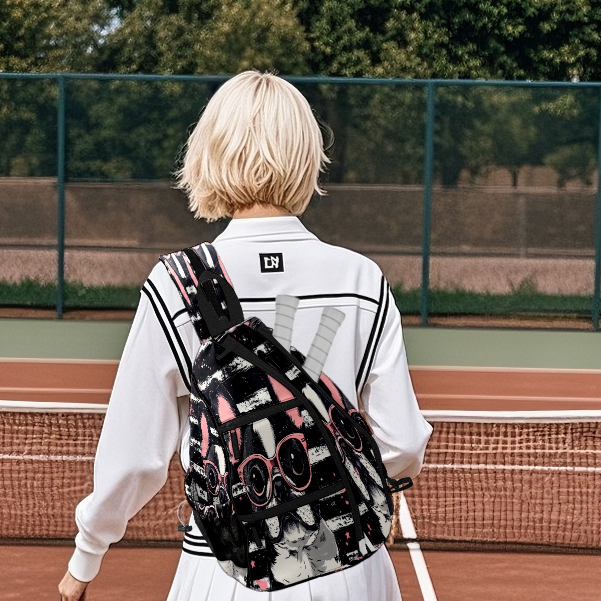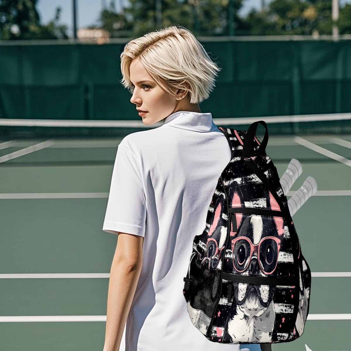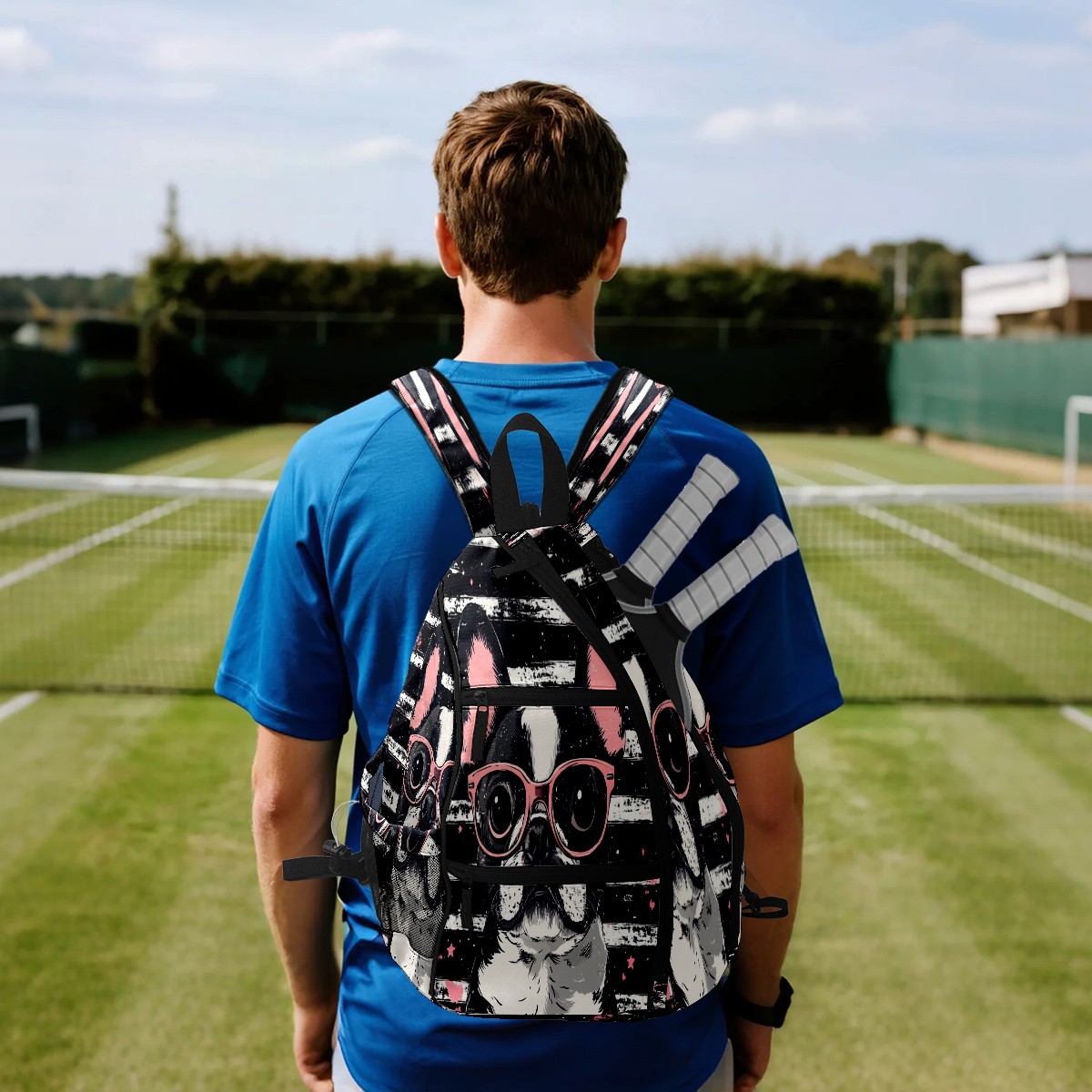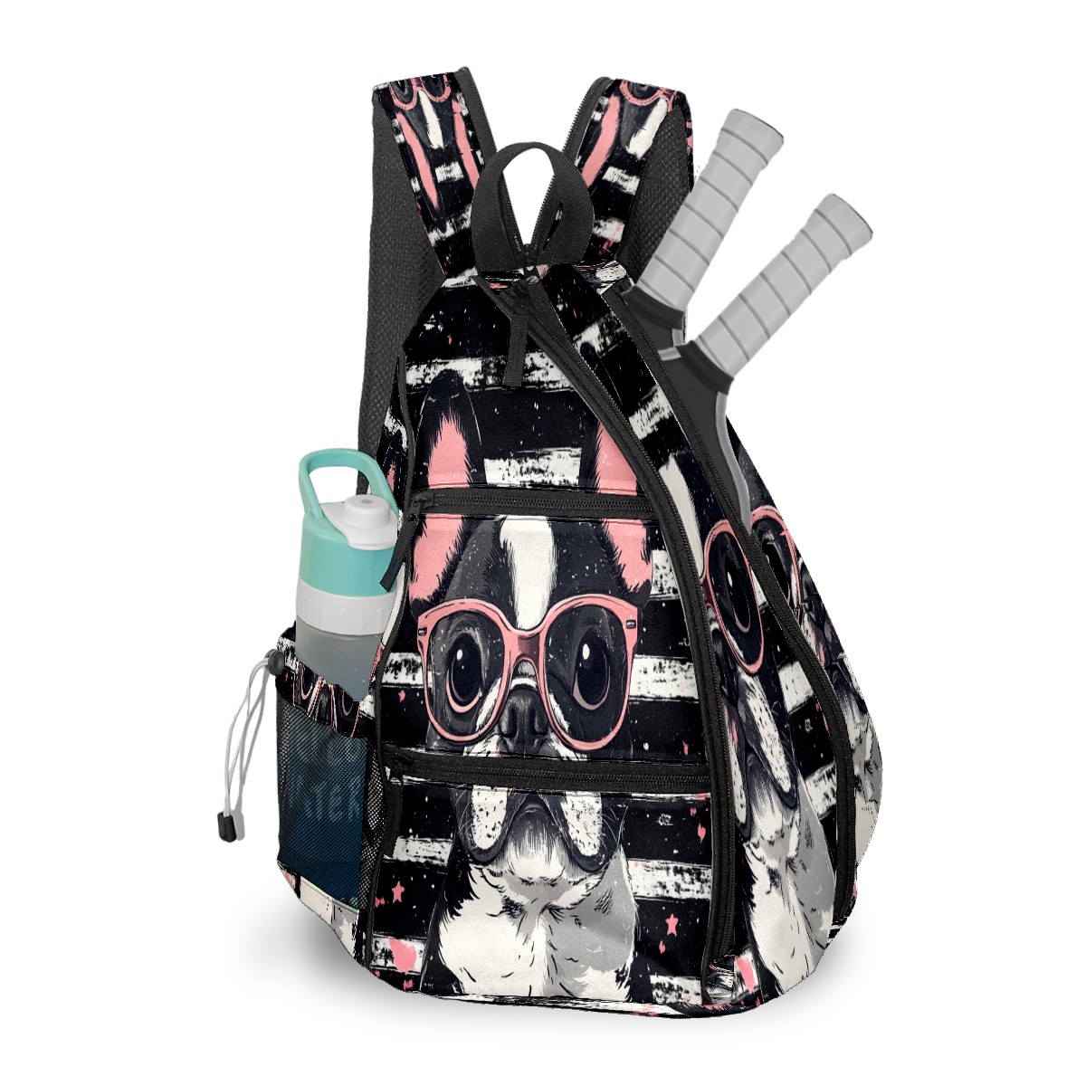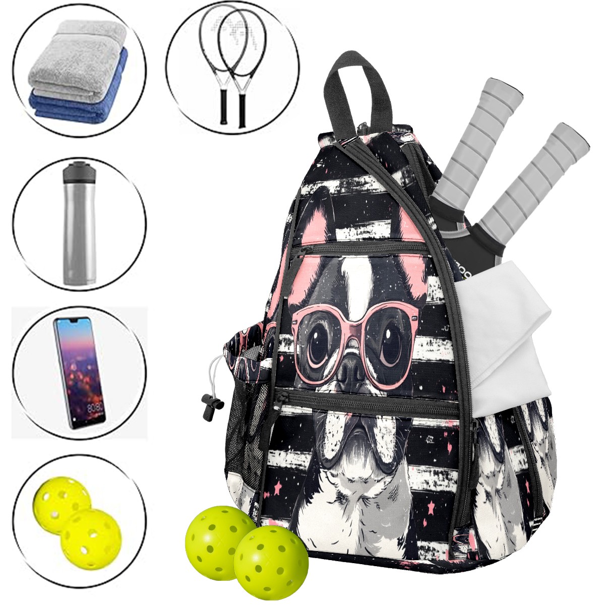 Pickleball Bag,Adjustable Shoulder Bag,Waterproof and Large Capacity,Pickleball Backpack for Men and Women Puppy With Glasses