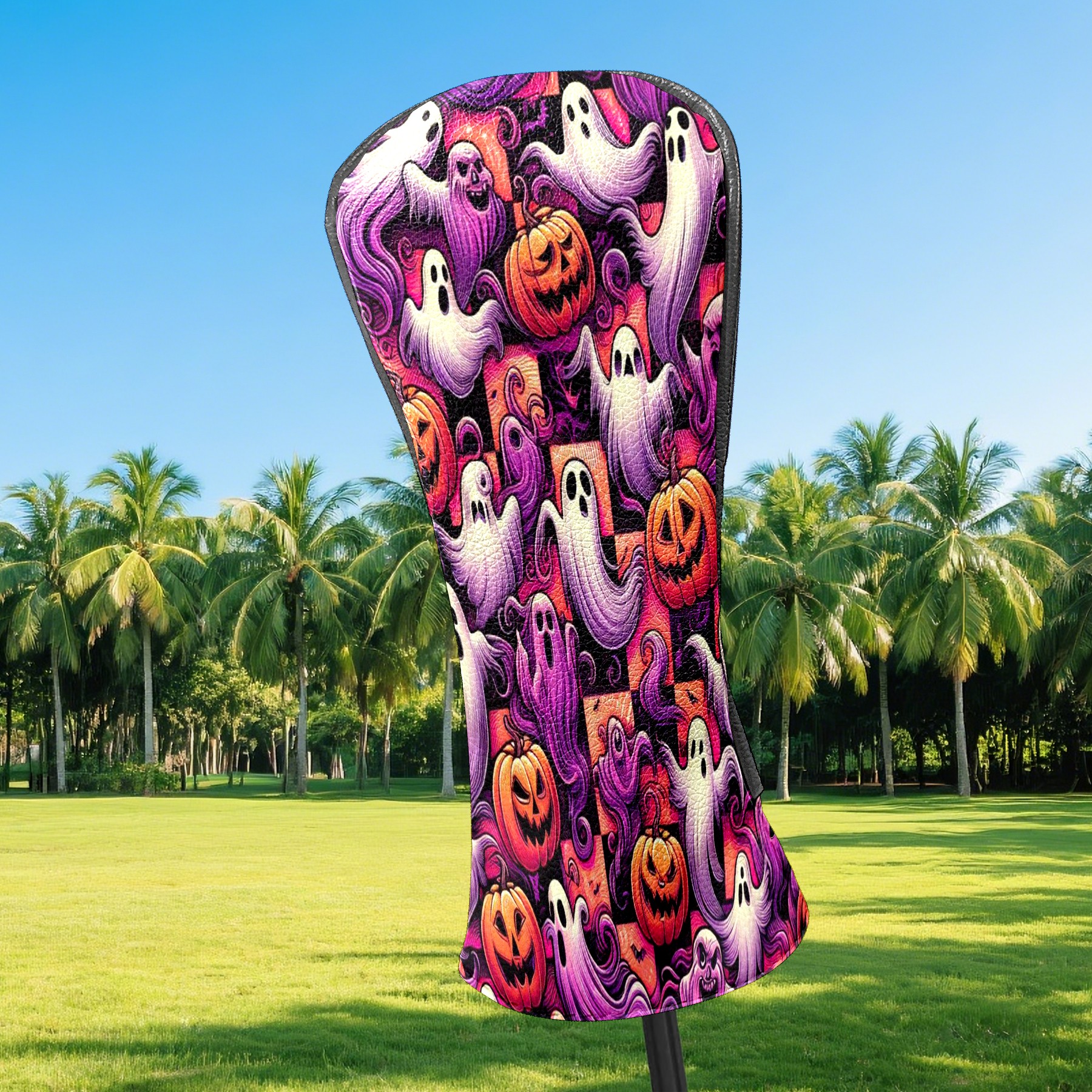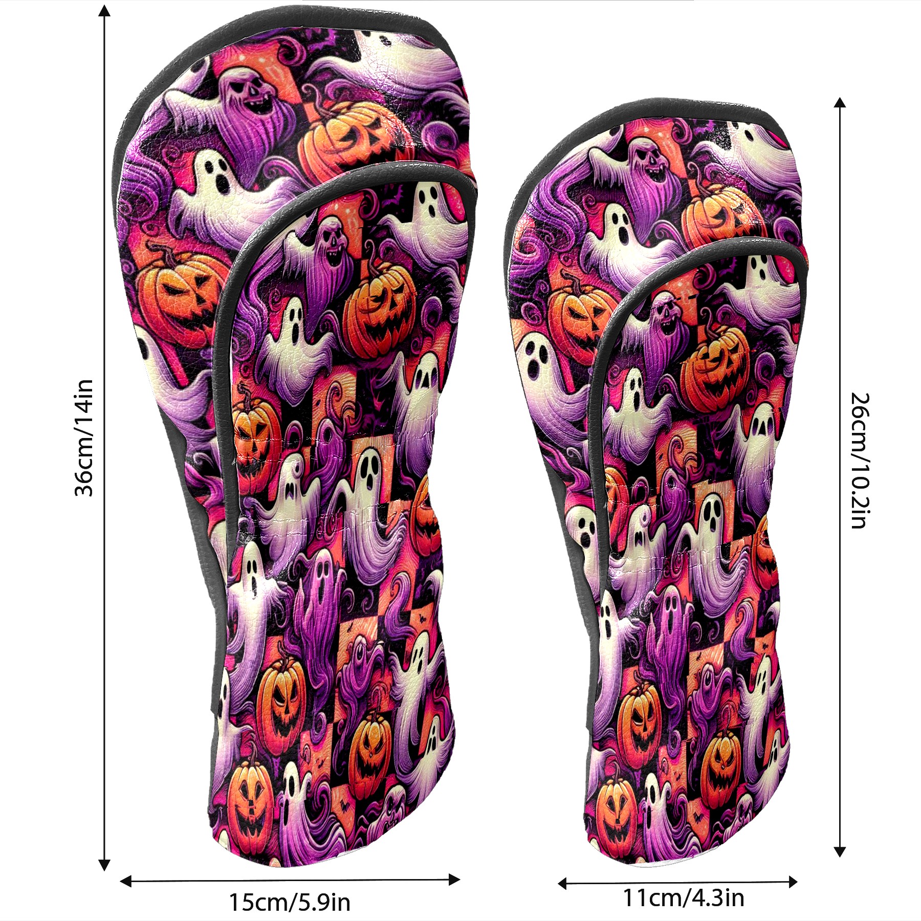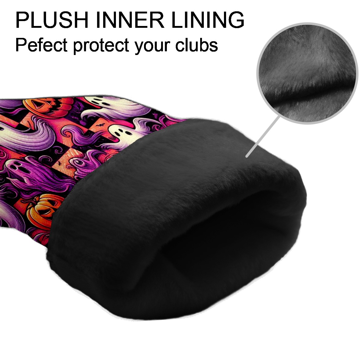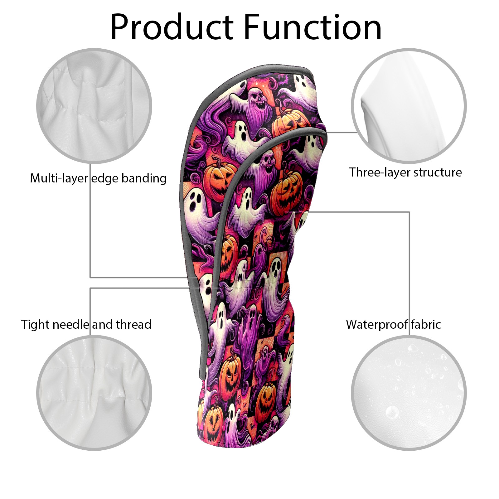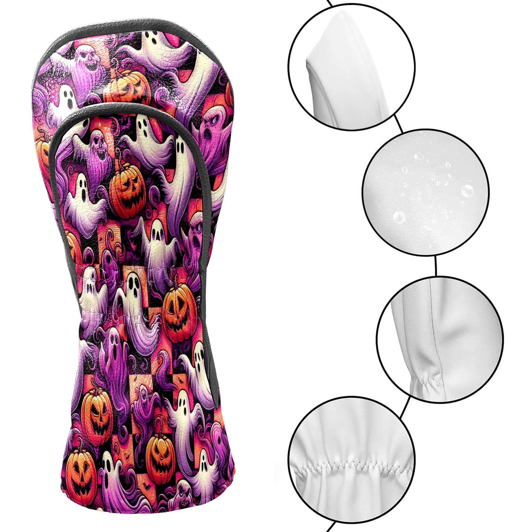 Golf Club Head Covers Purple Pumpkin Halloween Design for Driver & Hybrid, Waterproof PU Leather with Plush Velvet Lining, Scratch Protection & Secure Fit, Ideal Golf Gift for Men Women