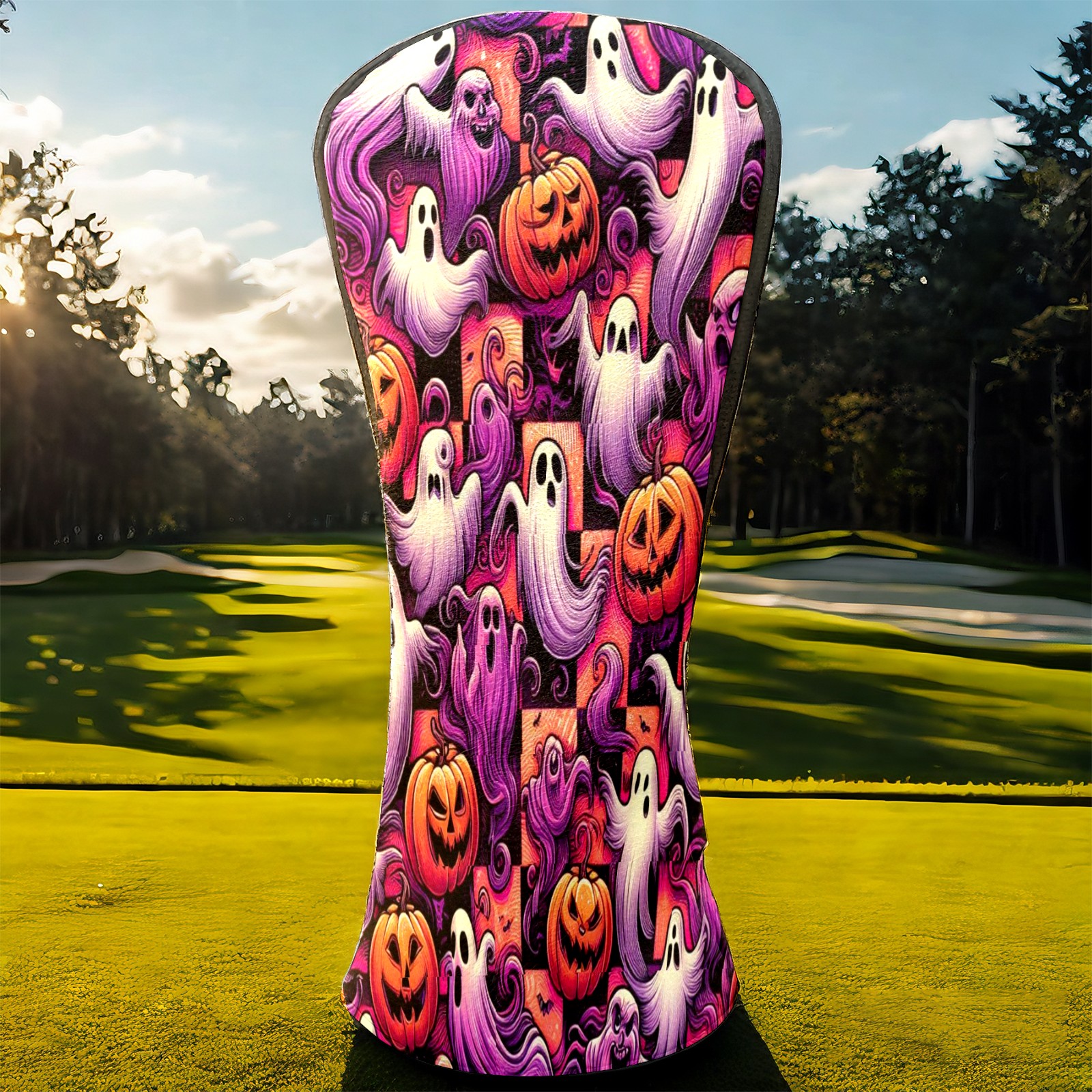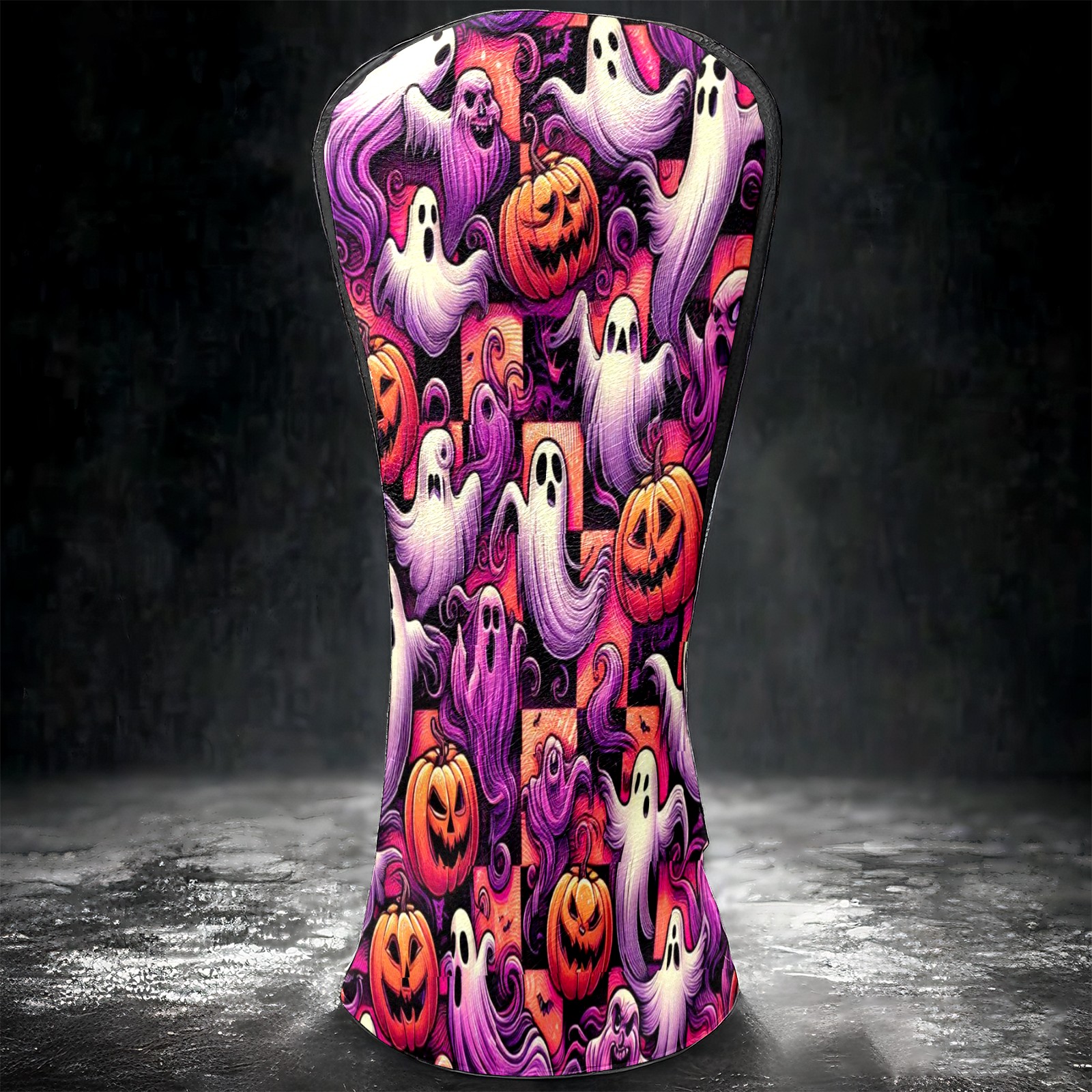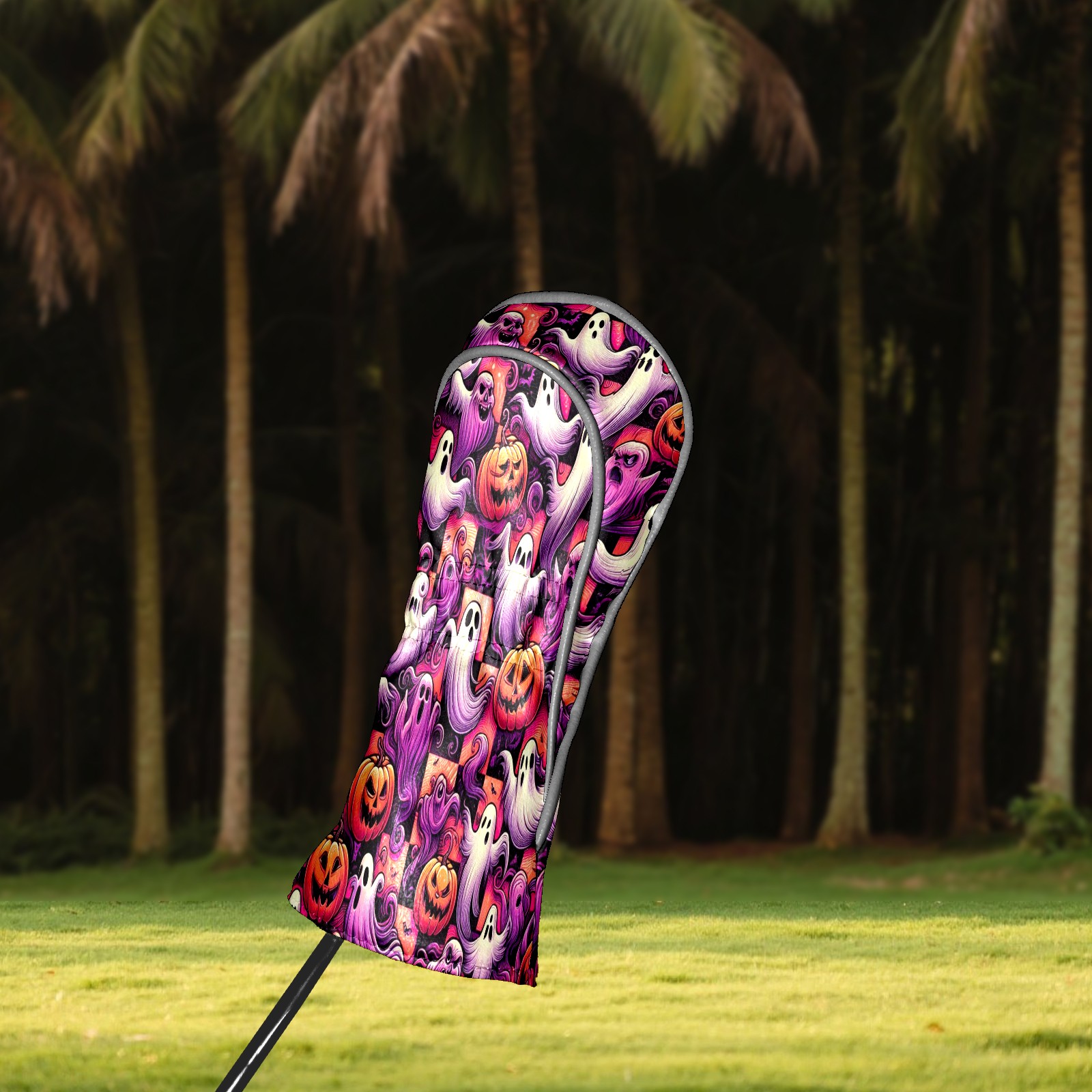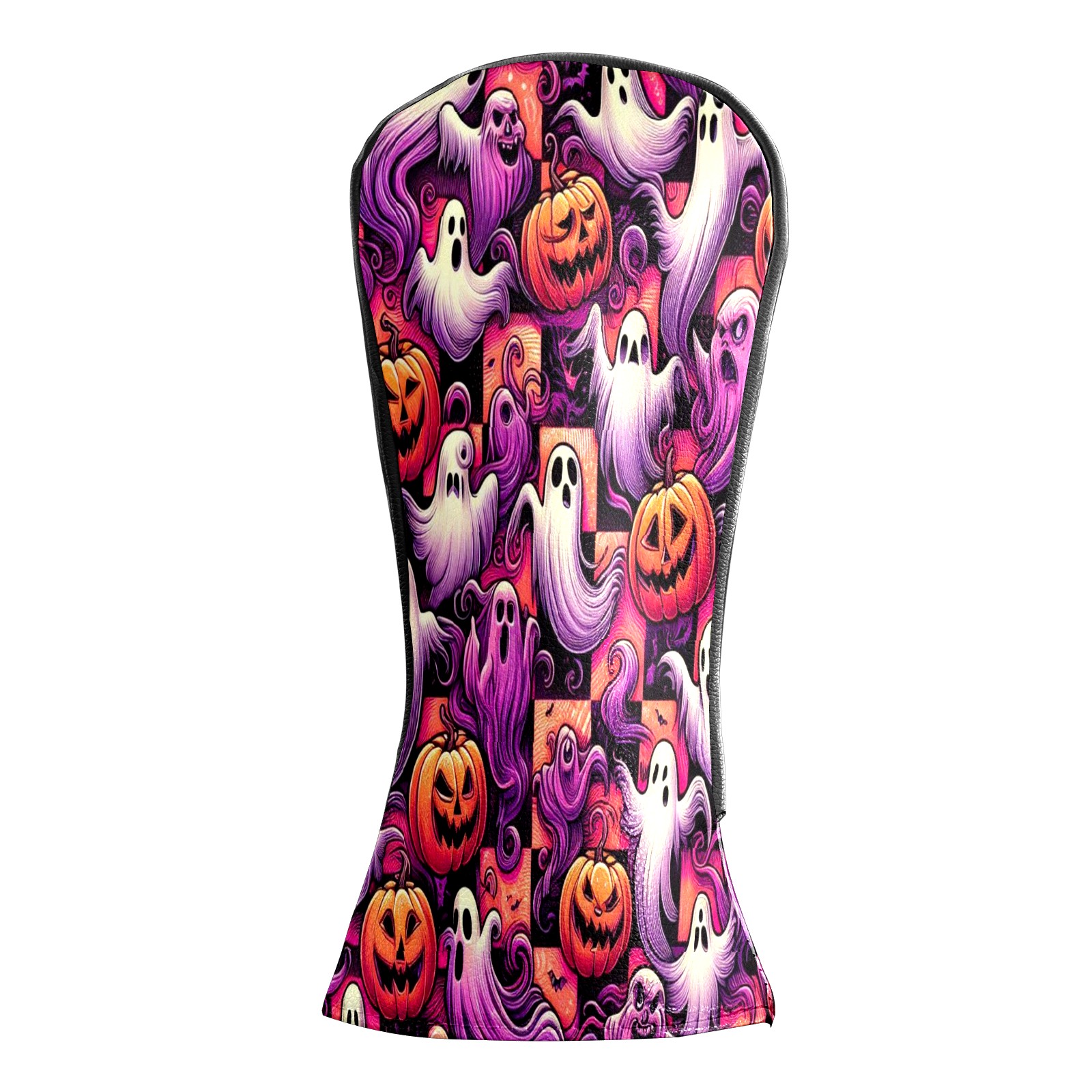 Golf Club Head Covers Purple Pumpkin Halloween Design for Driver & Hybrid, Waterproof PU Leather with Plush Velvet Lining, Scratch Protection & Secure Fit, Ideal Golf Gift for Men Women