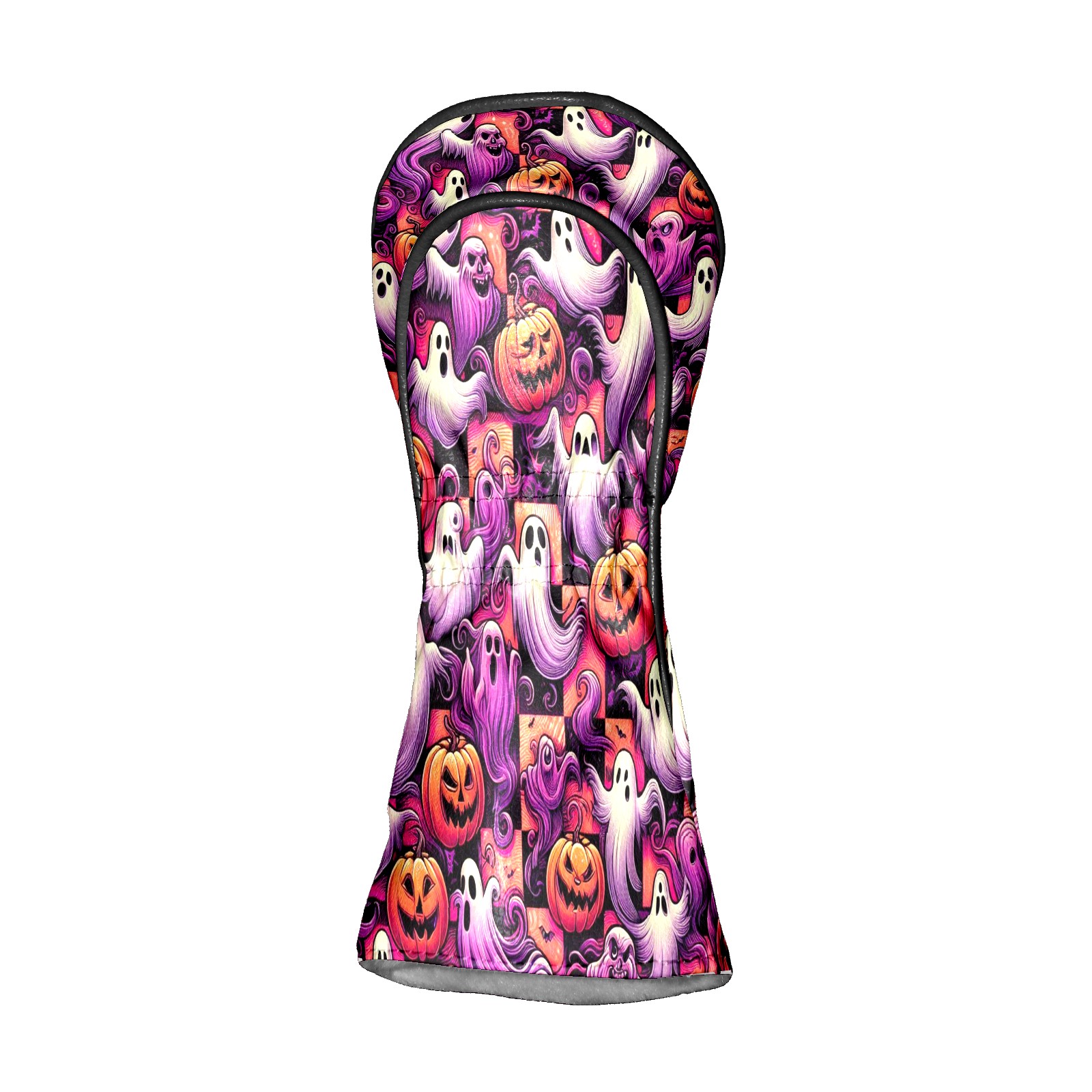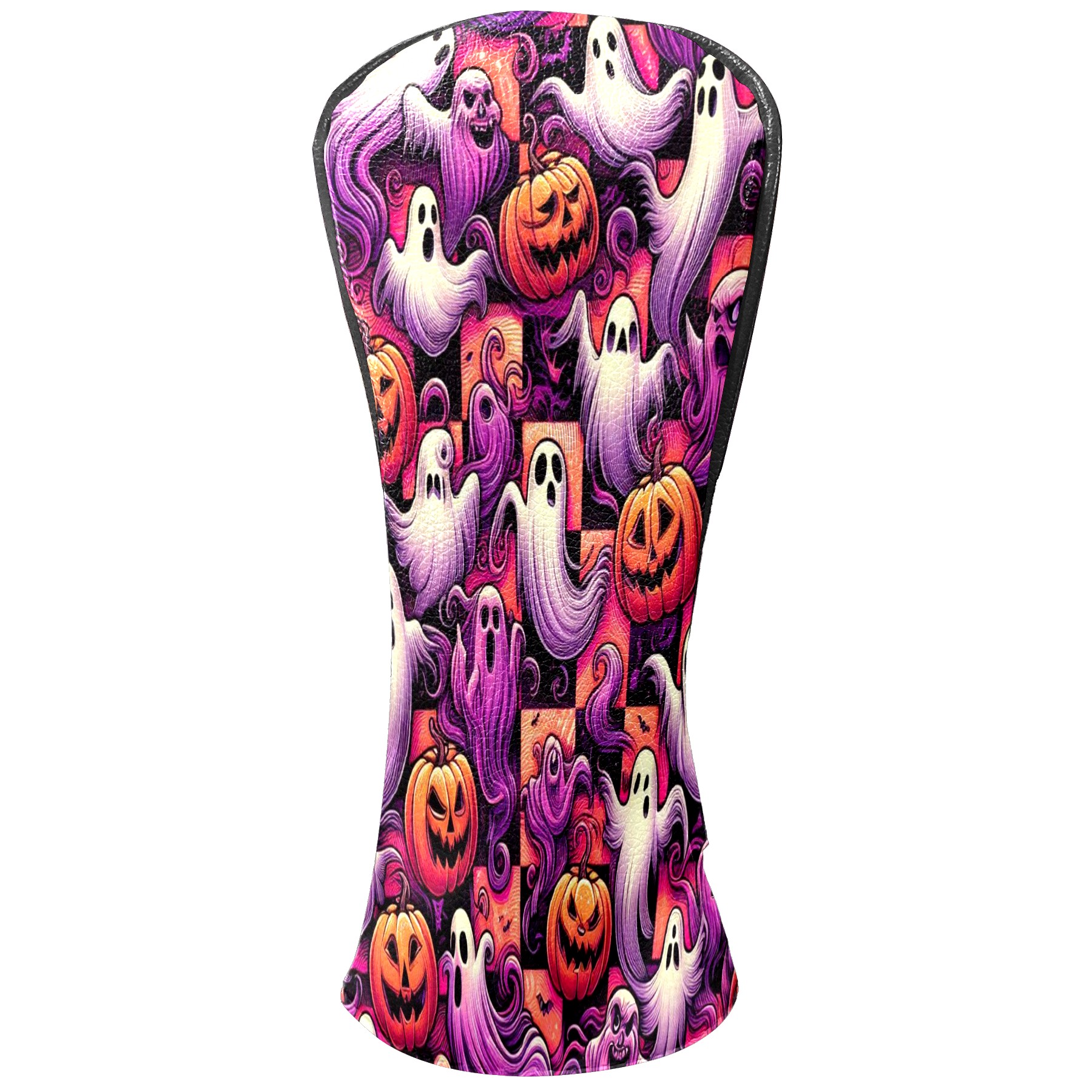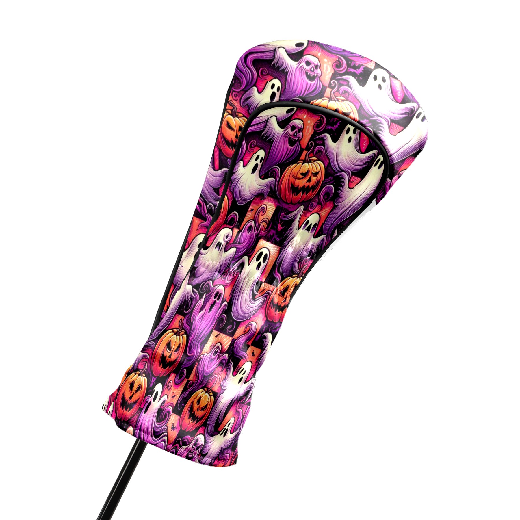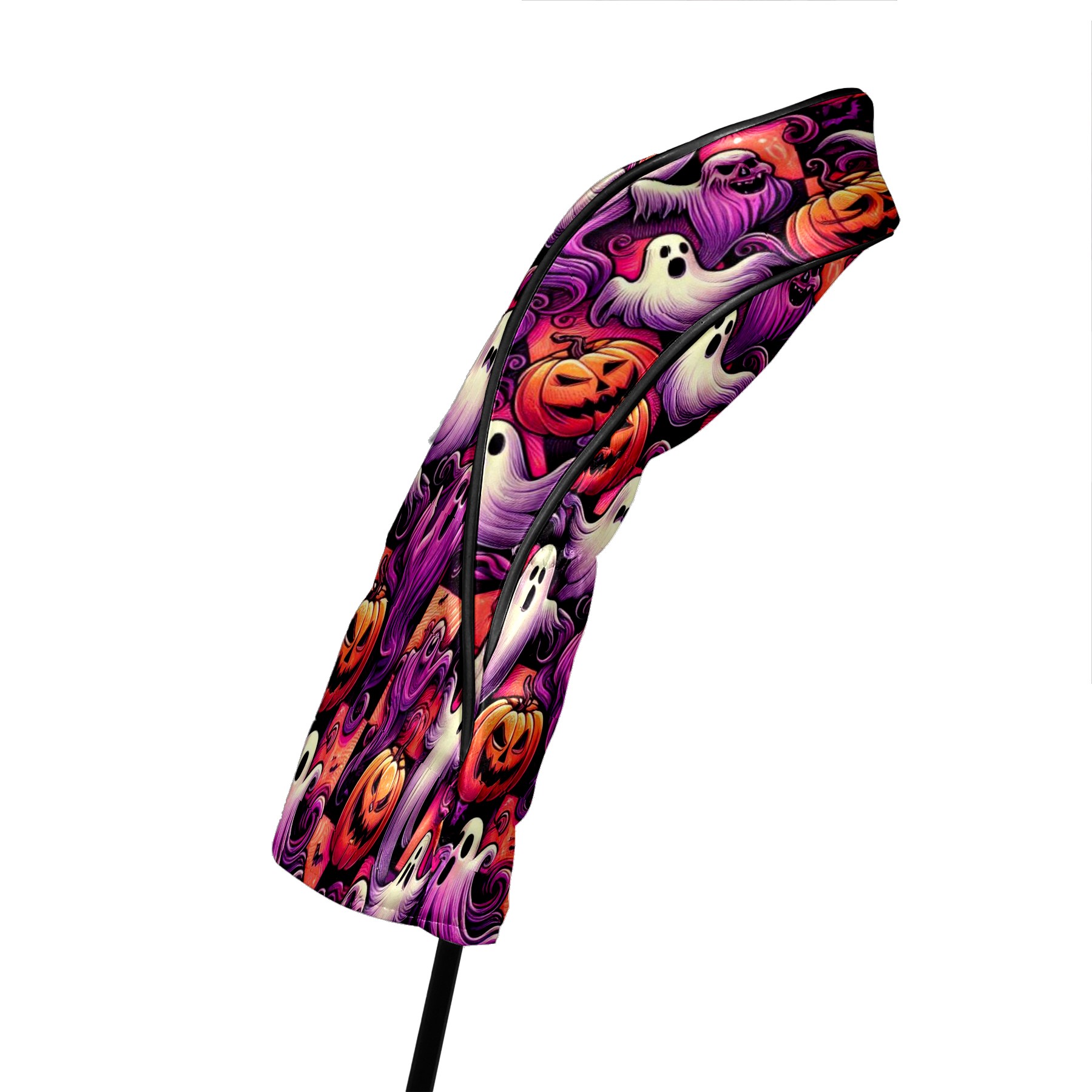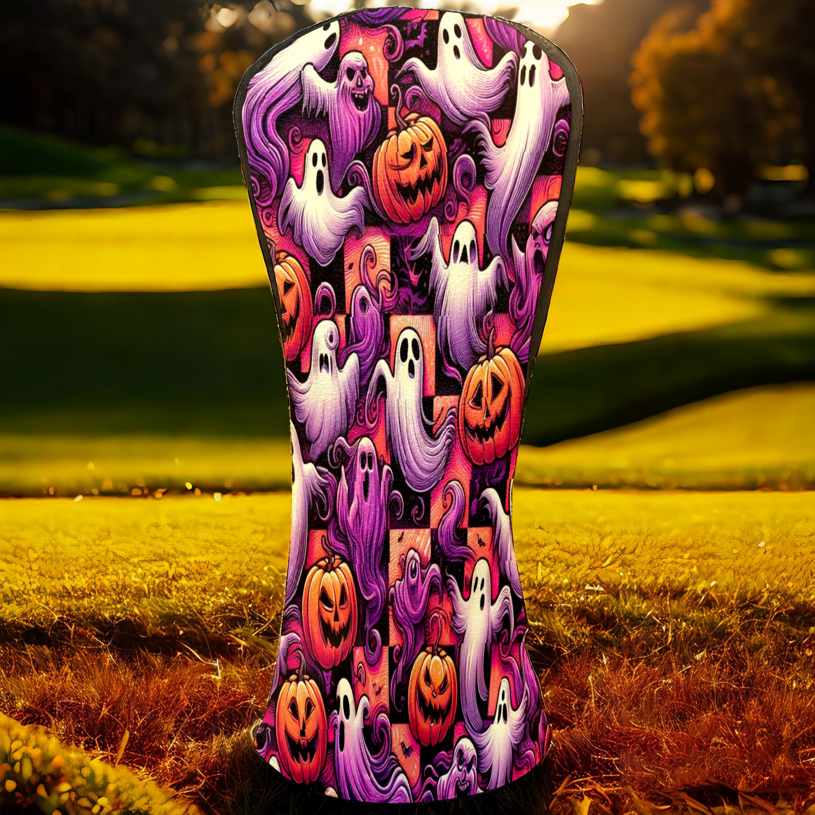 Golf Club Head Covers Purple Pumpkin Halloween Design for Driver & Hybrid, Waterproof PU Leather with Plush Velvet Lining, Scratch Protection & Secure Fit, Ideal Golf Gift for Men Women