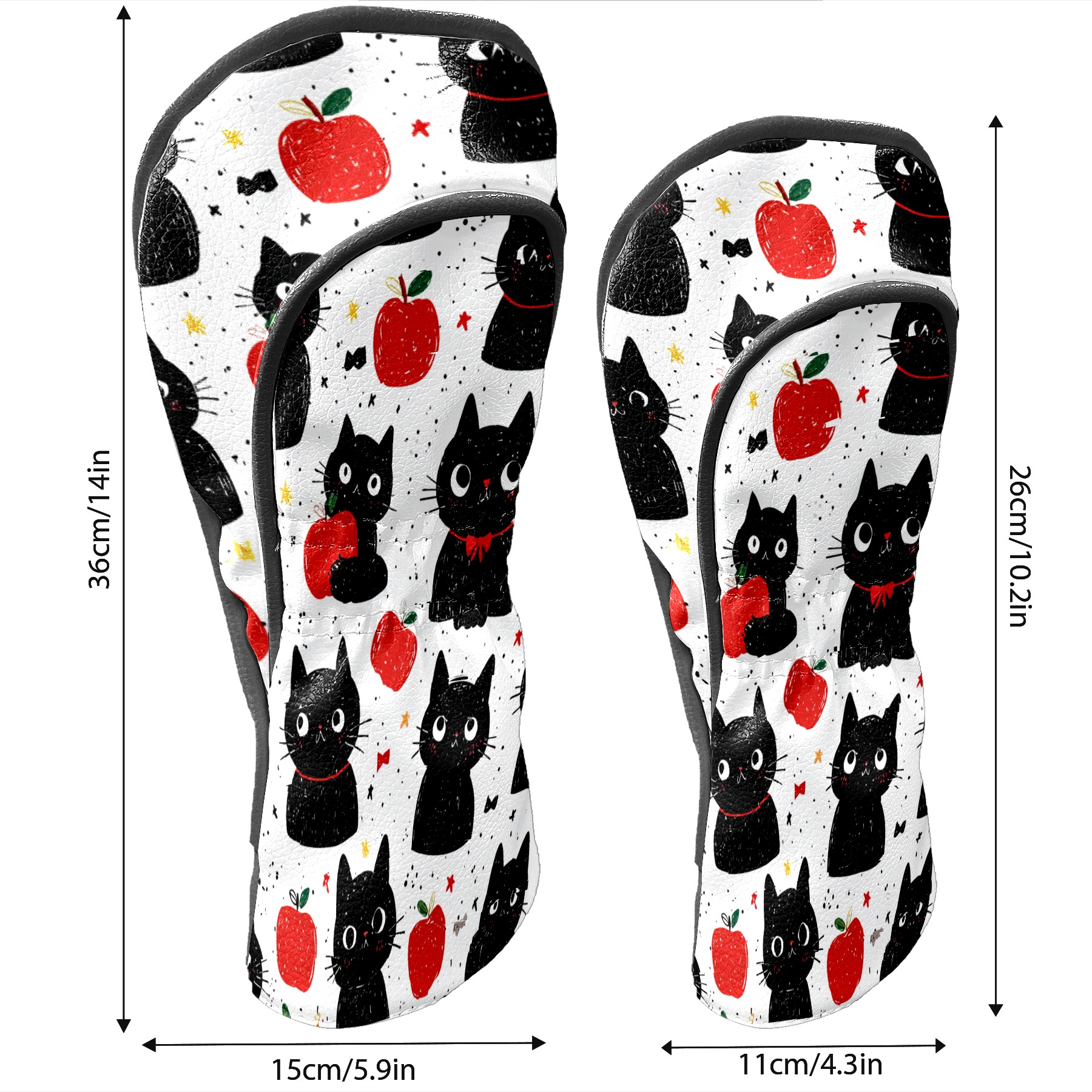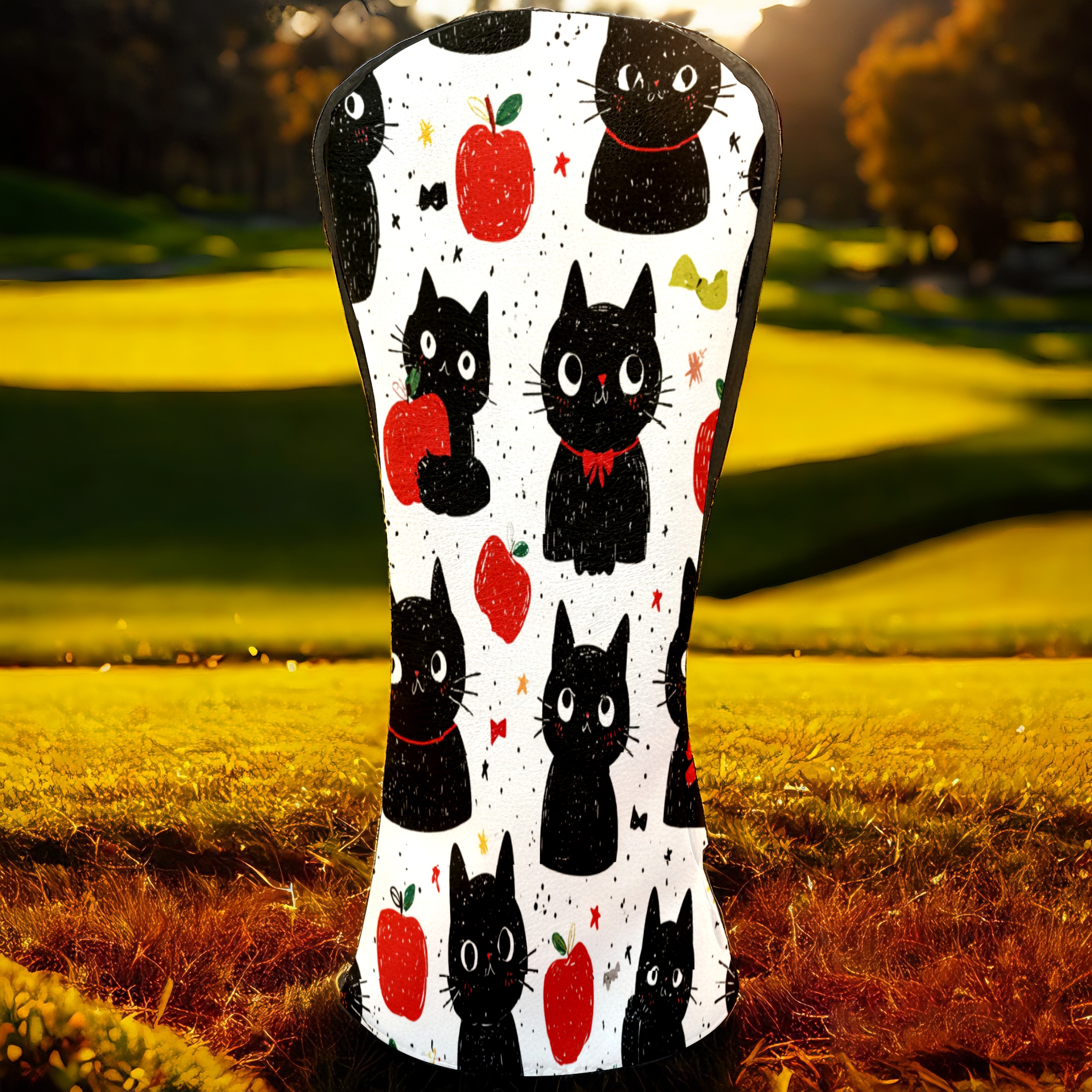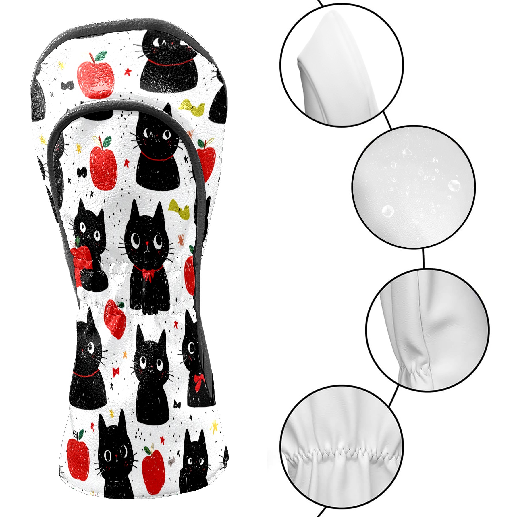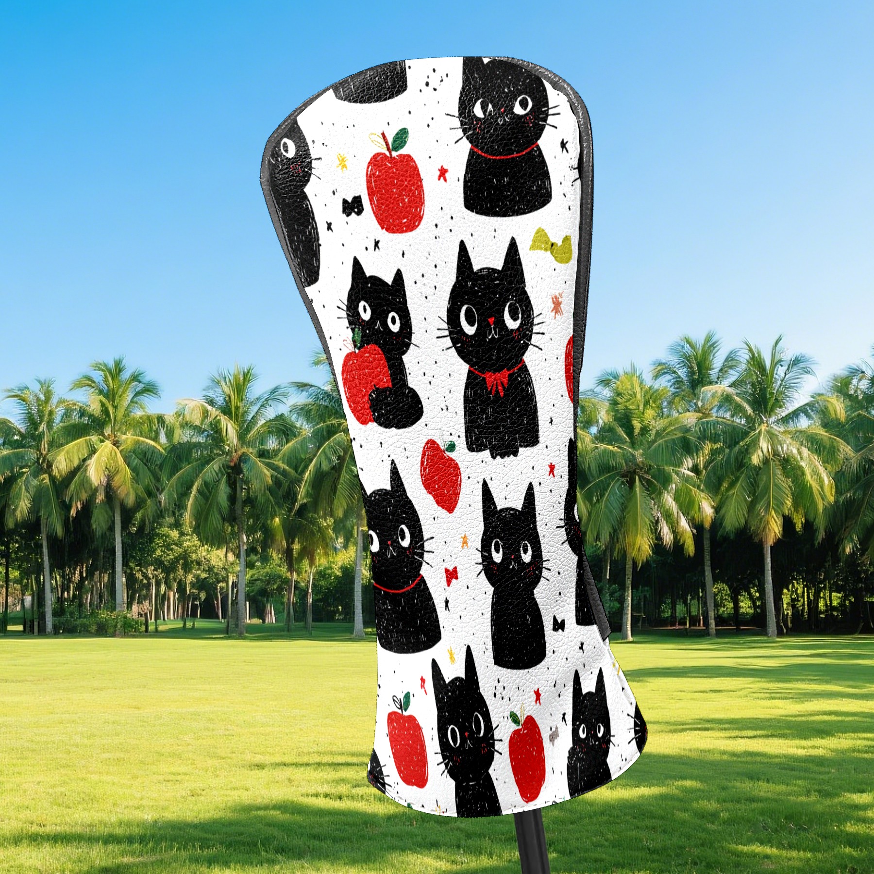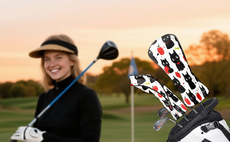 Golf Club Head Covers Black Cats Red Apples Design for Driver & Hybrid, Waterproof PU Leather with Plush Velvet Lining, Scratch Protection & Secure Fit, Ideal Golf Gift for Men Women