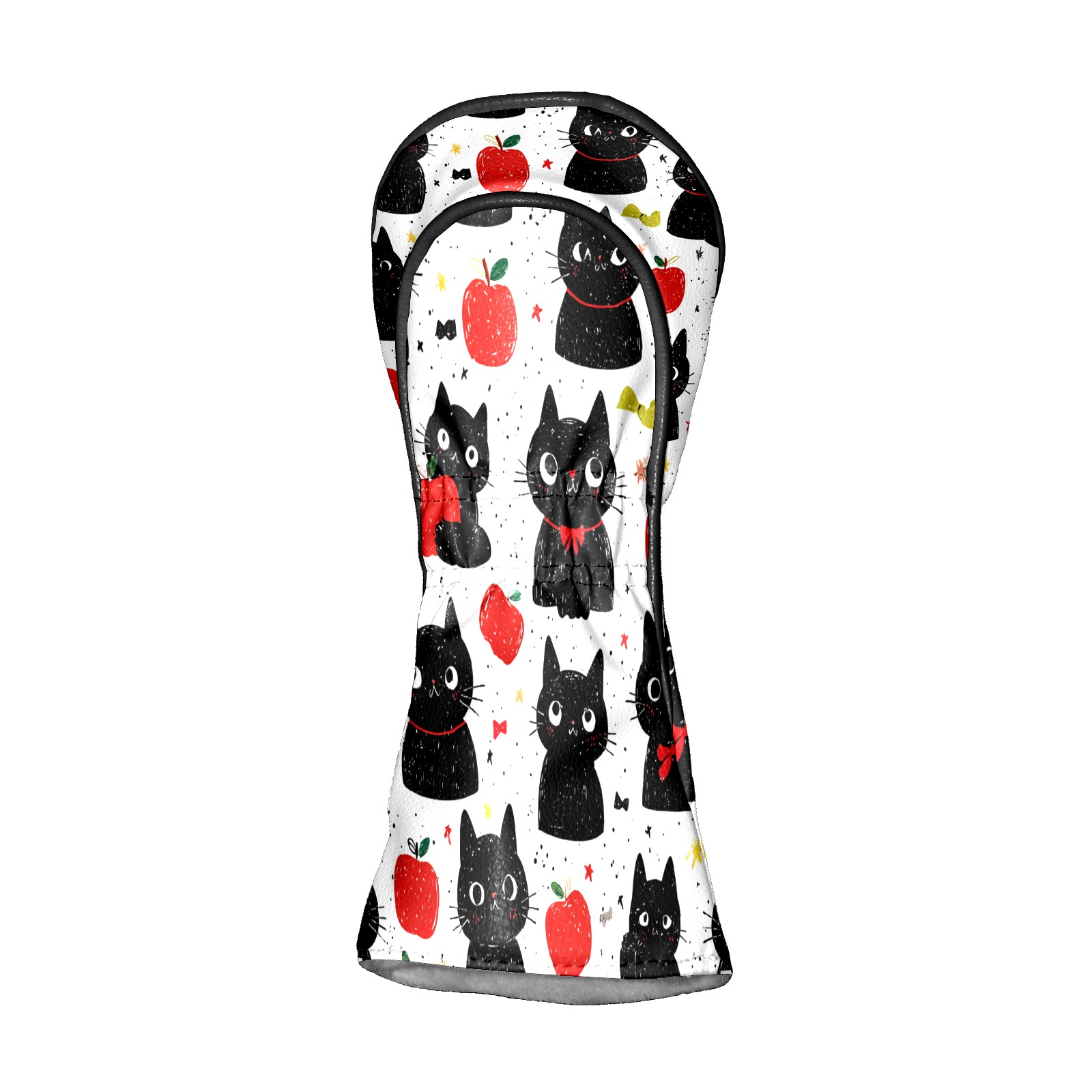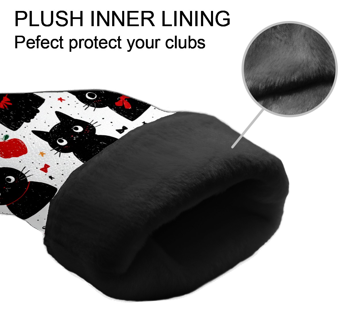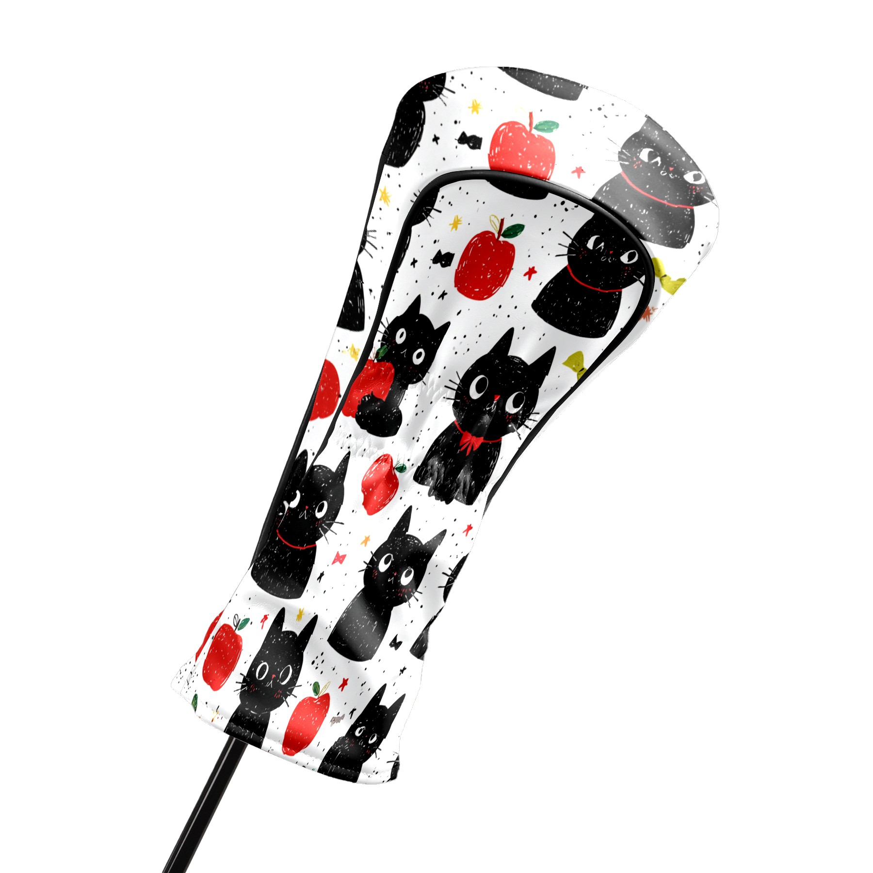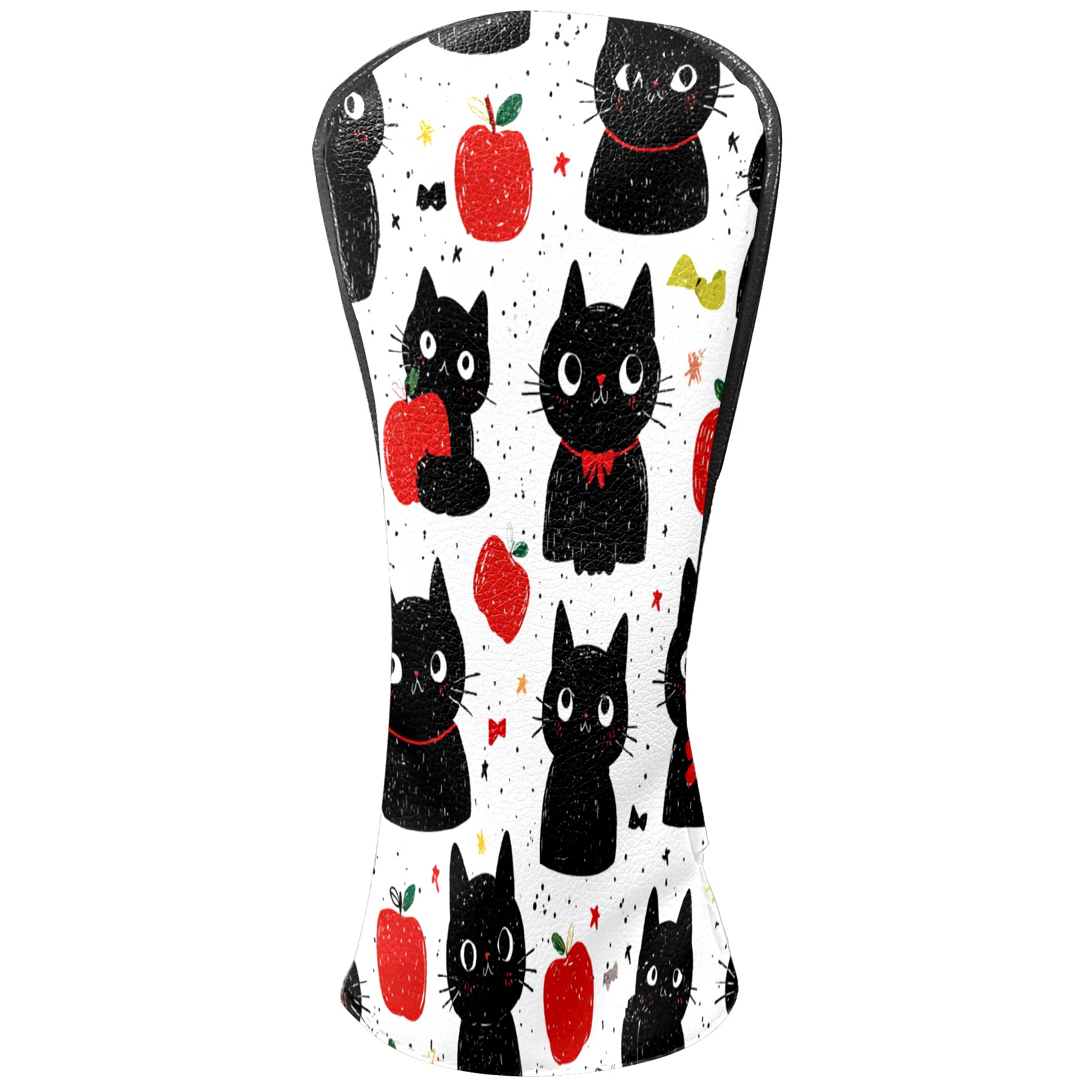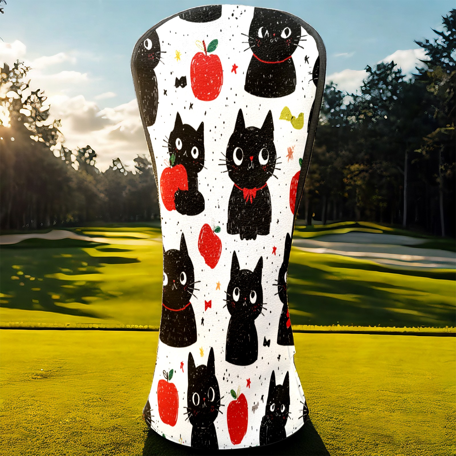 Golf Club Head Covers Black Cats Red Apples Design for Driver & Hybrid, Waterproof PU Leather with Plush Velvet Lining, Scratch Protection & Secure Fit, Ideal Golf Gift for Men Women
