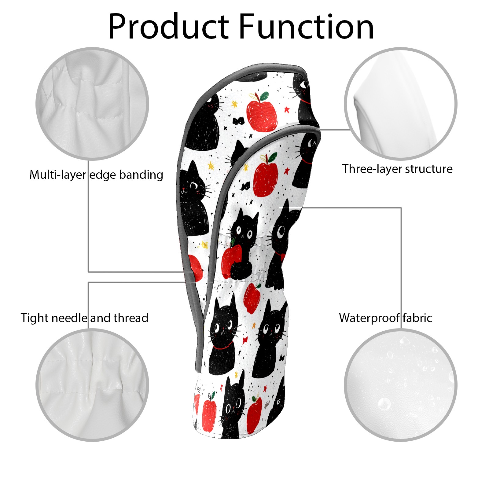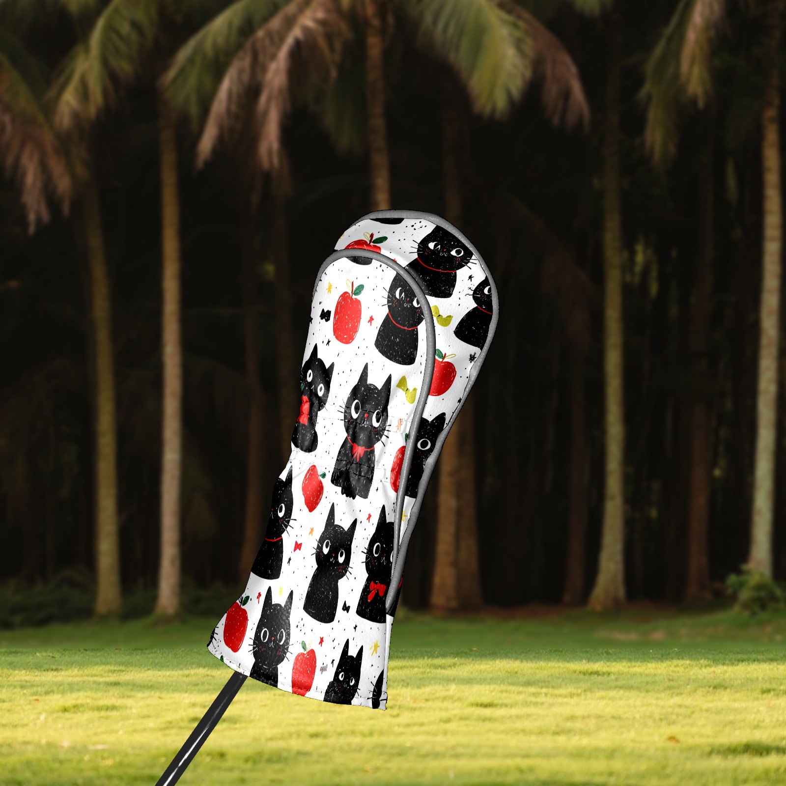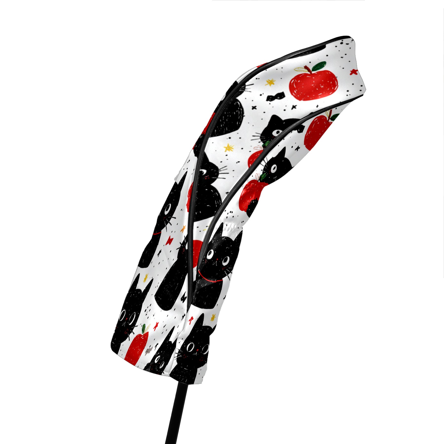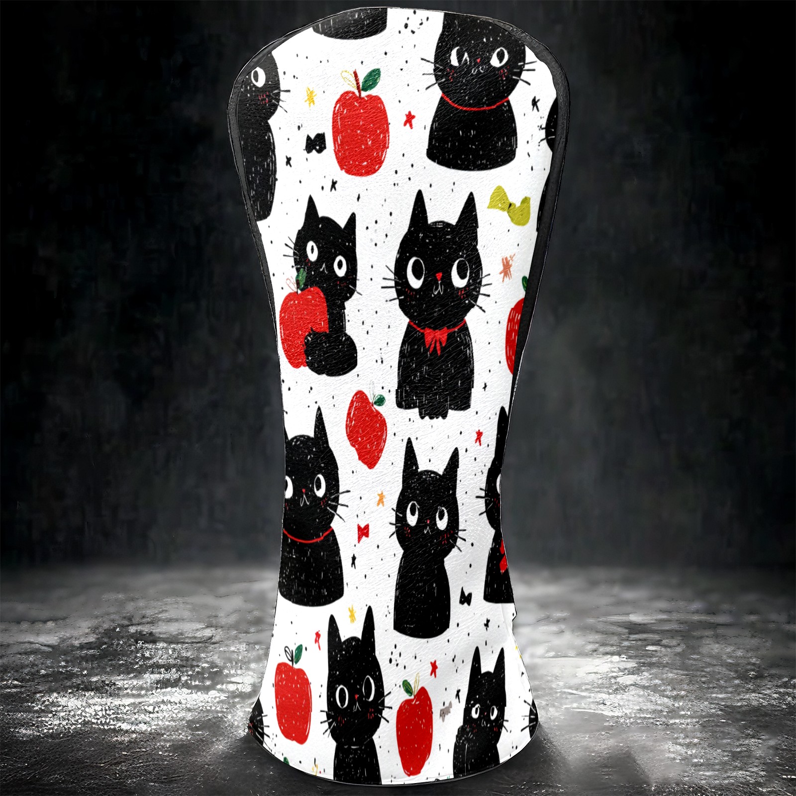 Golf Club Head Covers Black Cats Red Apples Design for Driver & Hybrid, Waterproof PU Leather with Plush Velvet Lining, Scratch Protection & Secure Fit, Ideal Golf Gift for Men Women