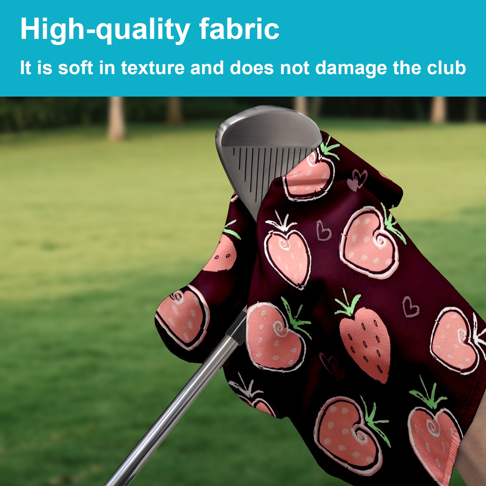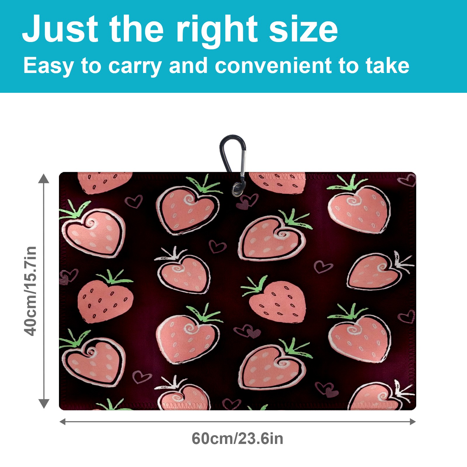 Golf Towel with Buckle Clip, Club Cleaning Cloth is Highly Absorbent and Dries Quickly for Use on Court Sports Towels Hand Drawn Strawberry Pattern