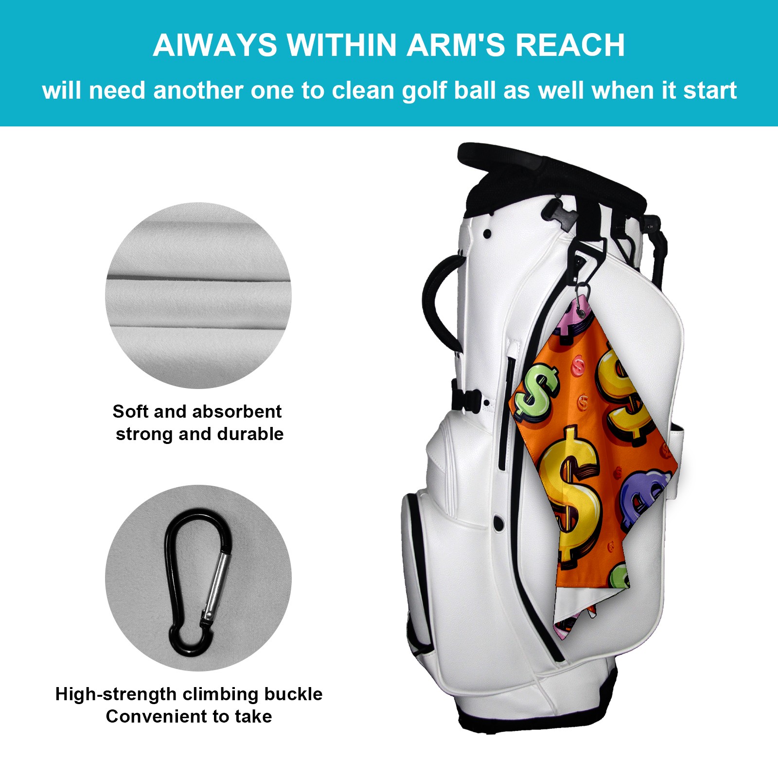 Golf Towel with Buckle Clip, Club Cleaning Cloth is Highly Absorbent and Dries Quickly for Use on Court Sports Towels Dollar Pattern