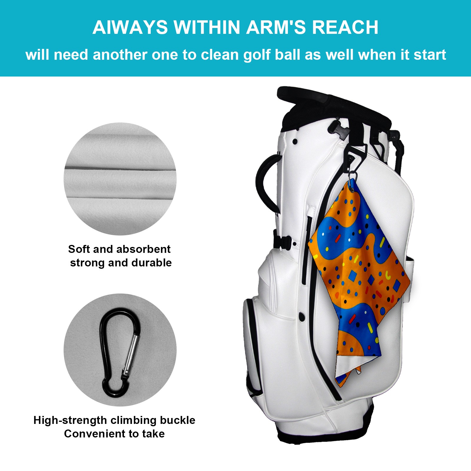 <p>This golf towel is a magical tool for cleaning the golf course, combining practicality and convenience. The golden size of 40cm×60cm (16inx24cm) is light and does not take up space, and can be easily stored in a golf bag. It is made of lightweight and durable material, with high water absorption and quick drying properties, which can quickly absorb water stains and say goodbye to the trouble of damp odor. The unique multi-functional buckle clip design can be fixed to the golf bag or waistband at will, and can be used whenever you want. Whether it is cleaning clubs, wiping sweat, or taking care of golf balls, it can easily do the job. As a gift for holidays, birthdays, and anniversaries, it is given to family and friends who love golf. It is practical and considerate, and it is a must-have golf item that men, women, young and old can't put down.</p>