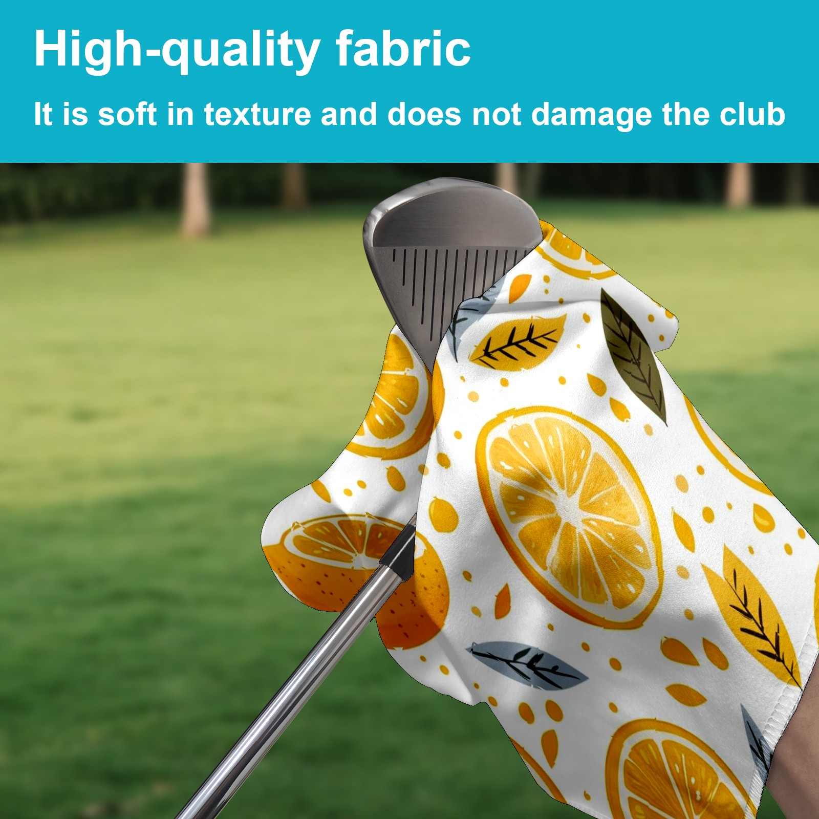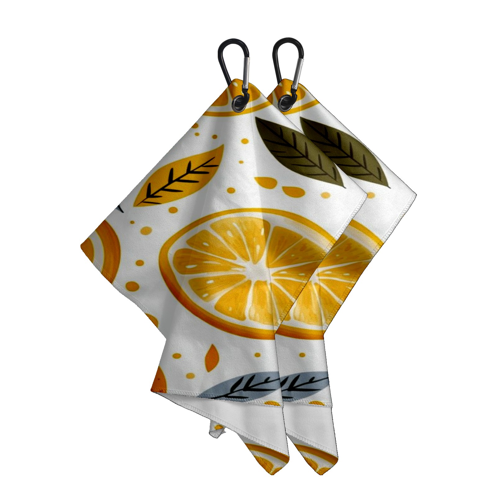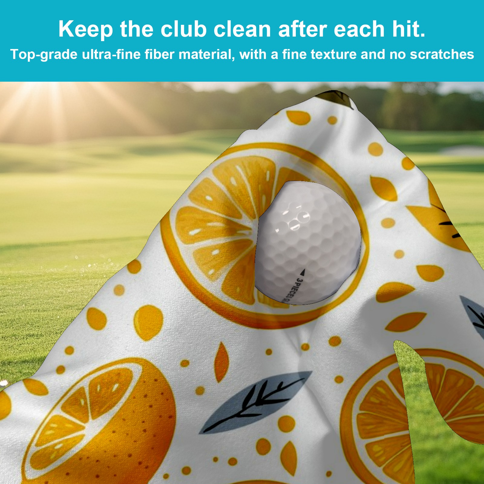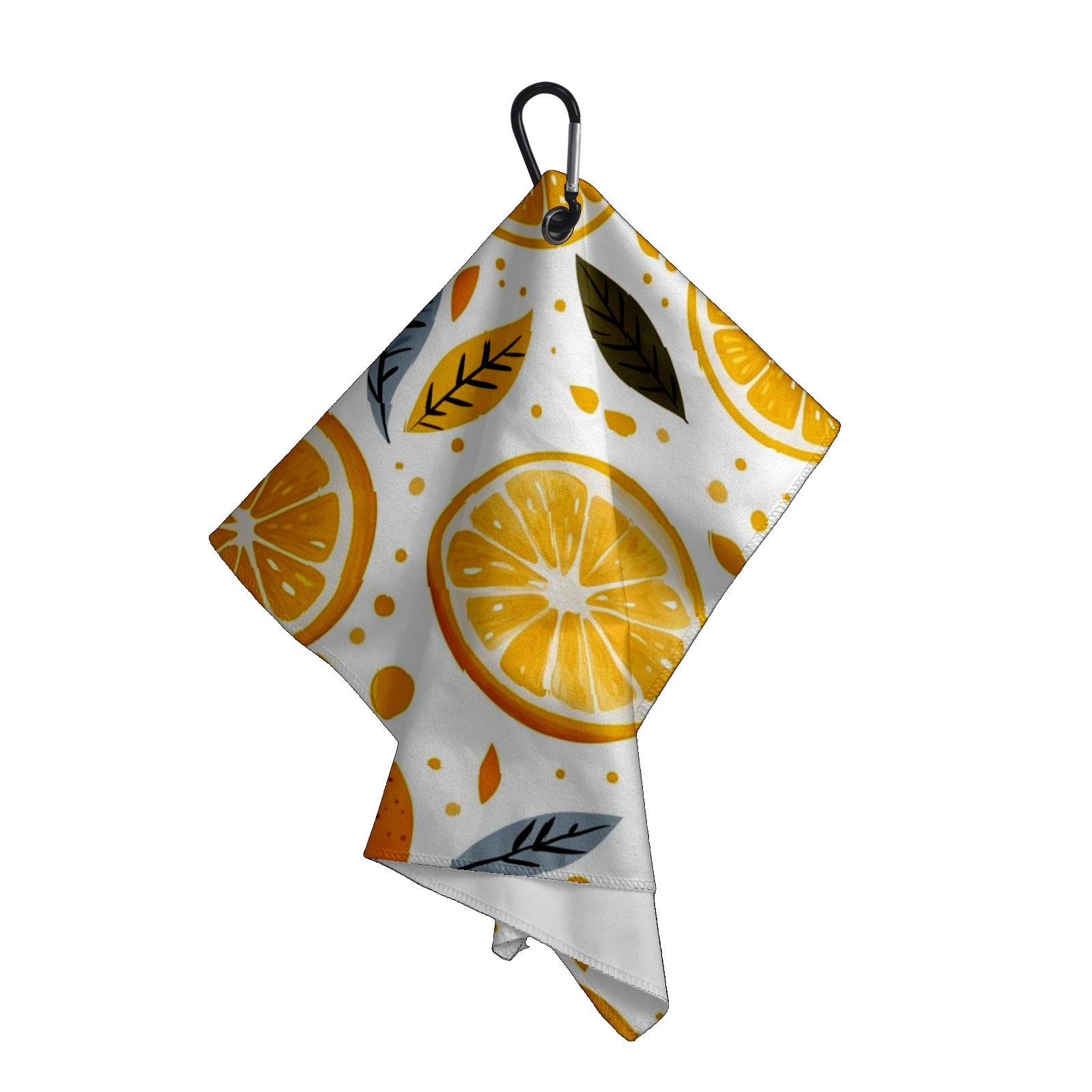 Golf Towel with Buckle Clip, Club Cleaning Cloth is Highly Absorbent and Dries Quickly for Use on Court Sports Towels Orange Pattern