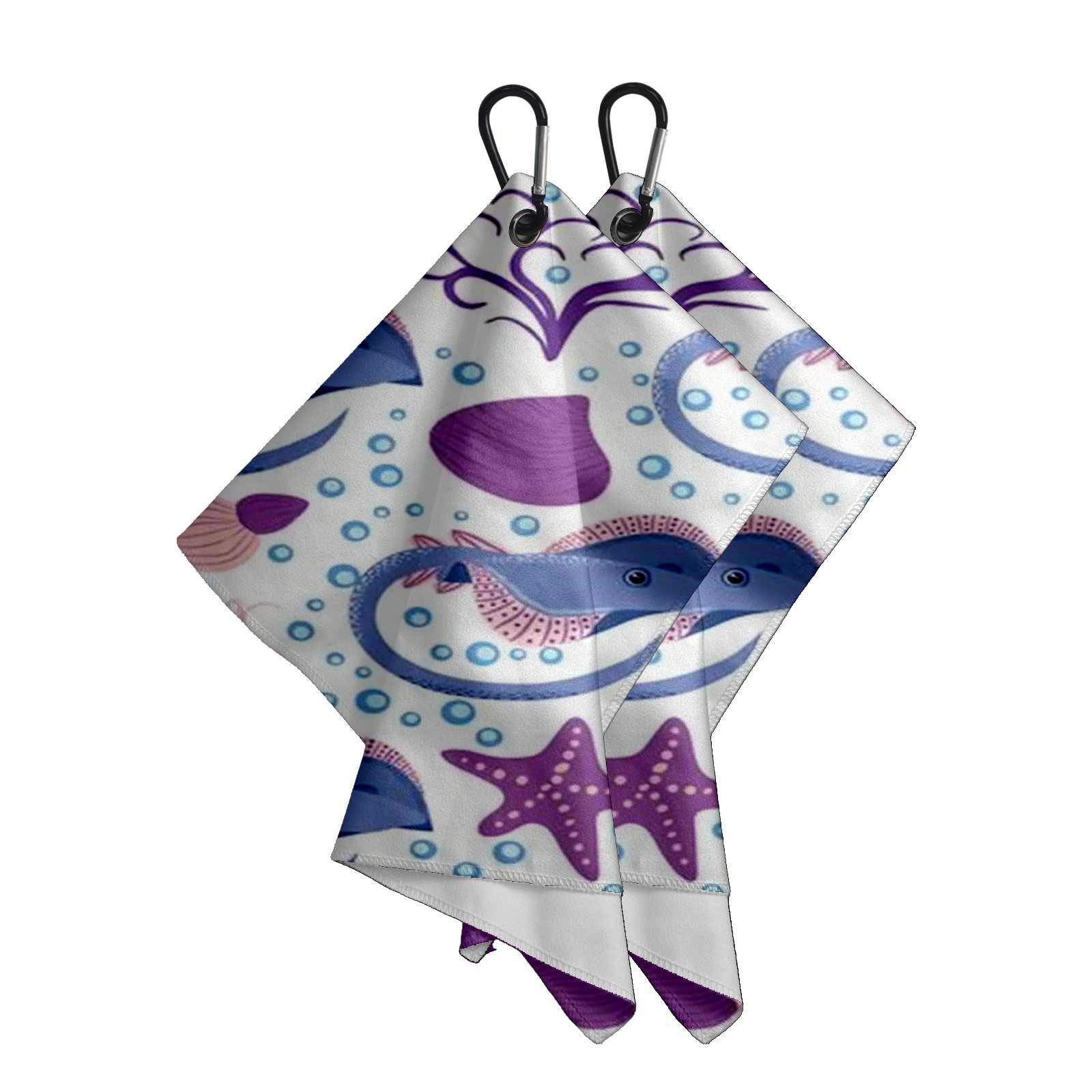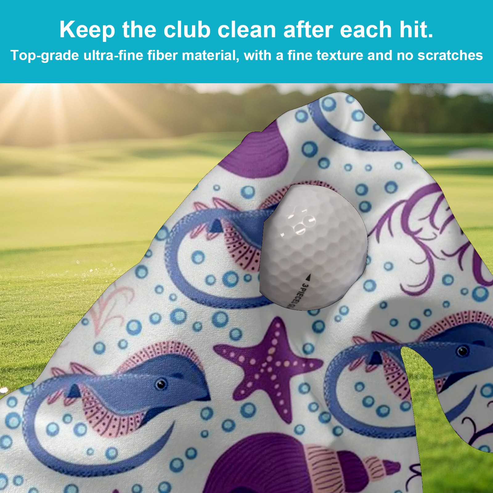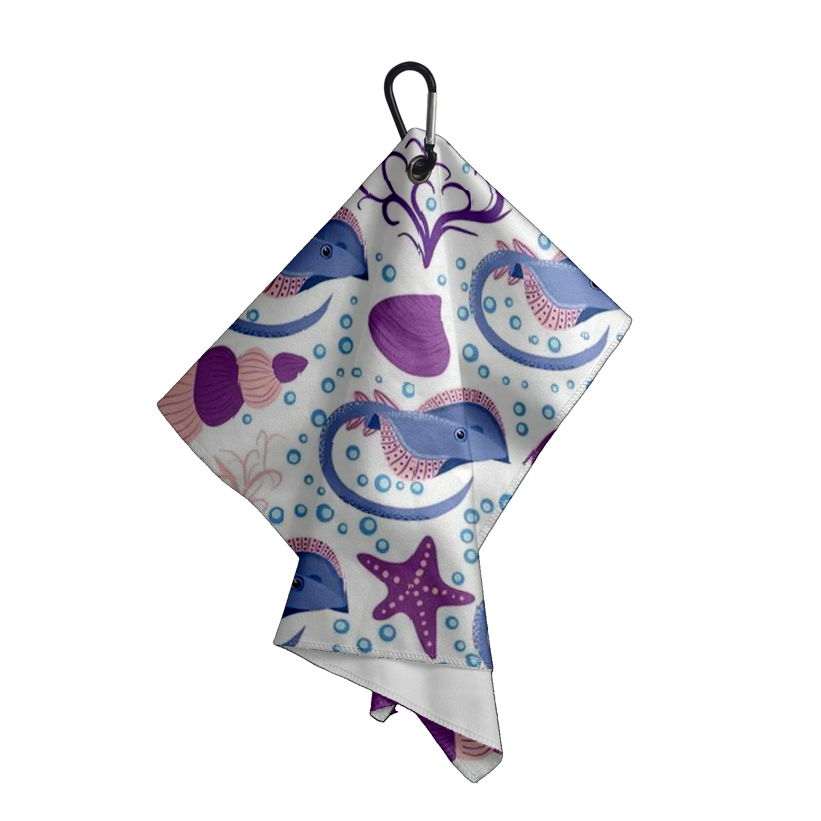 Golf Towel with Buckle Clip, Club Cleaning Cloth is Highly Absorbent and Dries Quickly for Use on Court Sports Towels Marine Life