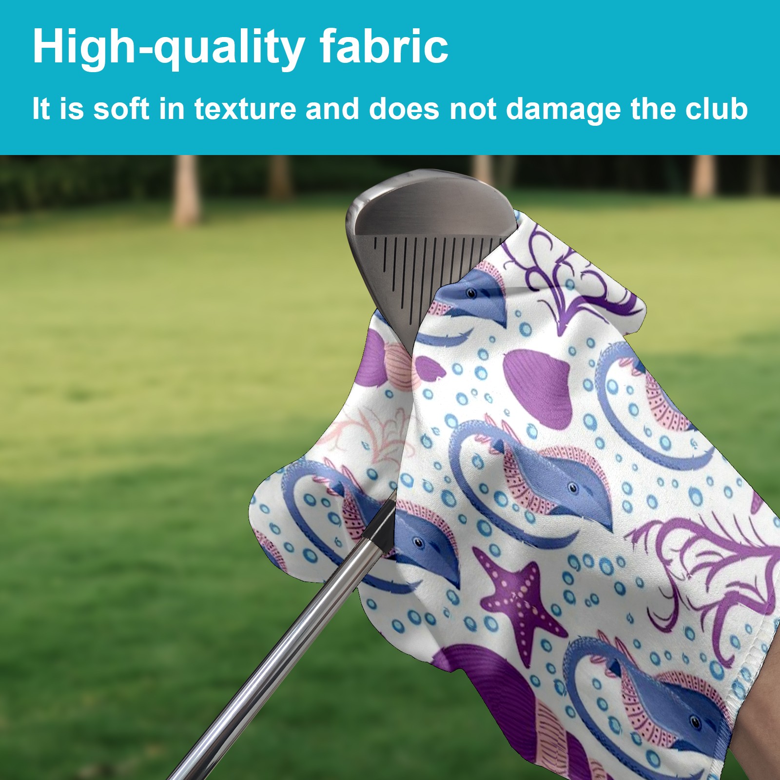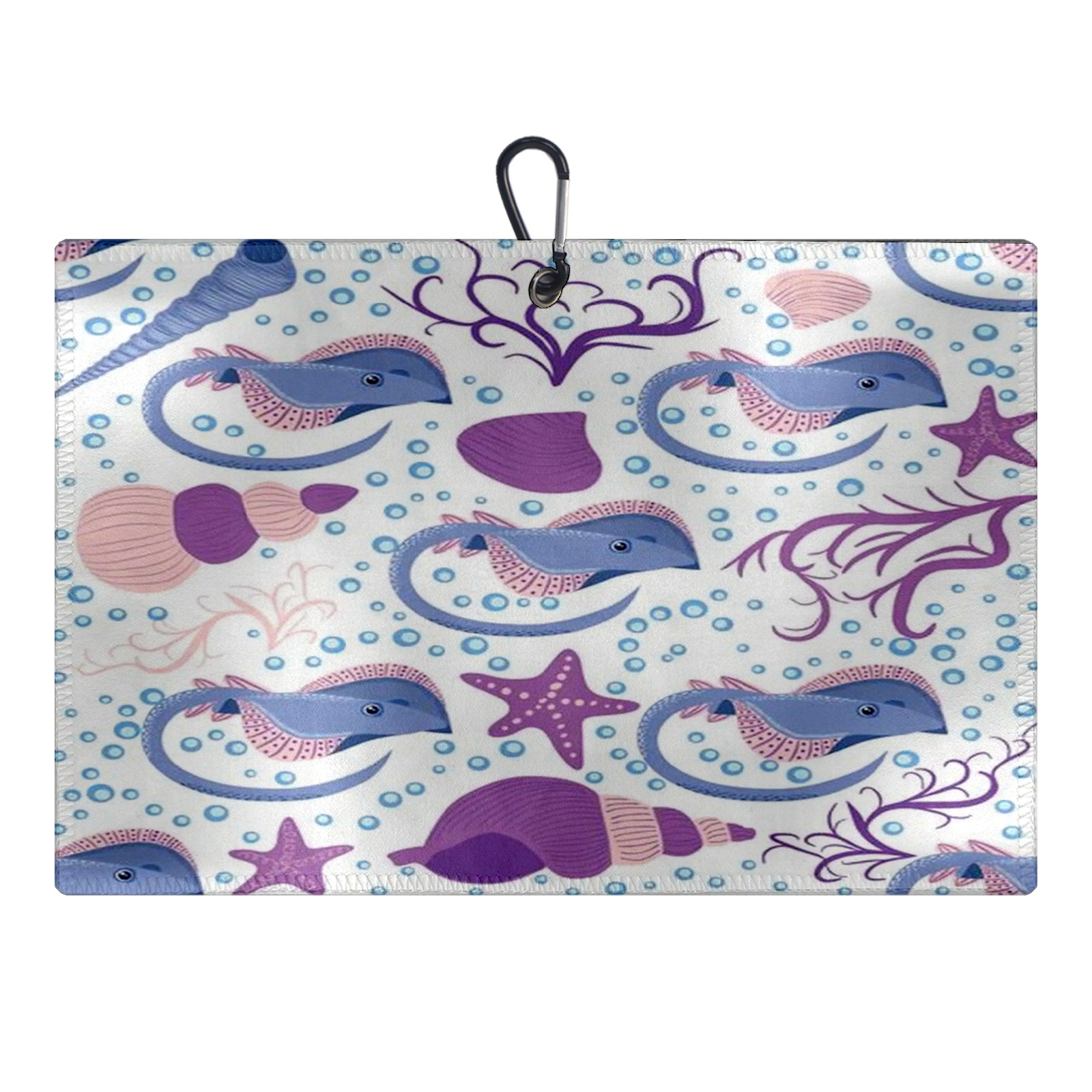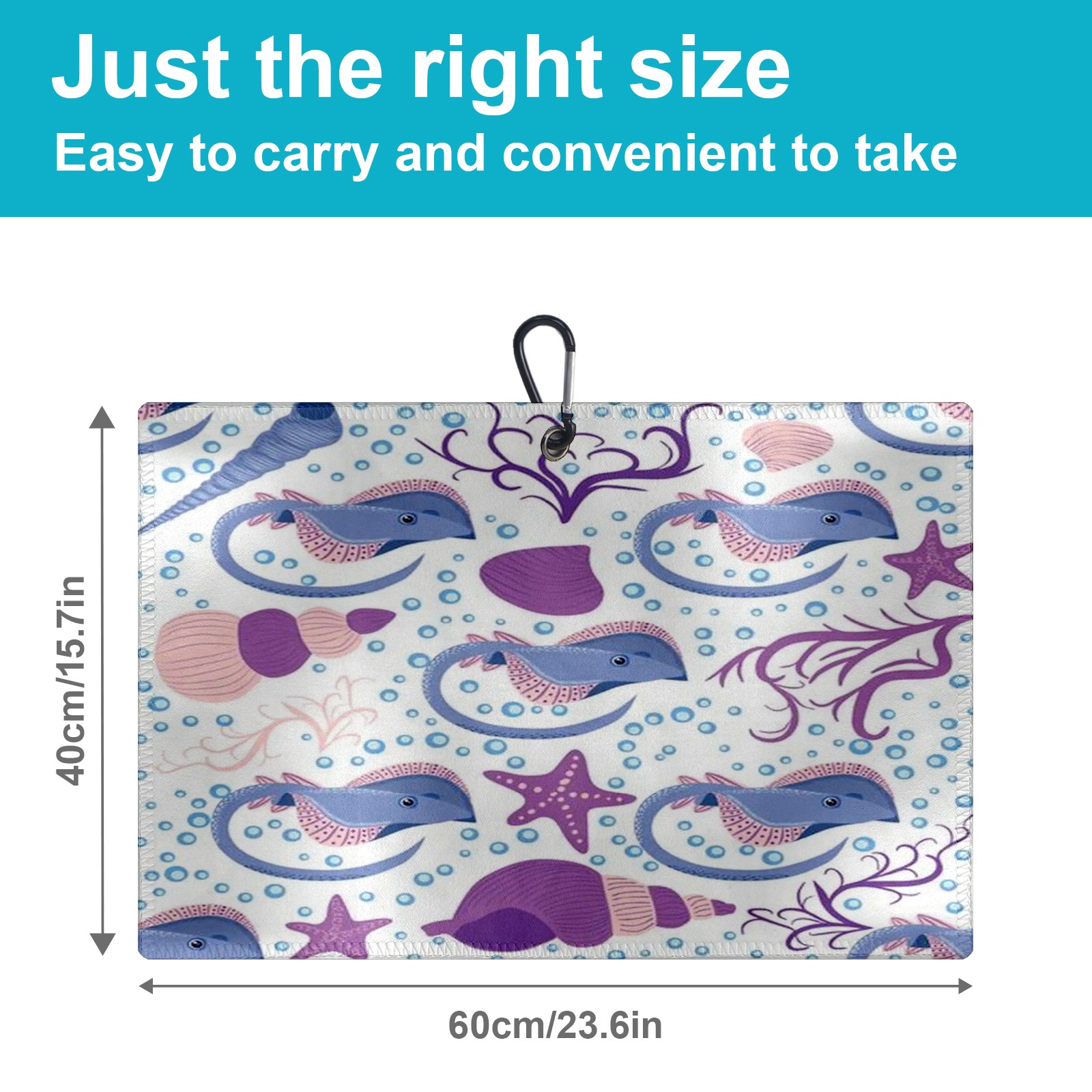 Golf Towel with Buckle Clip, Club Cleaning Cloth is Highly Absorbent and Dries Quickly for Use on Court Sports Towels Marine Life