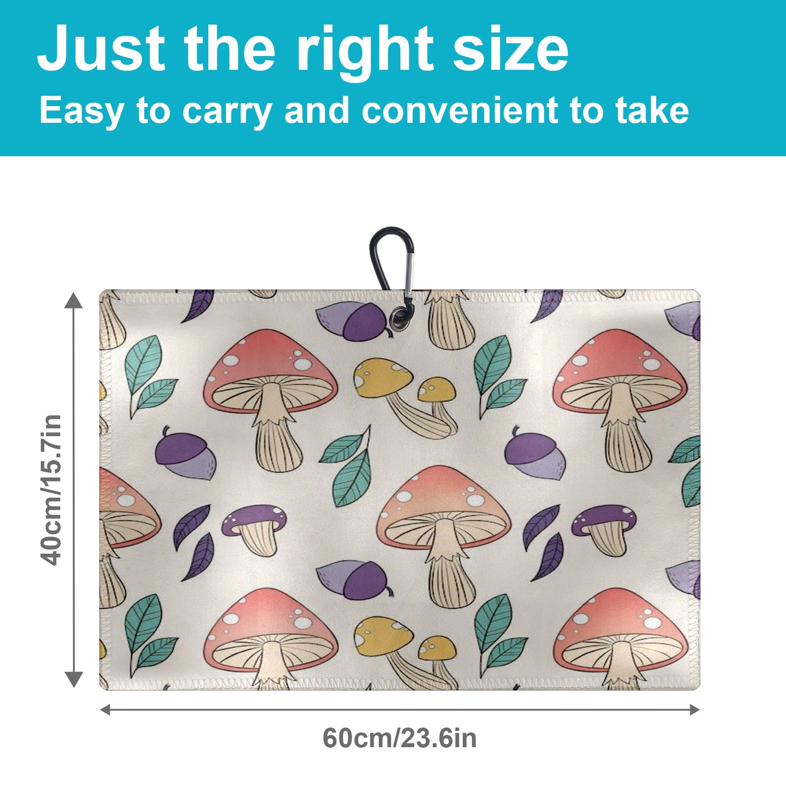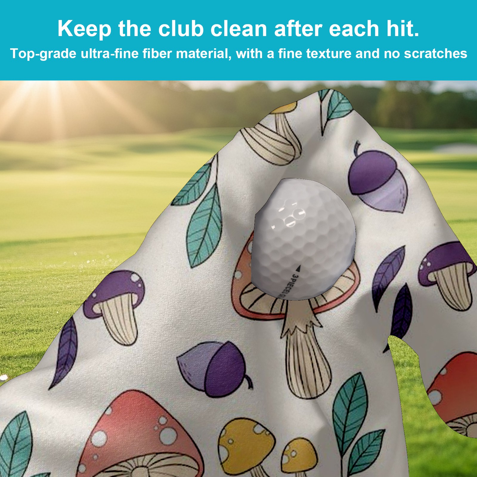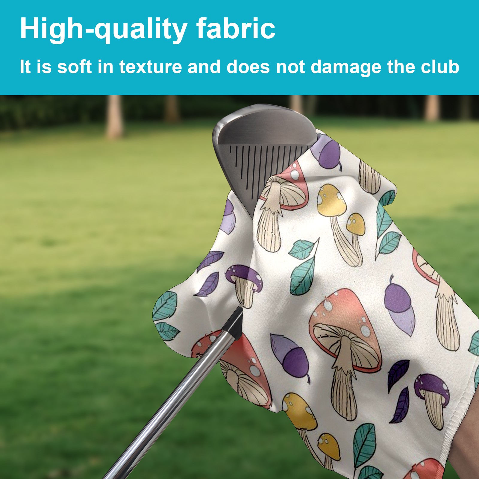 Golf Towel with Buckle Clip, Club Cleaning Cloth is Highly Absorbent and Dries Quickly for Use on Court Sports Towels Mushroom Print