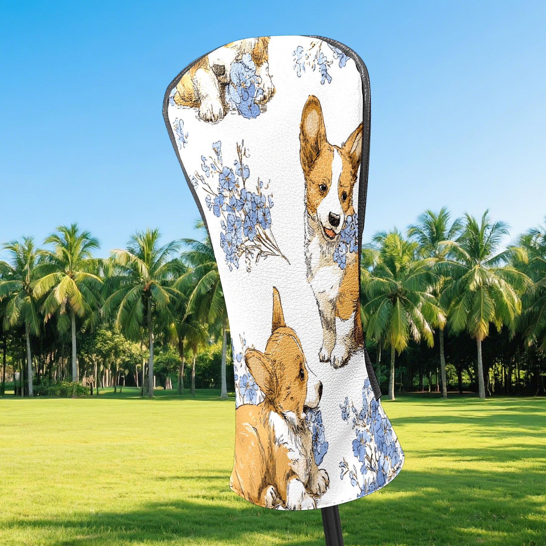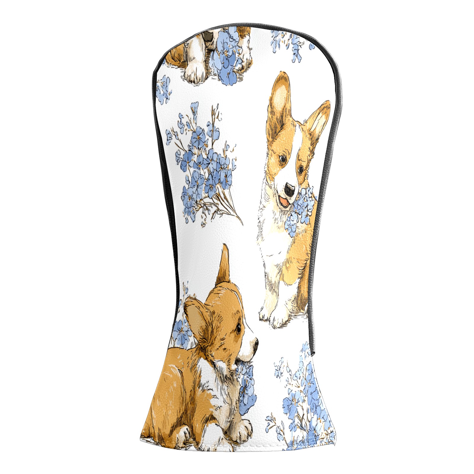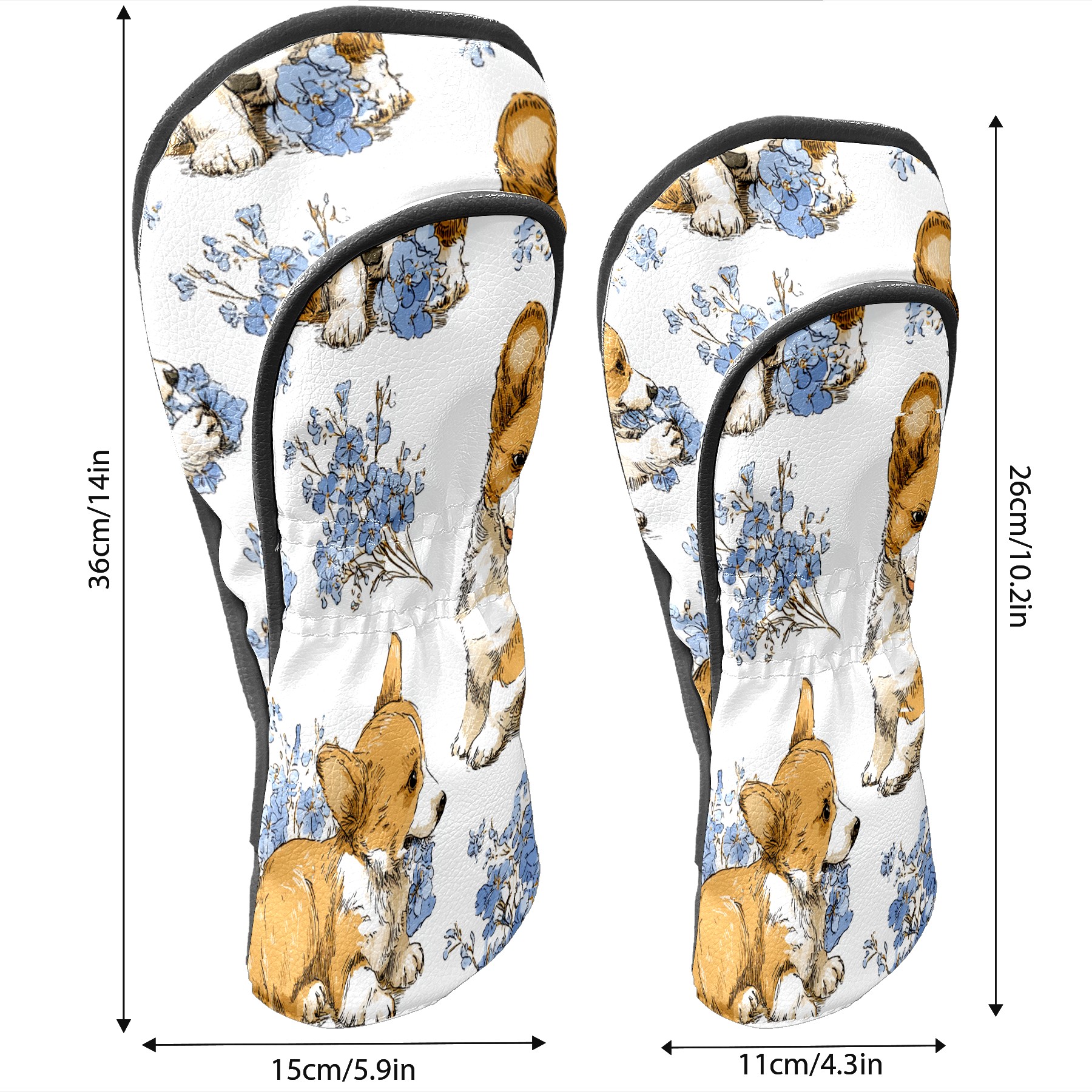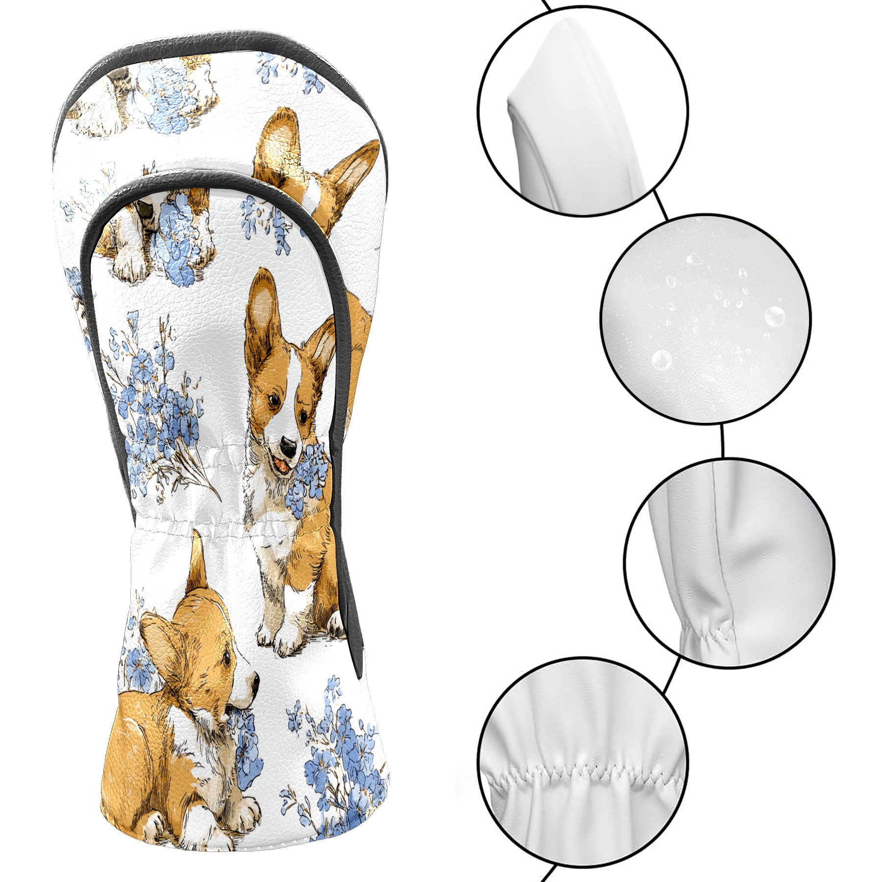 Golf Club Head Covers Brown Corgis Design for Driver & Hybrid, Waterproof PU Leather with Plush Velvet Lining, Scratch Protection & Secure Fit, Ideal Golf Gift for Men Women