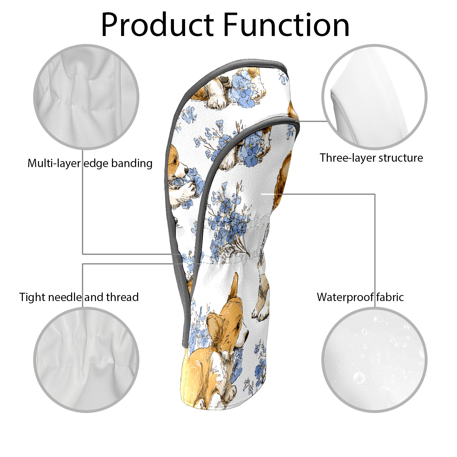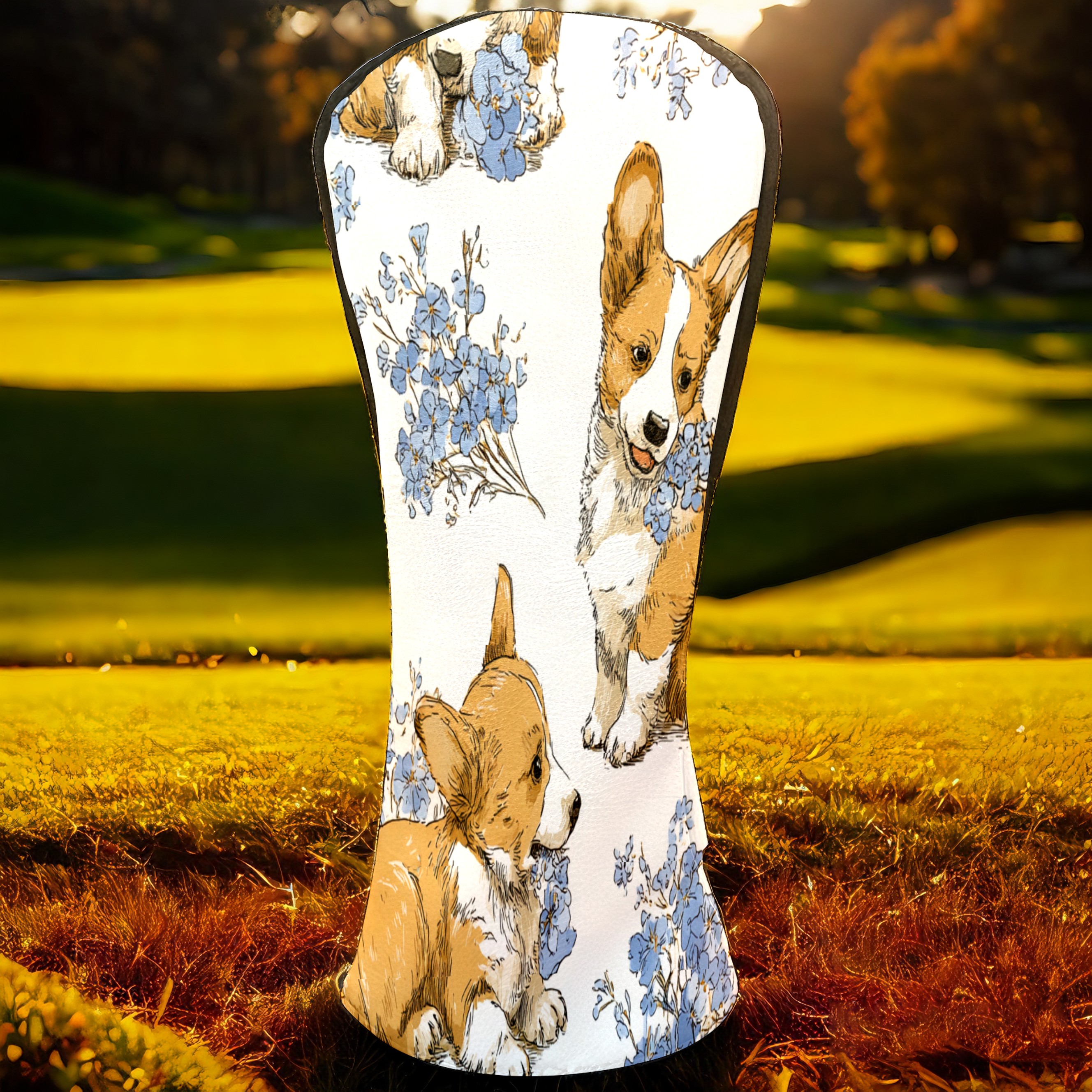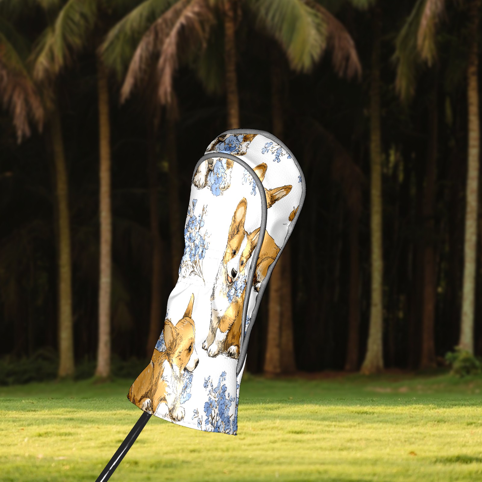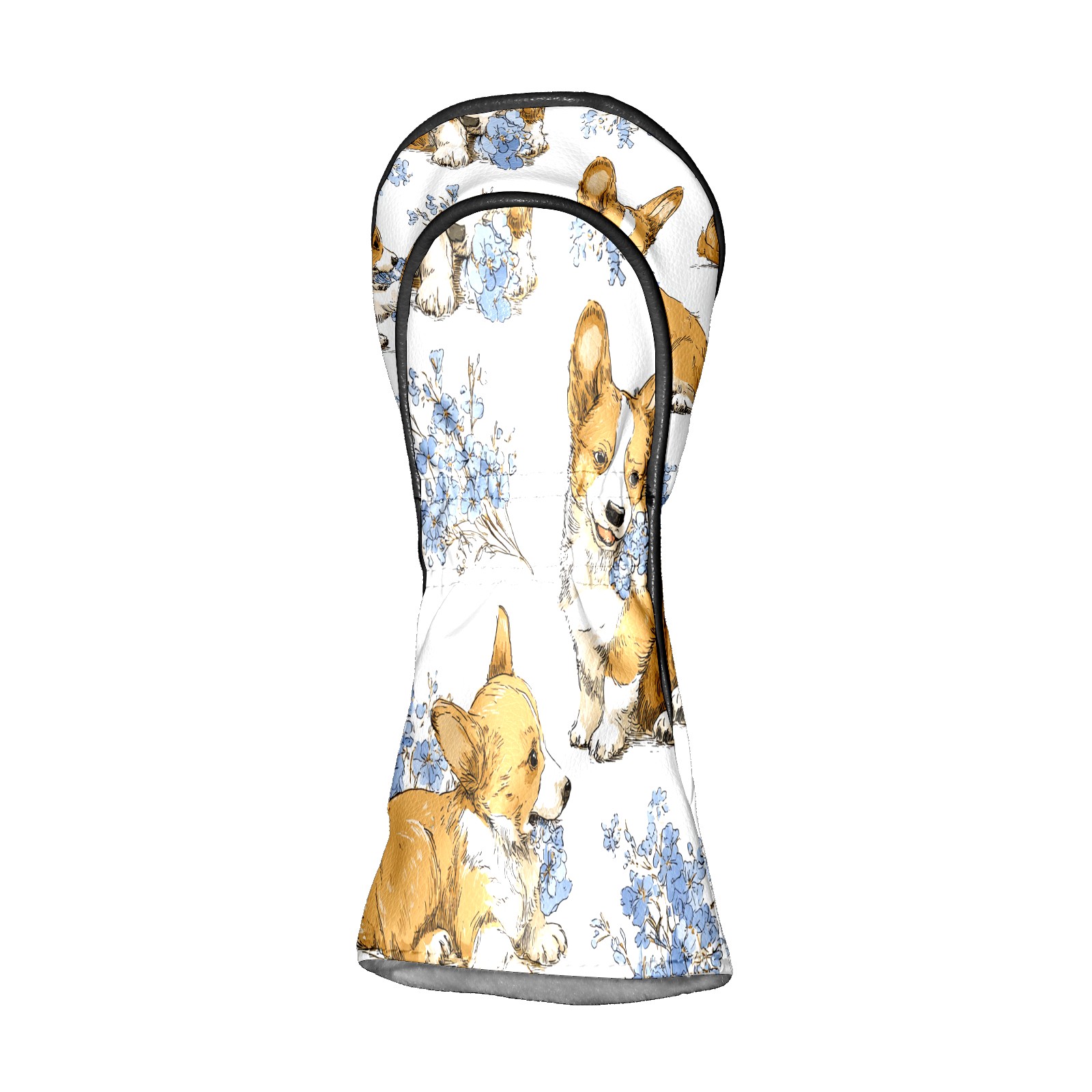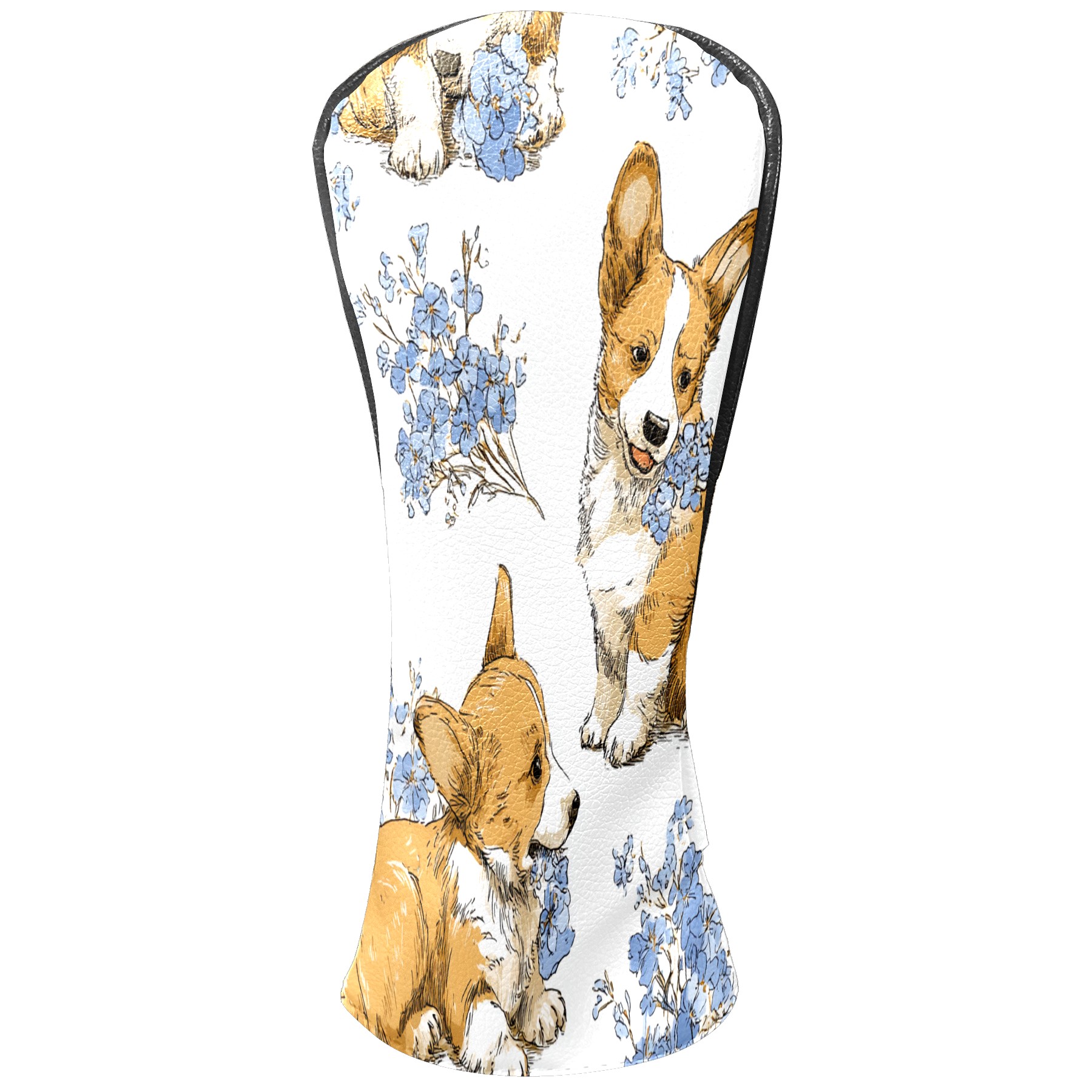 Golf Club Head Covers Brown Corgis Design for Driver & Hybrid, Waterproof PU Leather with Plush Velvet Lining, Scratch Protection & Secure Fit, Ideal Golf Gift for Men Women