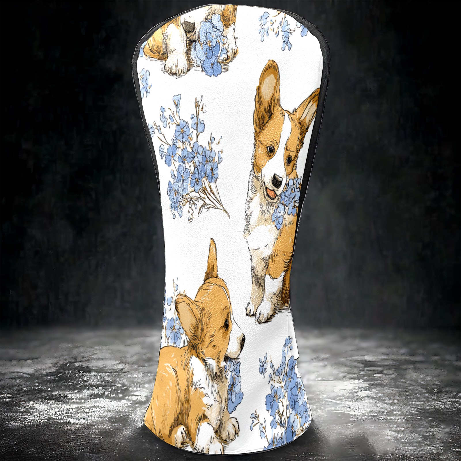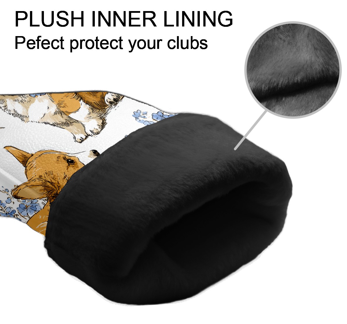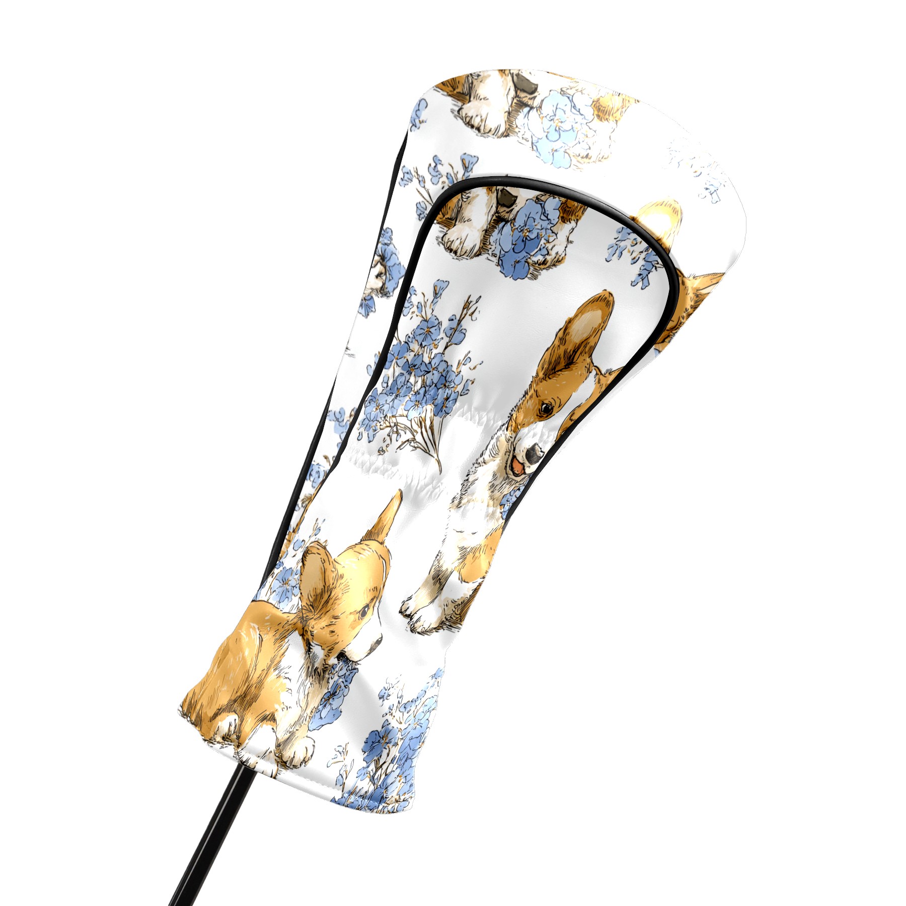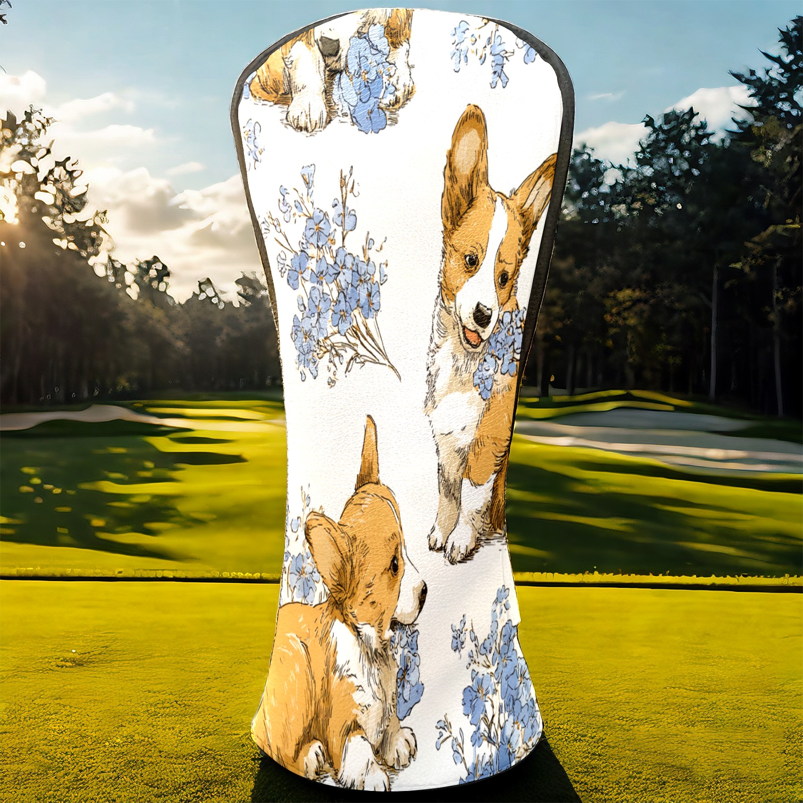 Golf Club Head Covers Brown Corgis Design for Driver & Hybrid, Waterproof PU Leather with Plush Velvet Lining, Scratch Protection & Secure Fit, Ideal Golf Gift for Men Women
