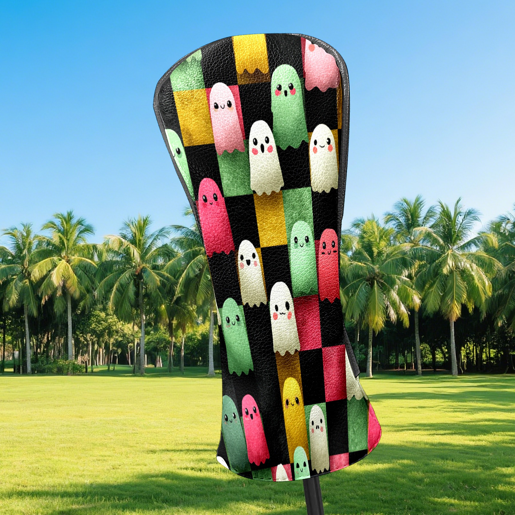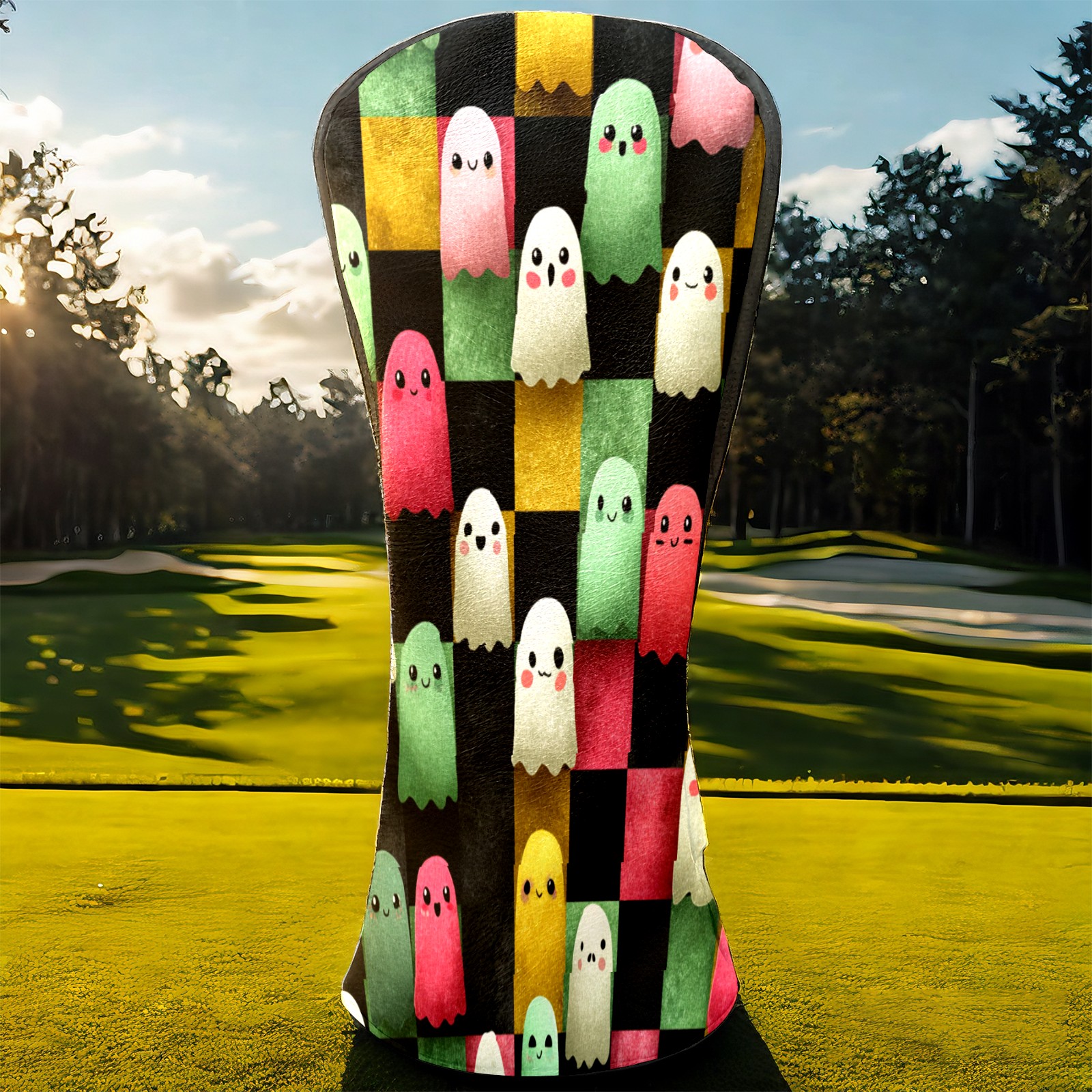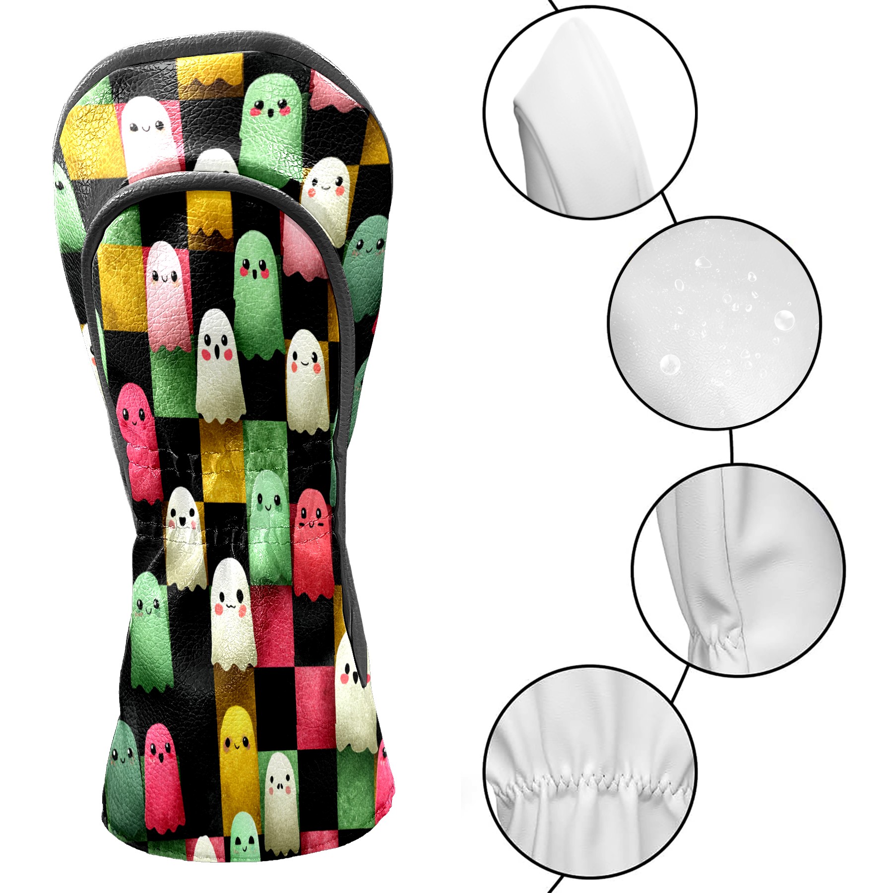 Golf Club Head Covers Whimsical Halloween Ghos Design for Driver & Hybrid, Waterproof PU Leather with Plush Velvet Lining, Scratch Protection & Secure Fit, Ideal Golf Gift for Men Women