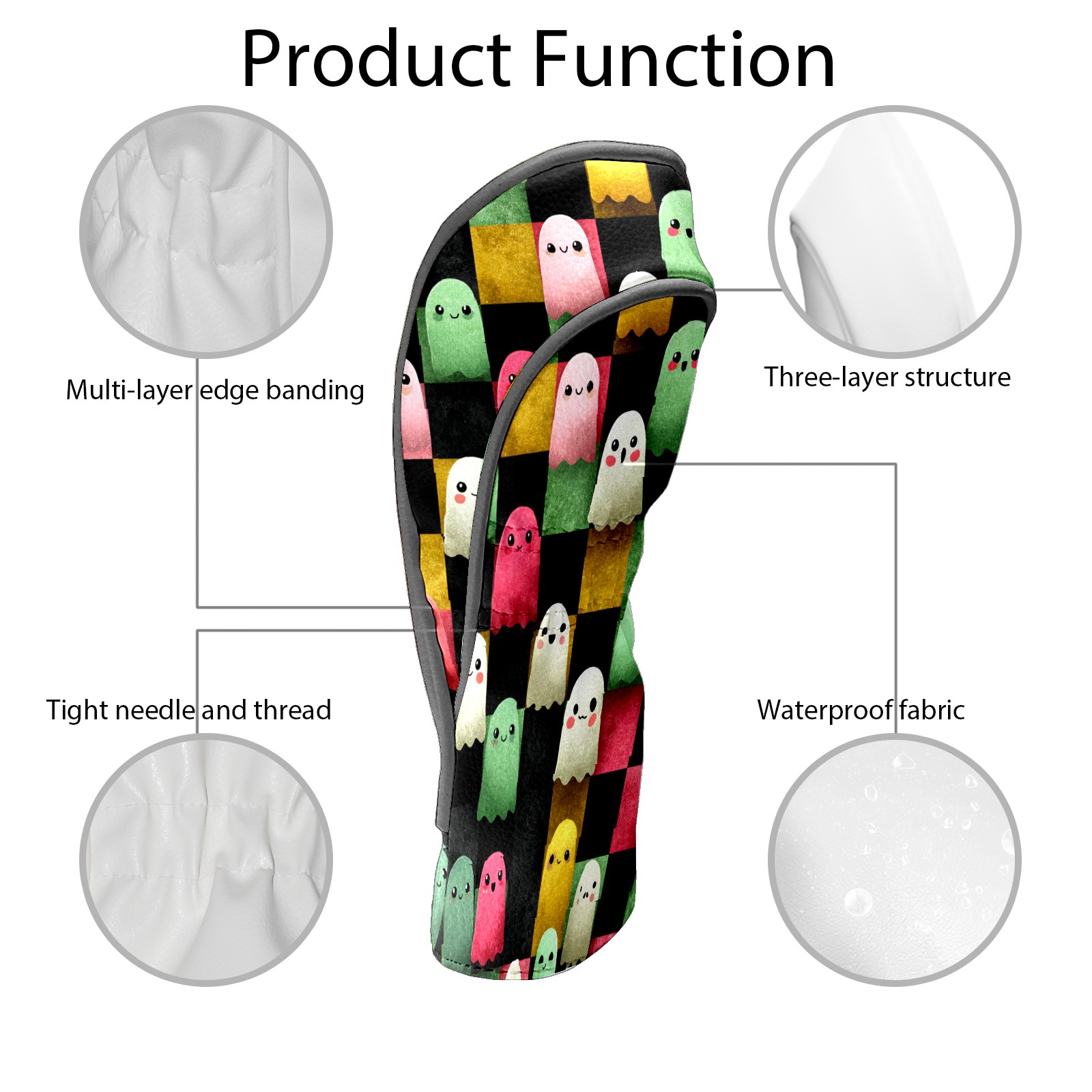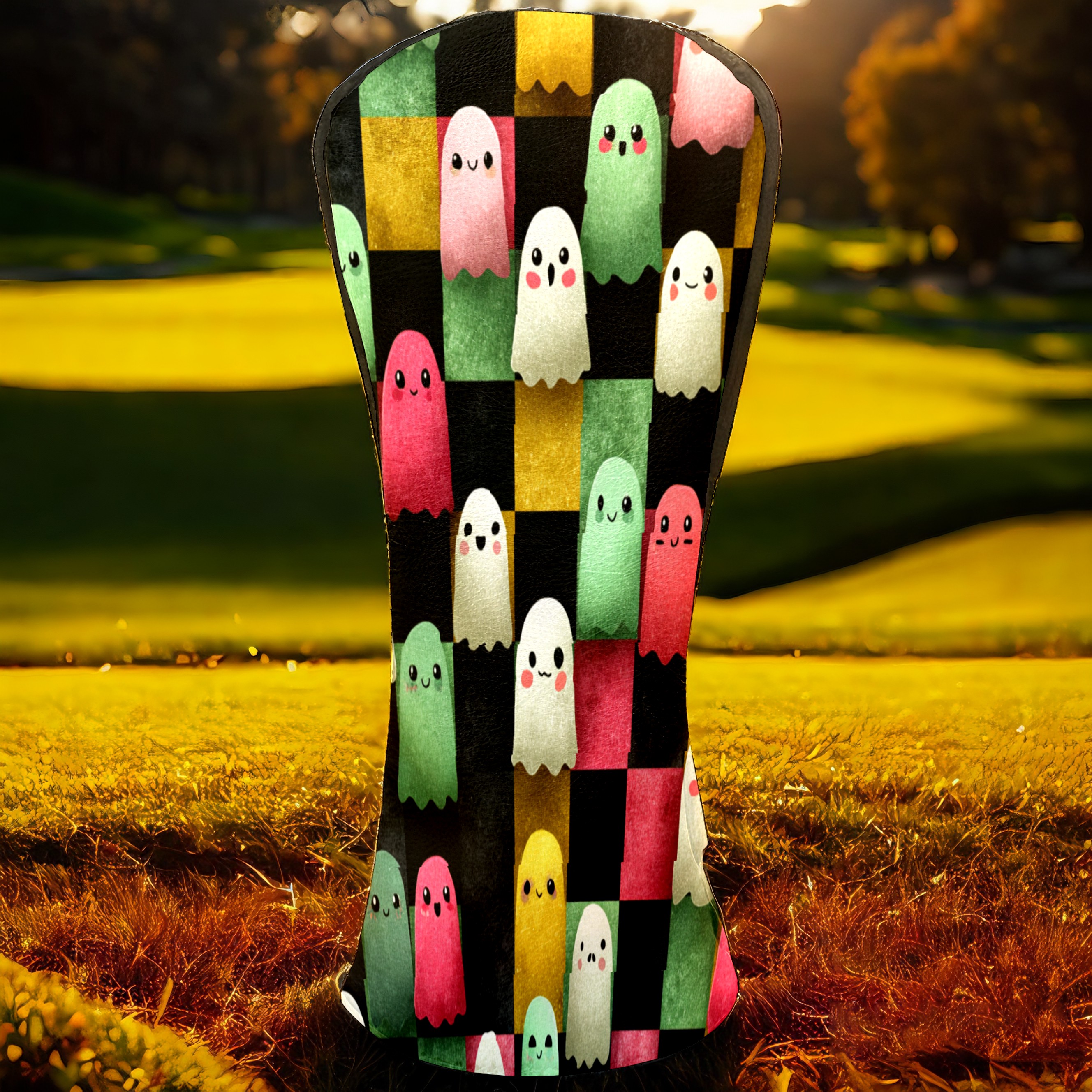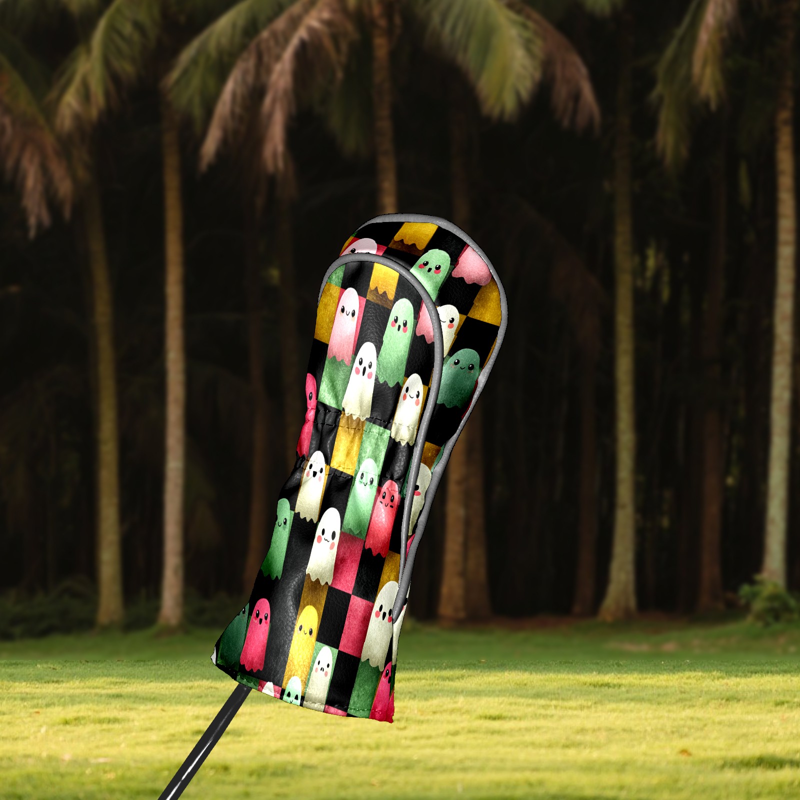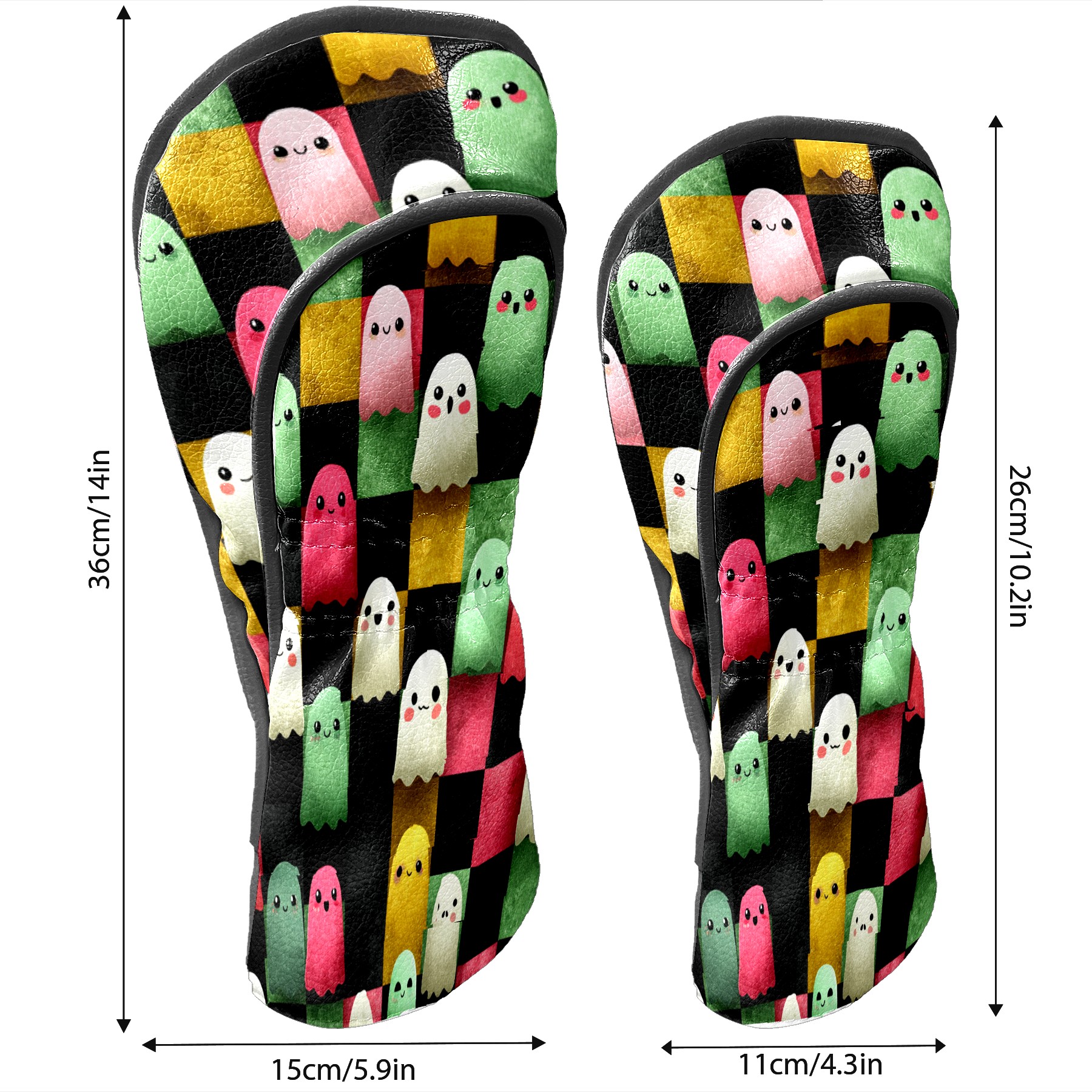 Golf Club Head Covers Whimsical Halloween Ghos Design for Driver & Hybrid, Waterproof PU Leather with Plush Velvet Lining, Scratch Protection & Secure Fit, Ideal Golf Gift for Men Women
